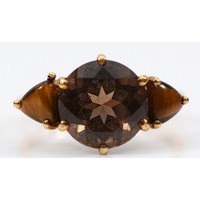 Size is an S, item is in good condition, no chips to any of the stone, all stones present. Only minor scuffs to the gold band.