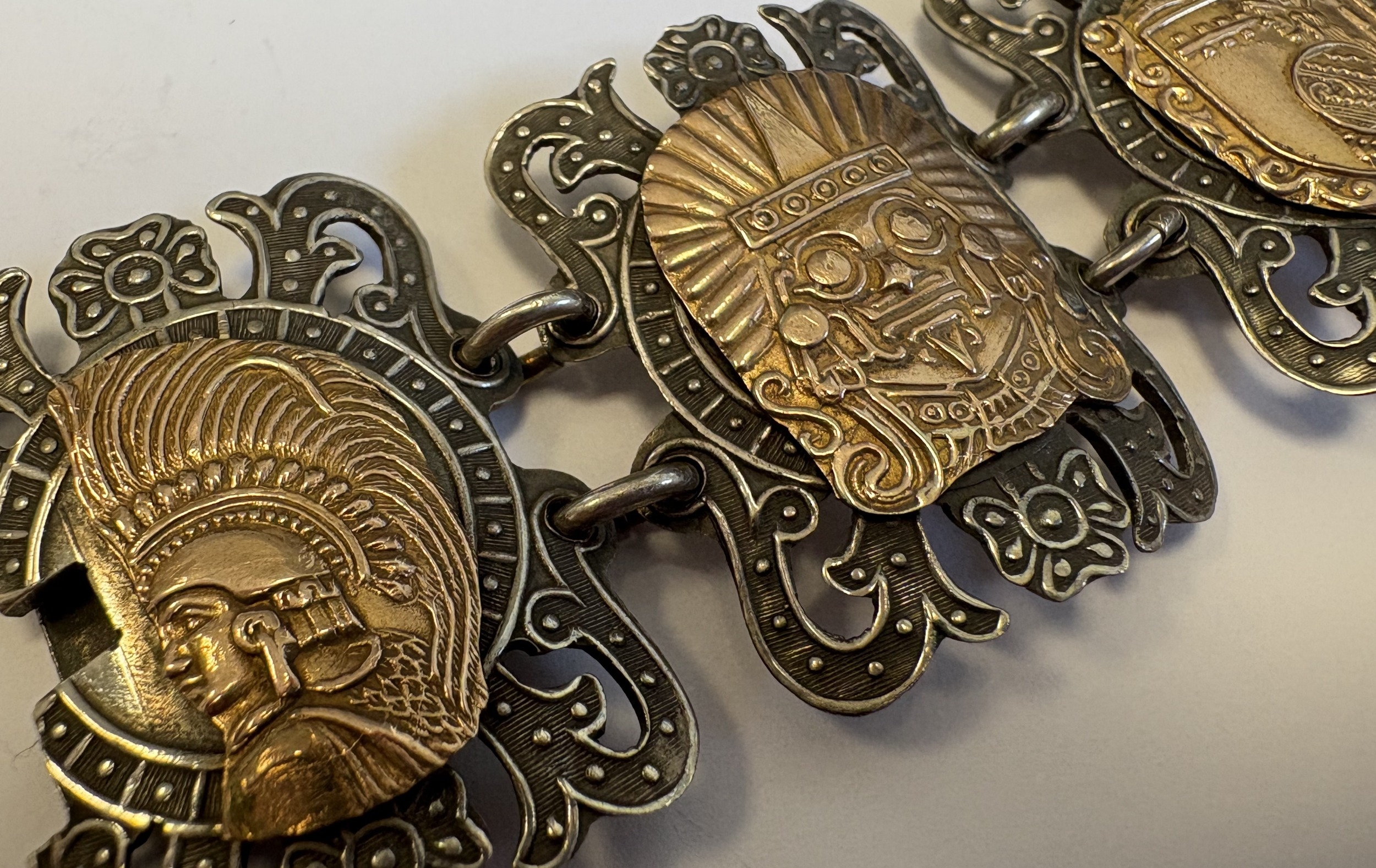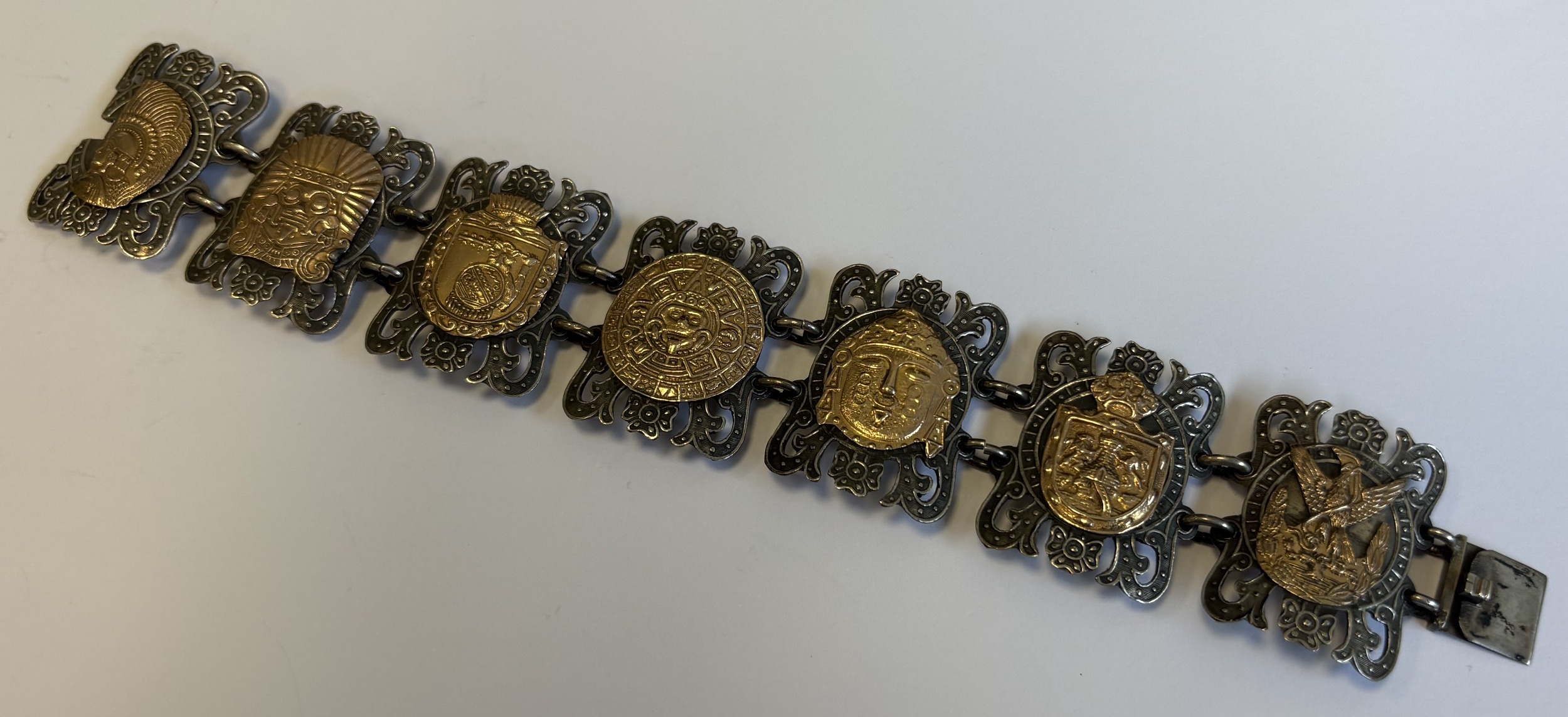 An unusual Continental silver bracelet with gold overlay. Approx. 49 grams. Est. £30 - £50.