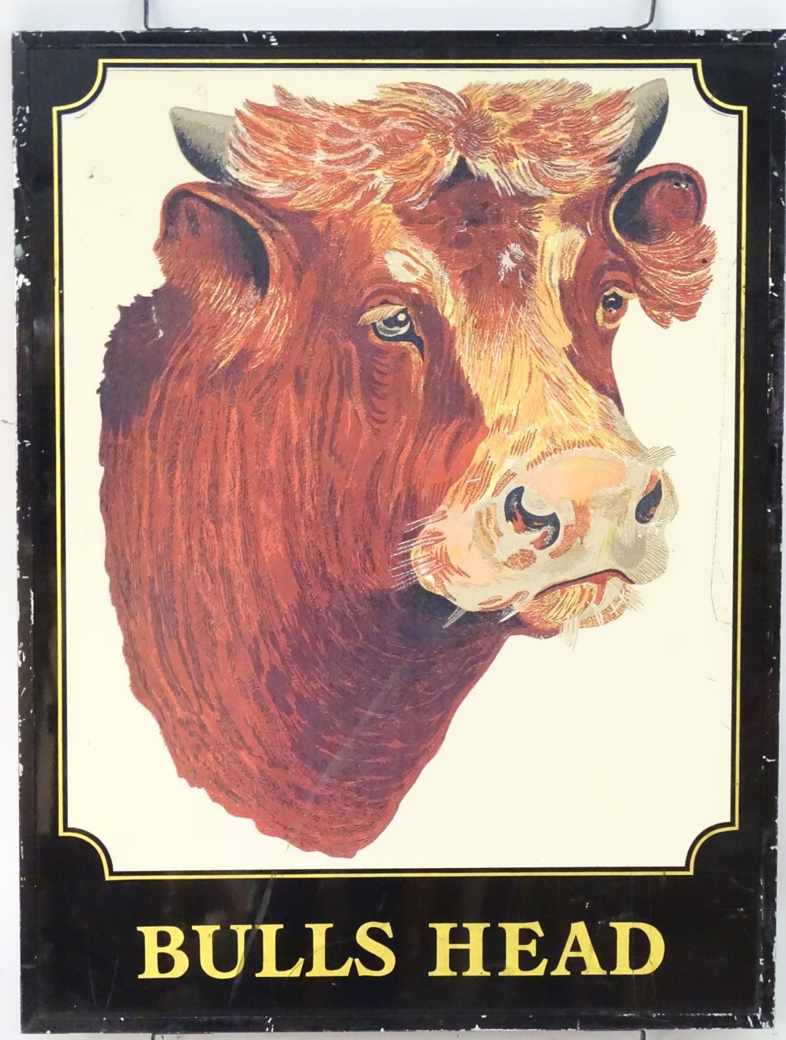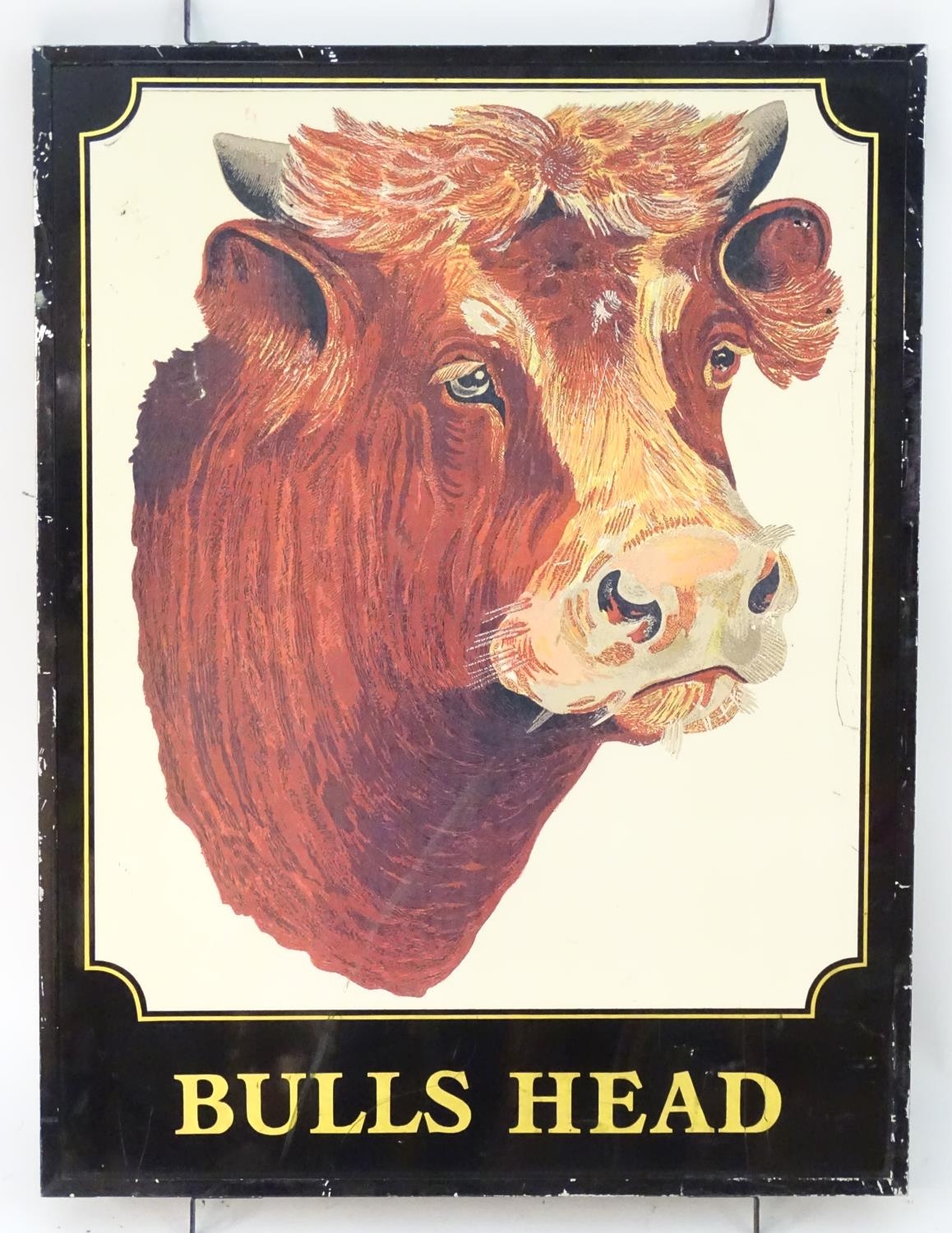 A 20thC pub sign, 'Bull's Head', with printed lettering and ...