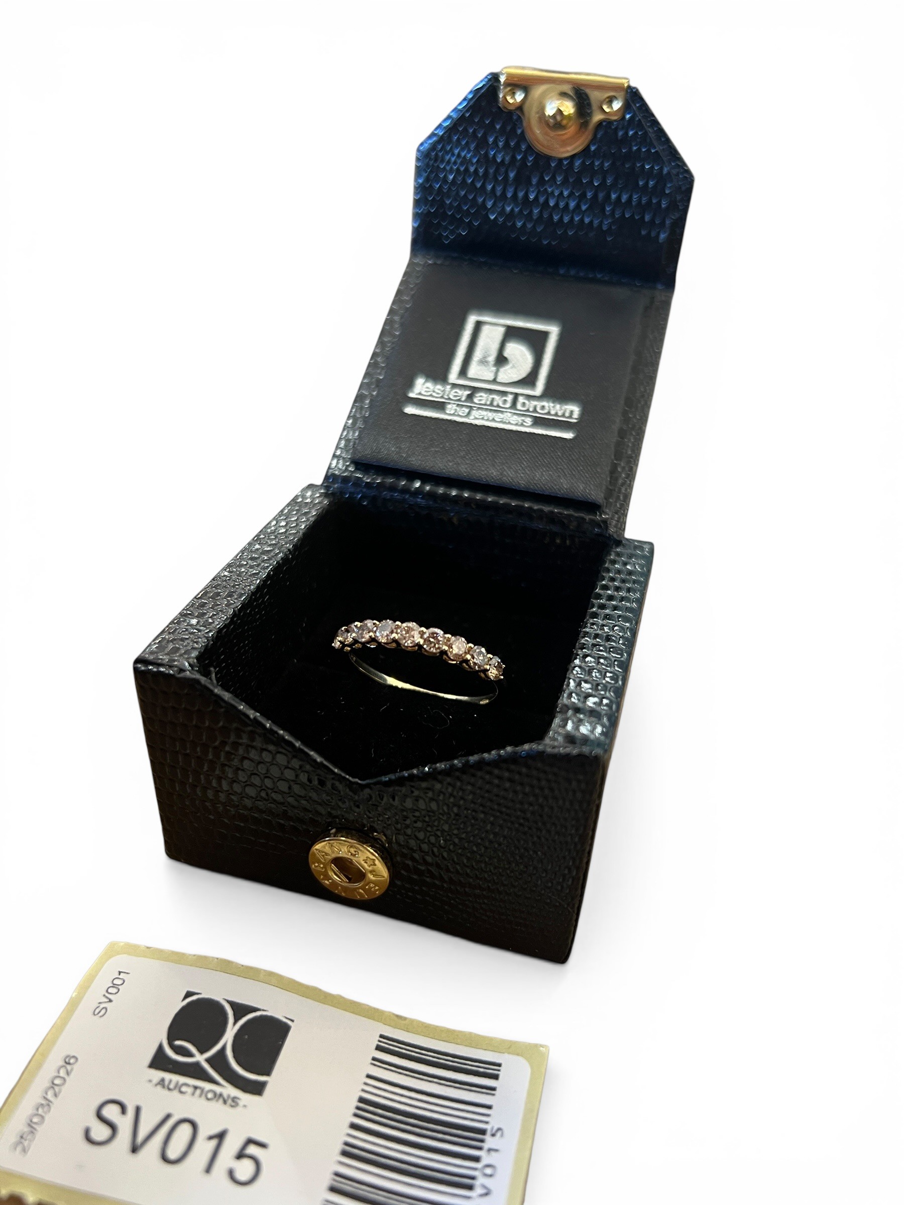 9ct Gold & 1ct Diamond Half Eternity Ring with Champagne Diamonds - Size S