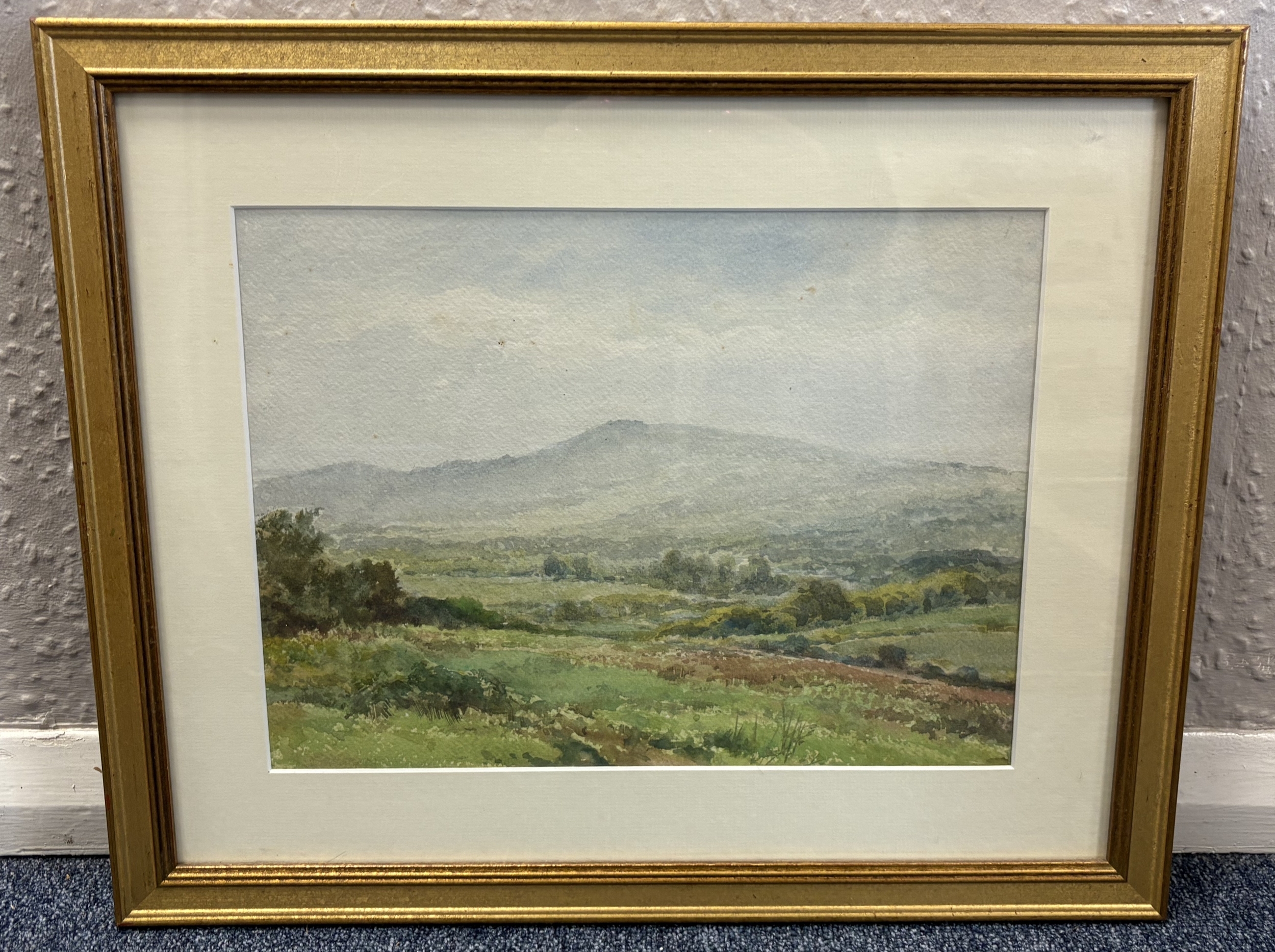 HENRY JOHN SYLVESTER STANNARD: (British, 1870 - 1951): A gilt framed and glazed watercolour depicting a typical Dartmoor scene. Apparently unsigned. Approx. 35.5 cm x 26.5 cm (ss). Est. £60 - £80.