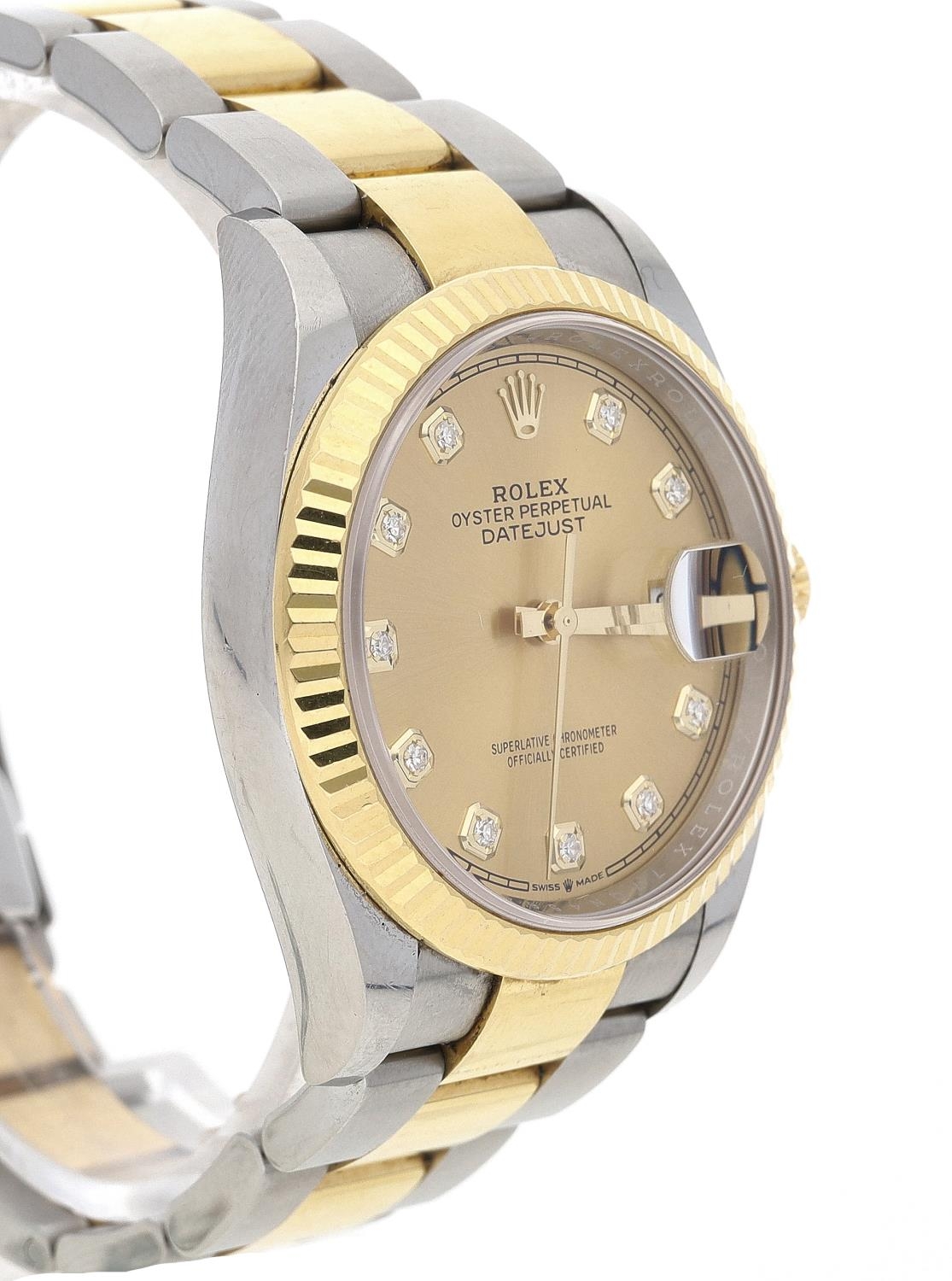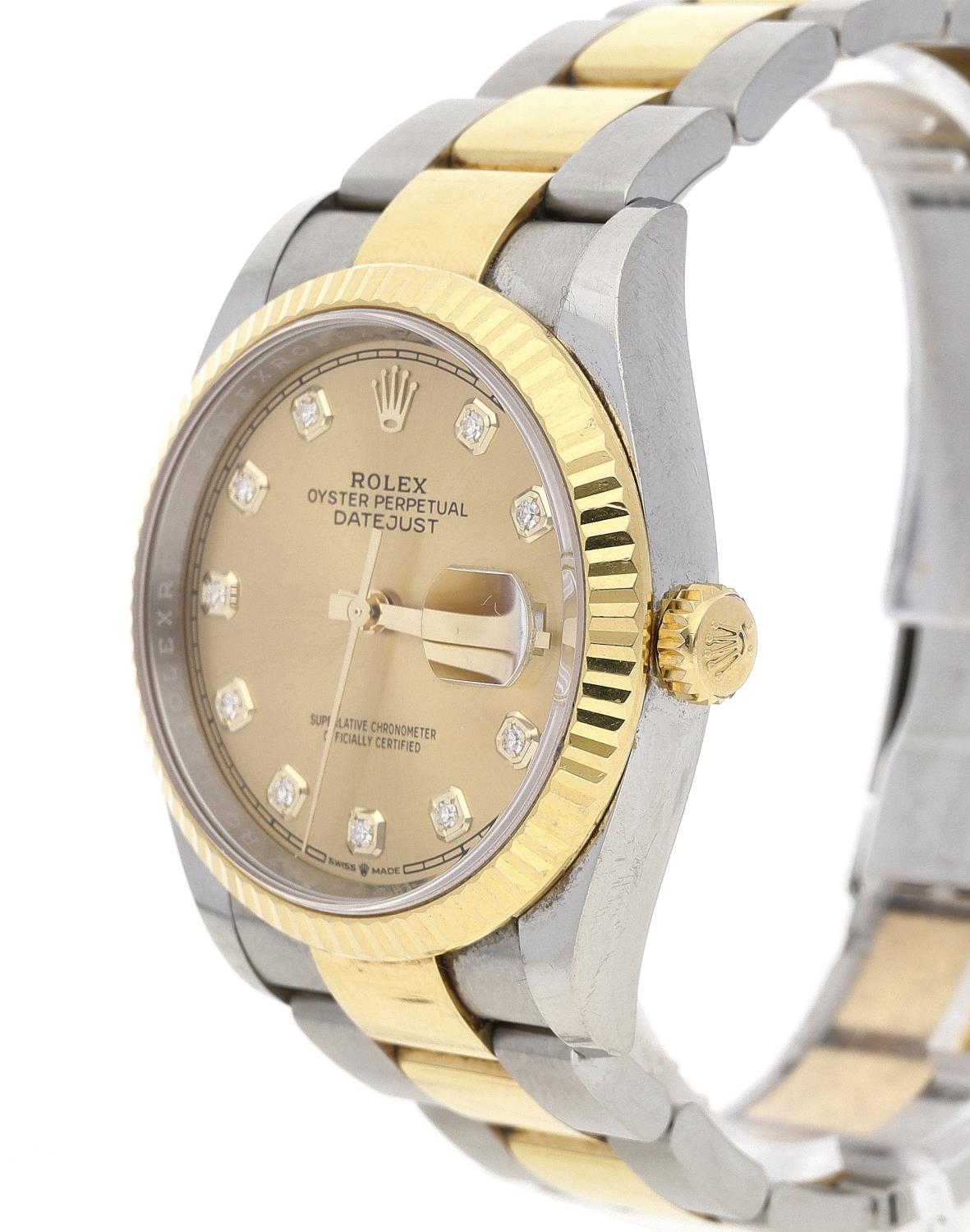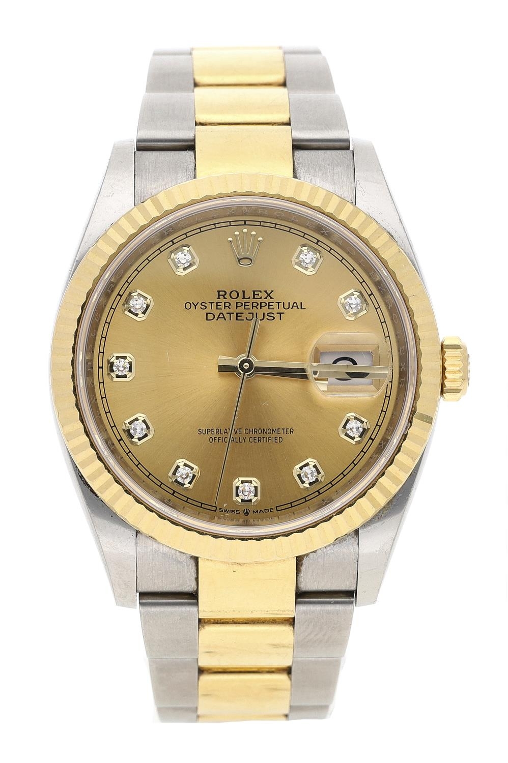 Rolex Oyster Perpetual Datejust 36 stainless steel and gold gentleman's wristwatch, reference no. 126233, serial no. 77QN4xxx, circa 2011-2026, champagne dial with diamond markers, fluted bezel, Oyster bracelet, 36mm (ref: 314)