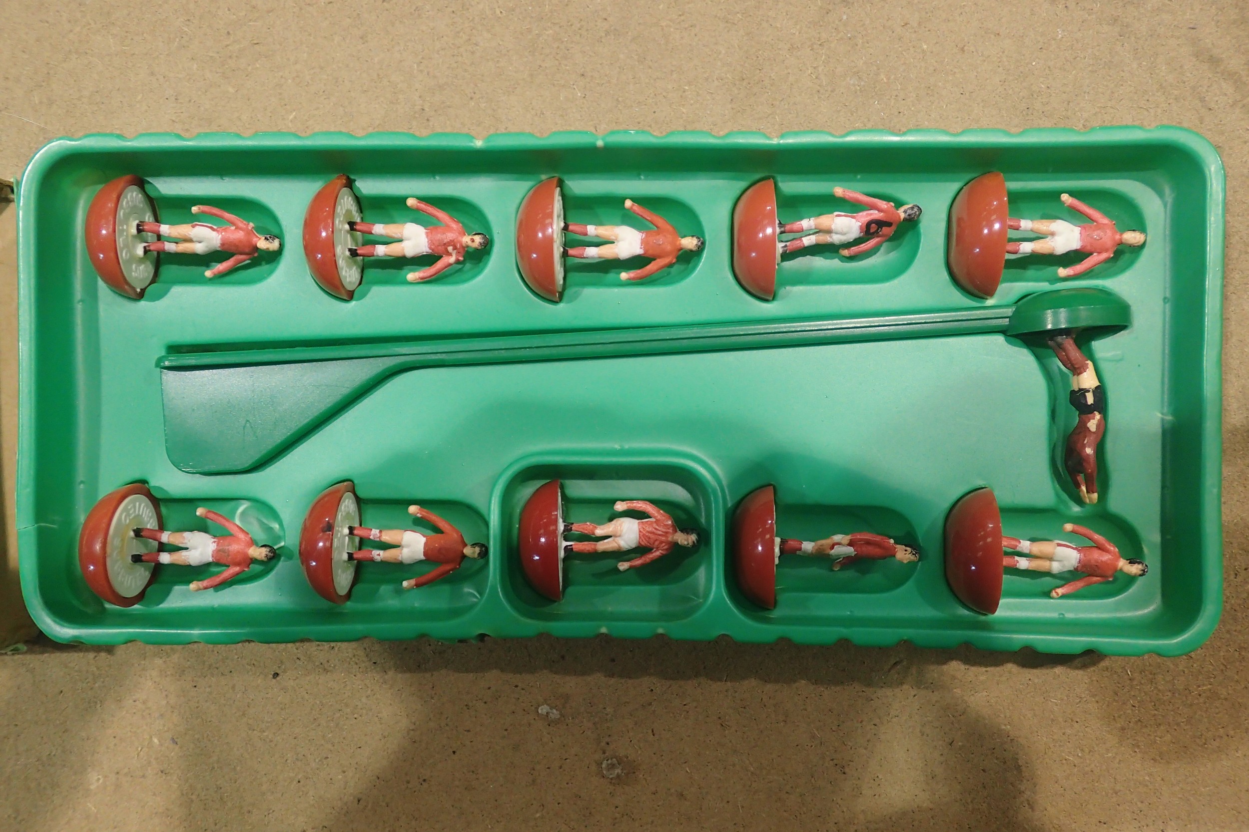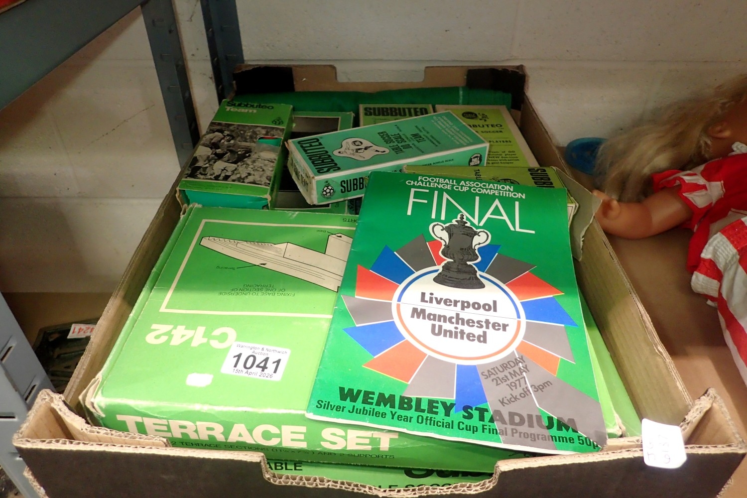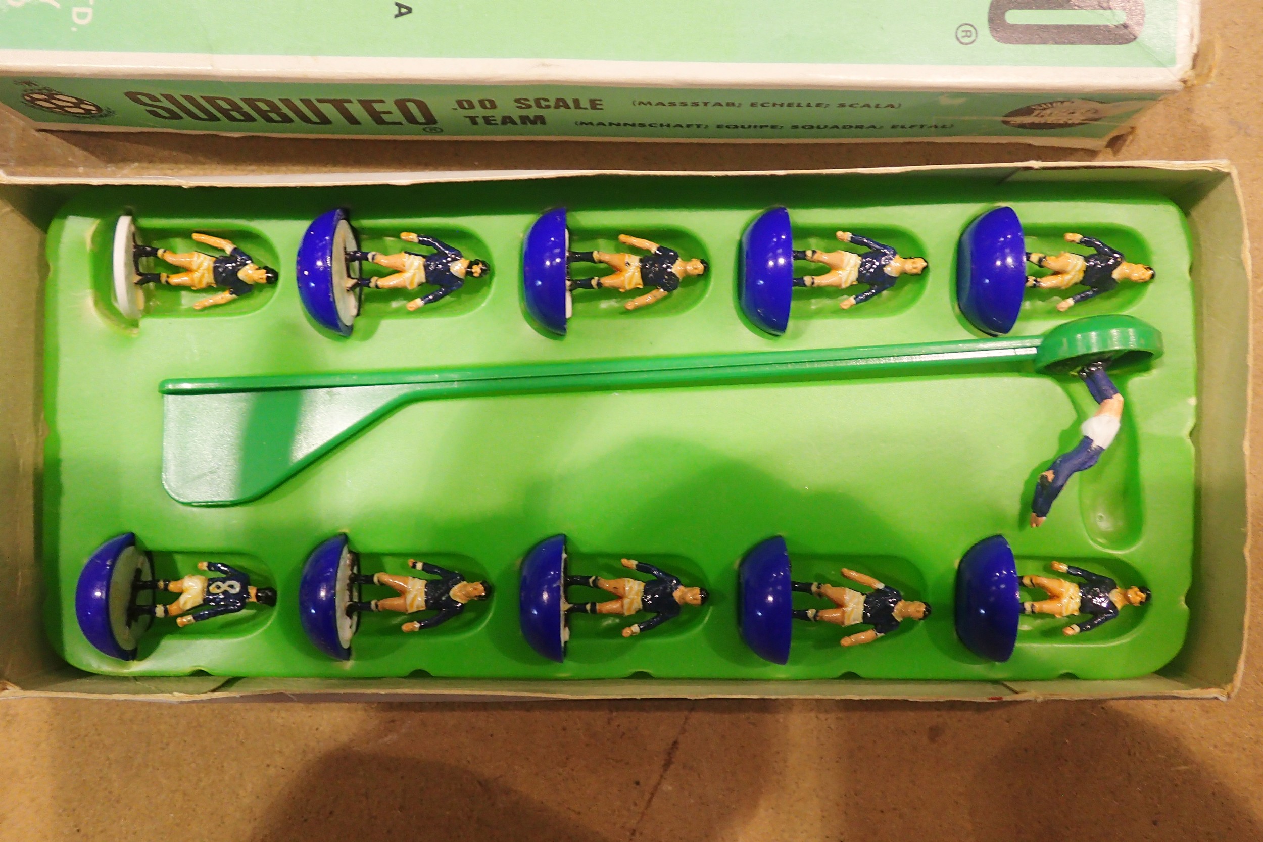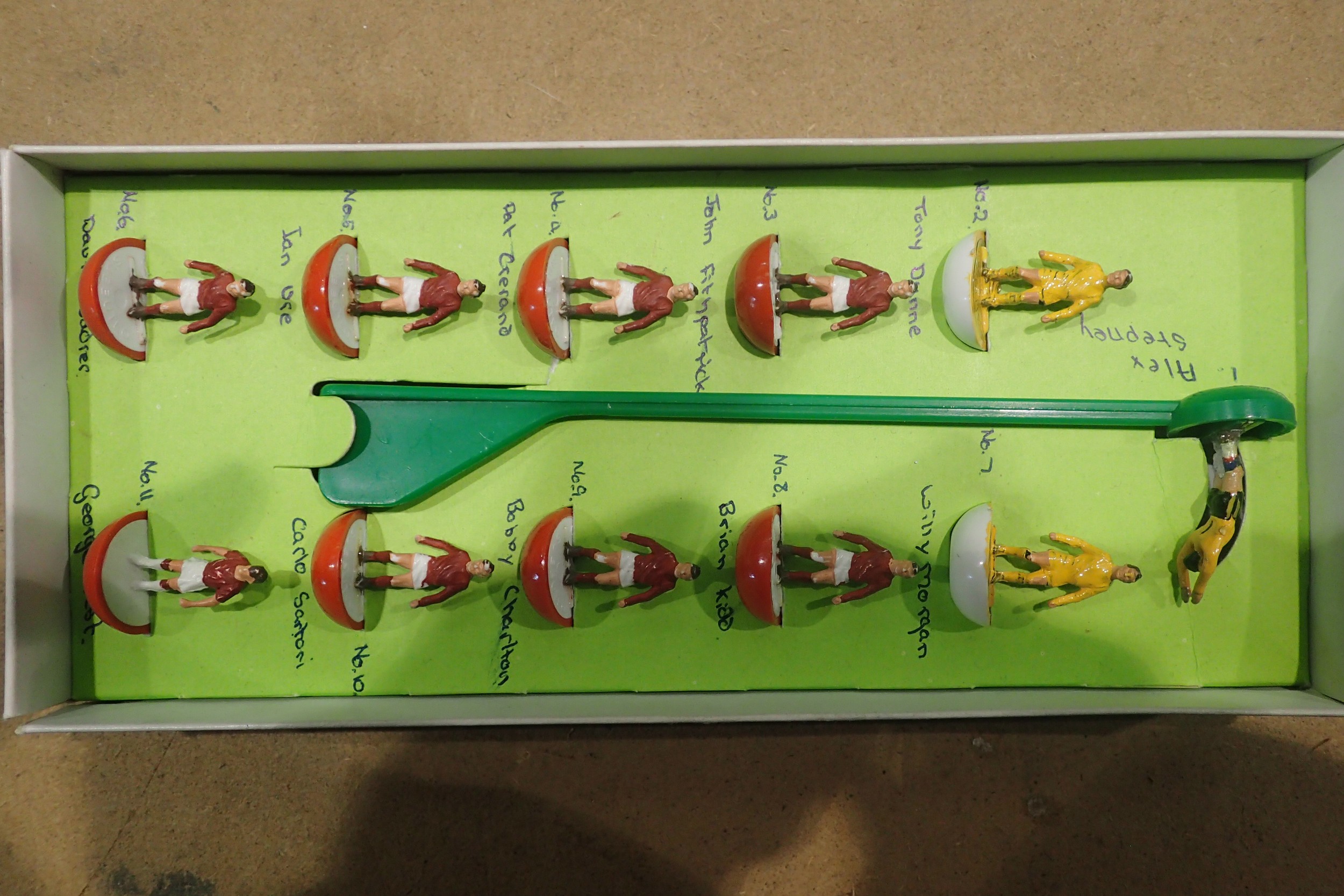 Subbuteo table soccer collection includes club edition, six teams, grandstand and 1977 FA Cup program Manchester United VS Liverpool FC. Not available for in-house P&P