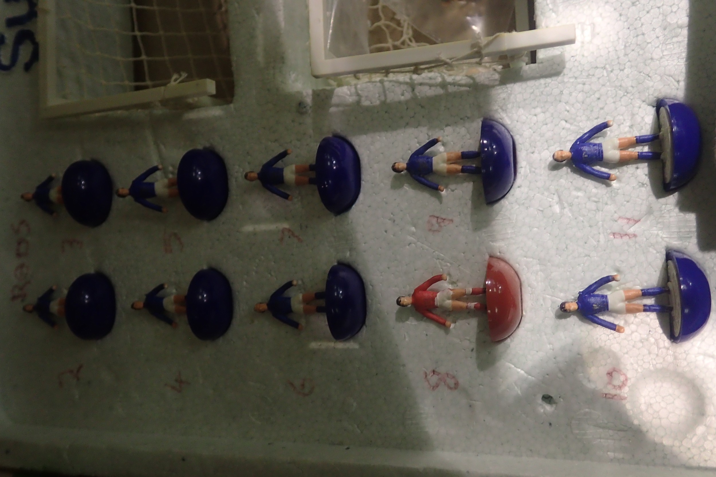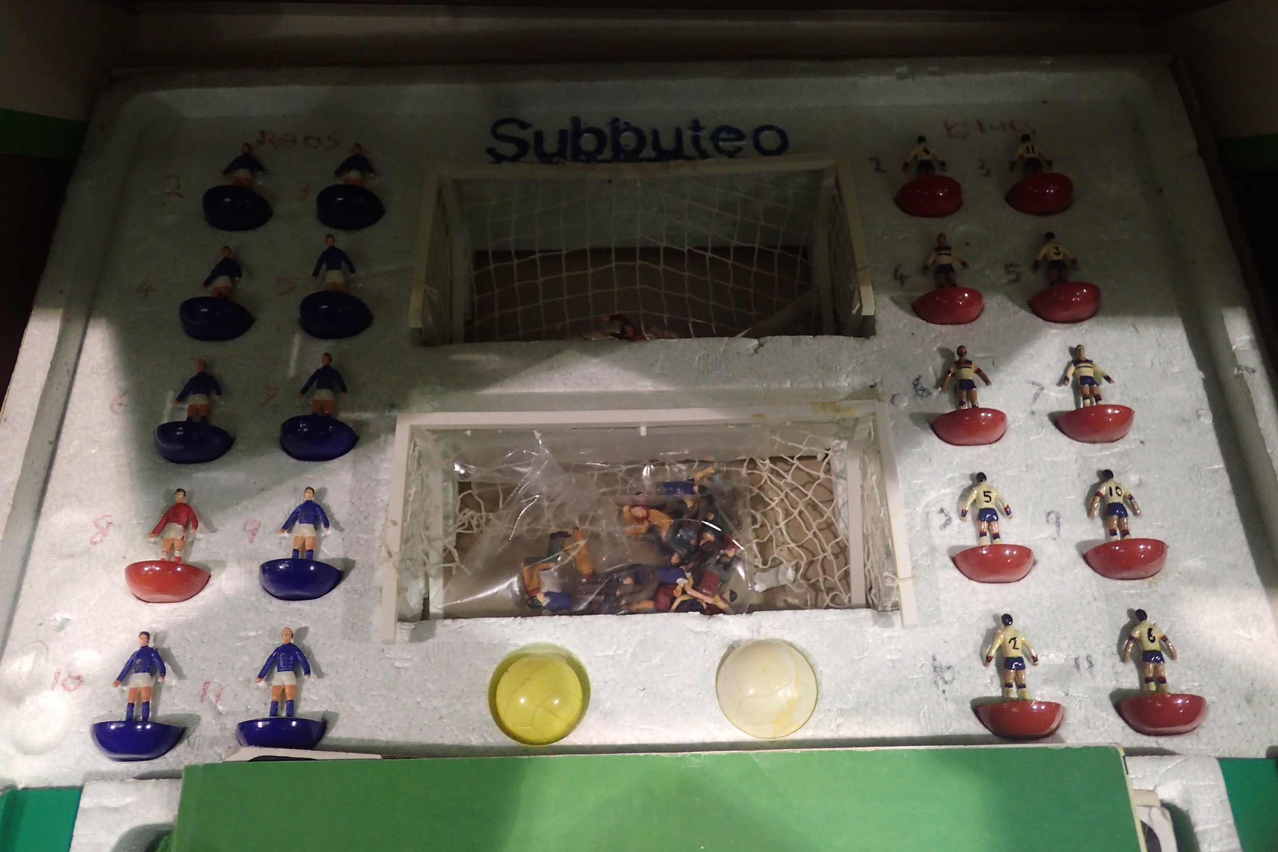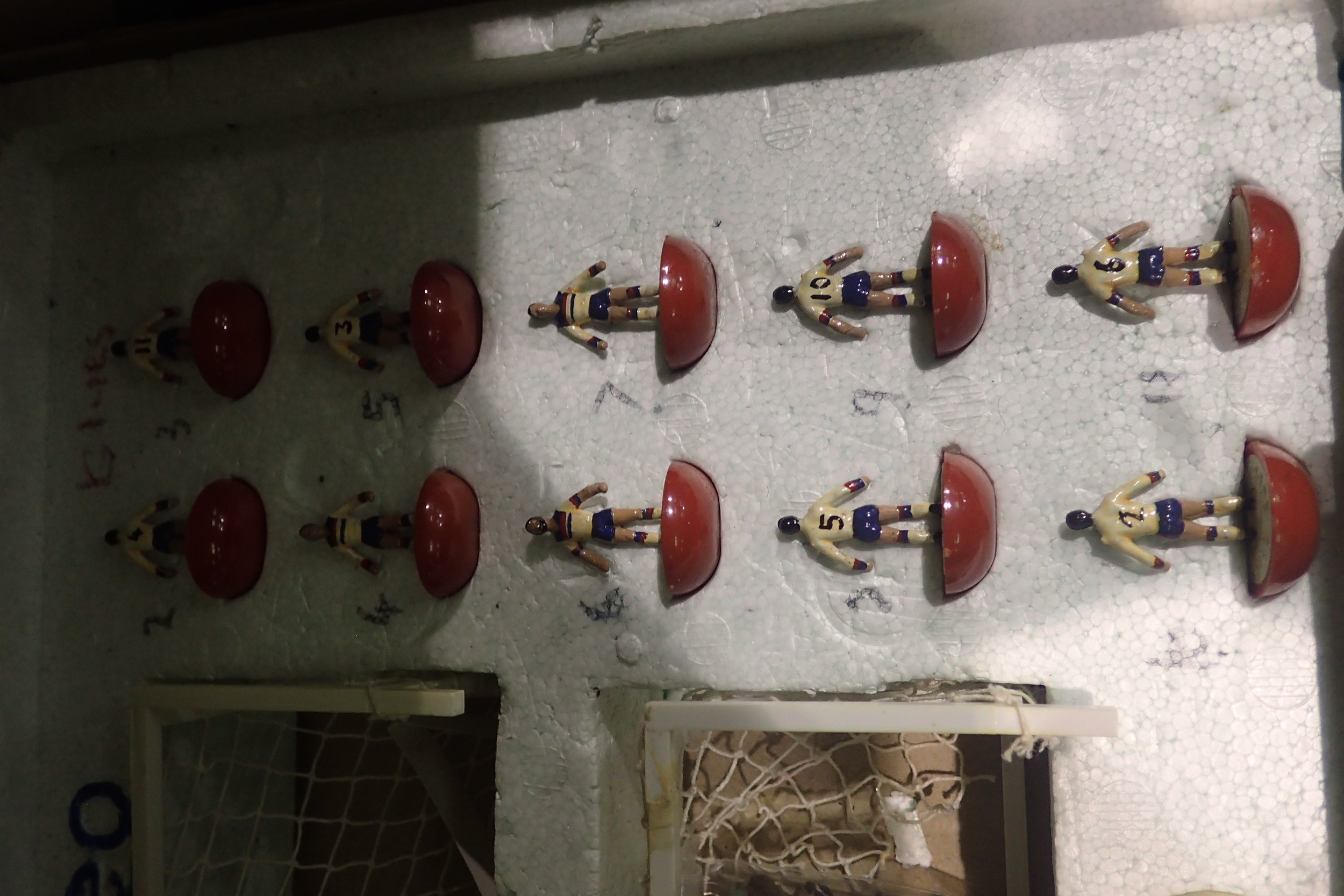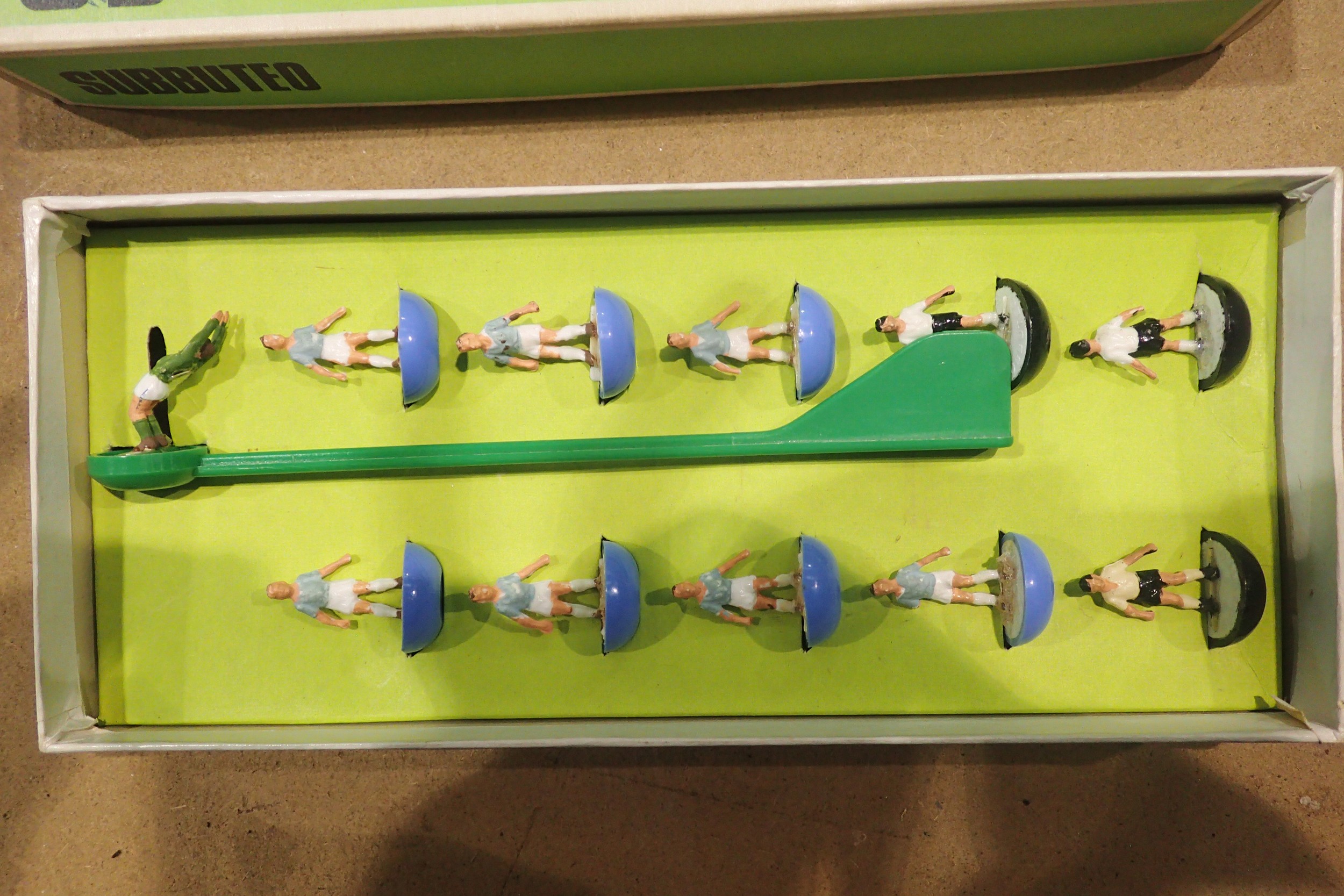 Subbuteo table soccer collection includes club edition, six teams, grandstand and 1977 FA Cup program Manchester United VS Liverpool FC. Not available for in-house P&P