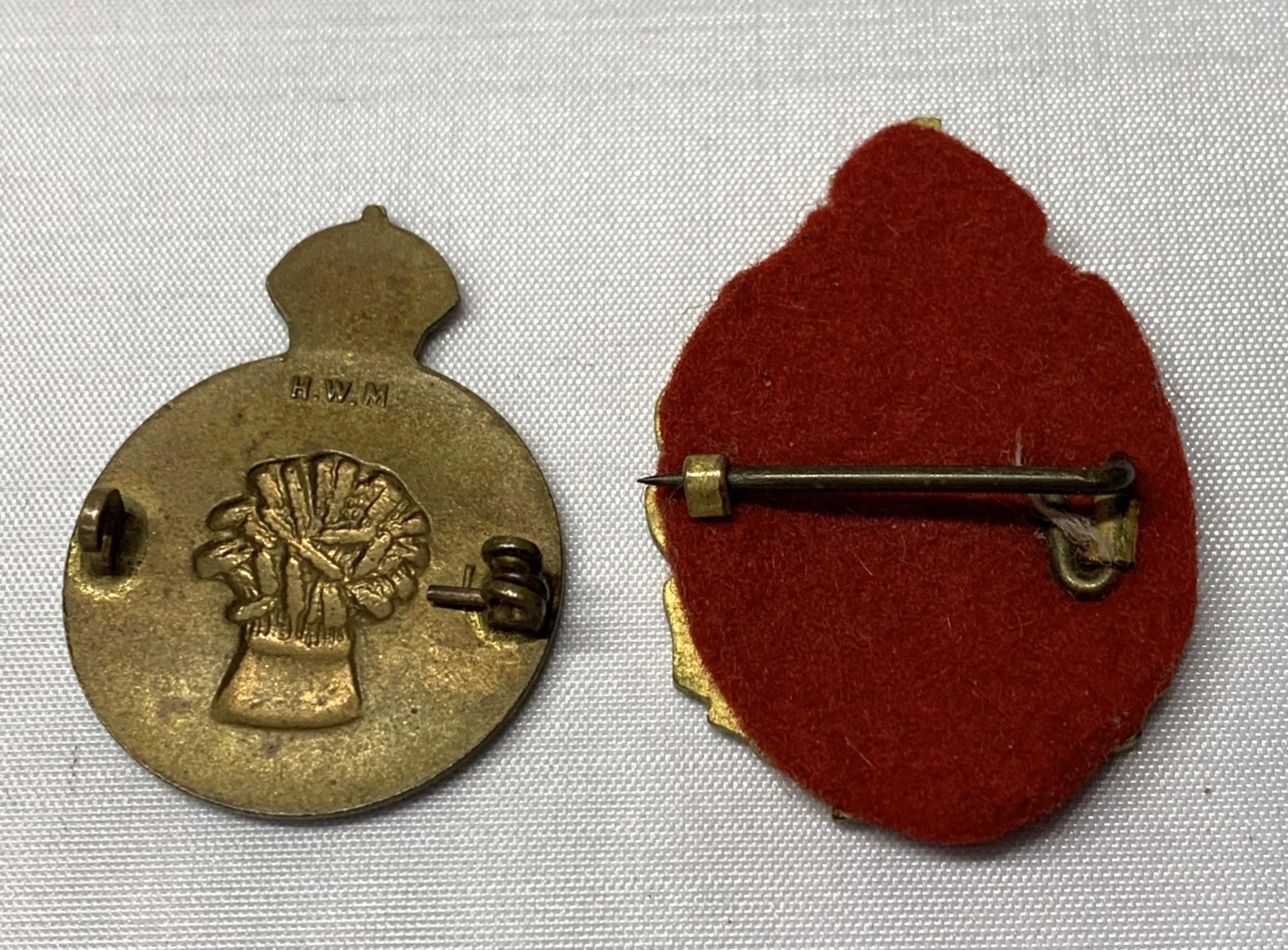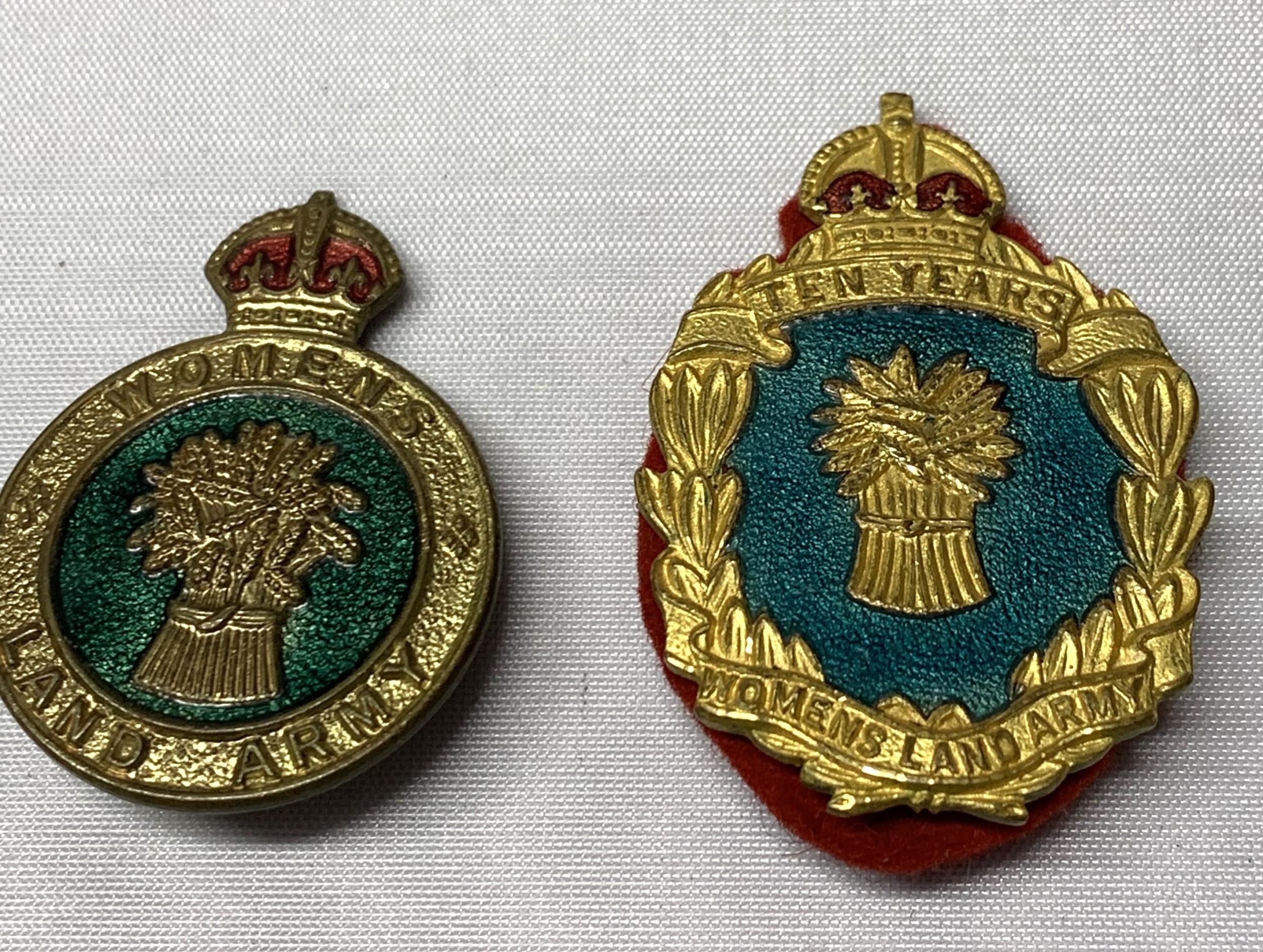 A pair of women's Land Army badges, Standard and 10 year service, 1939-1950