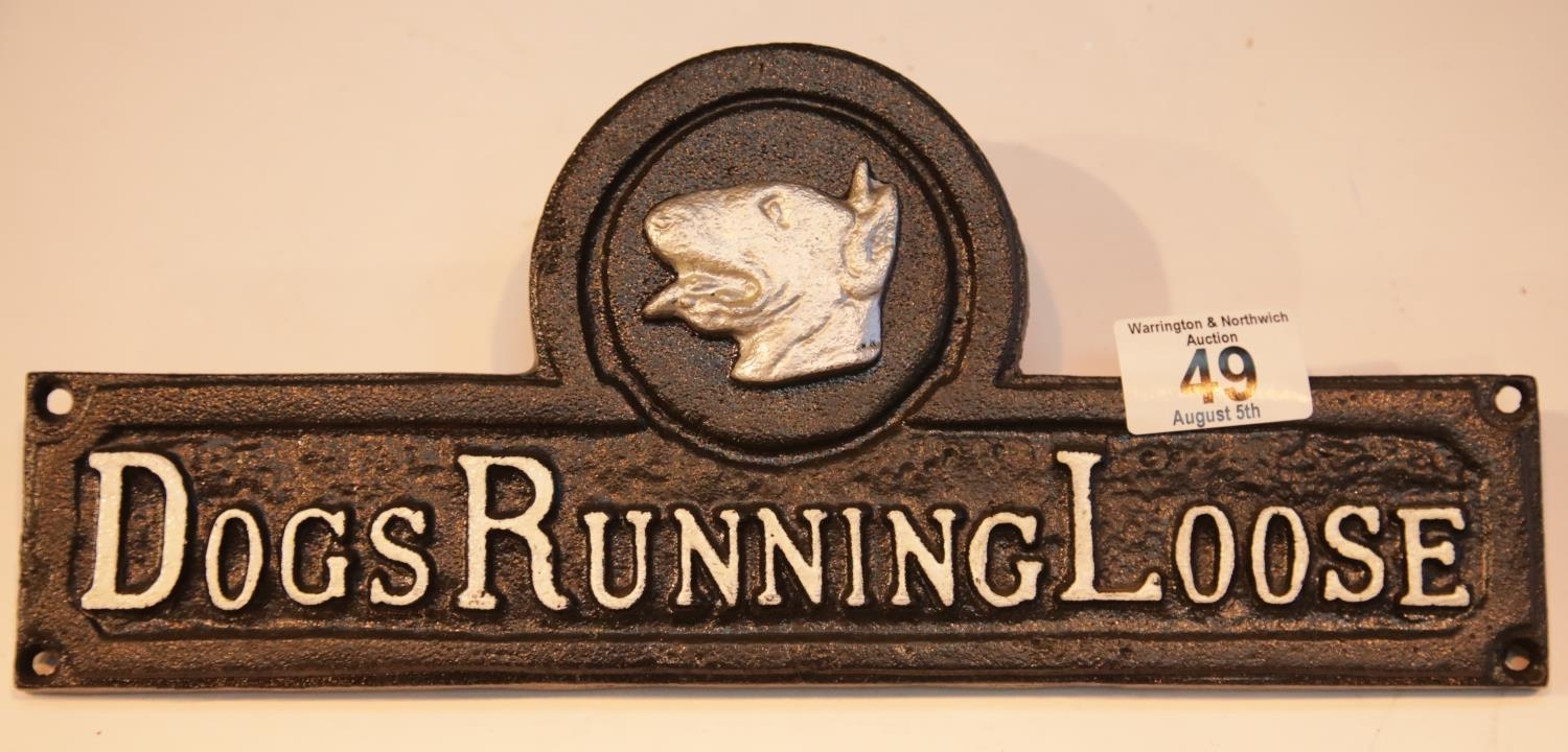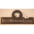 Cast iron Dogs Running Loose sign, 32 x 13 cm. P&P Group 2 (£18+VAT for the first lot and £2+VAT for subsequent lots)