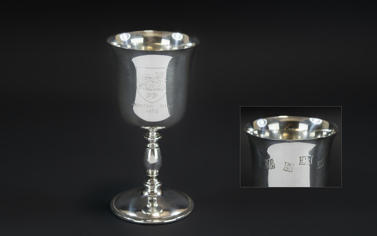 Preston Guild 1972 Sterling Silver Cup. Hallmark Birmingham 1971, Makers B.E.S & Co. Height 5 Inches - 12.5 cms. As New Condition. 140.4 grams.