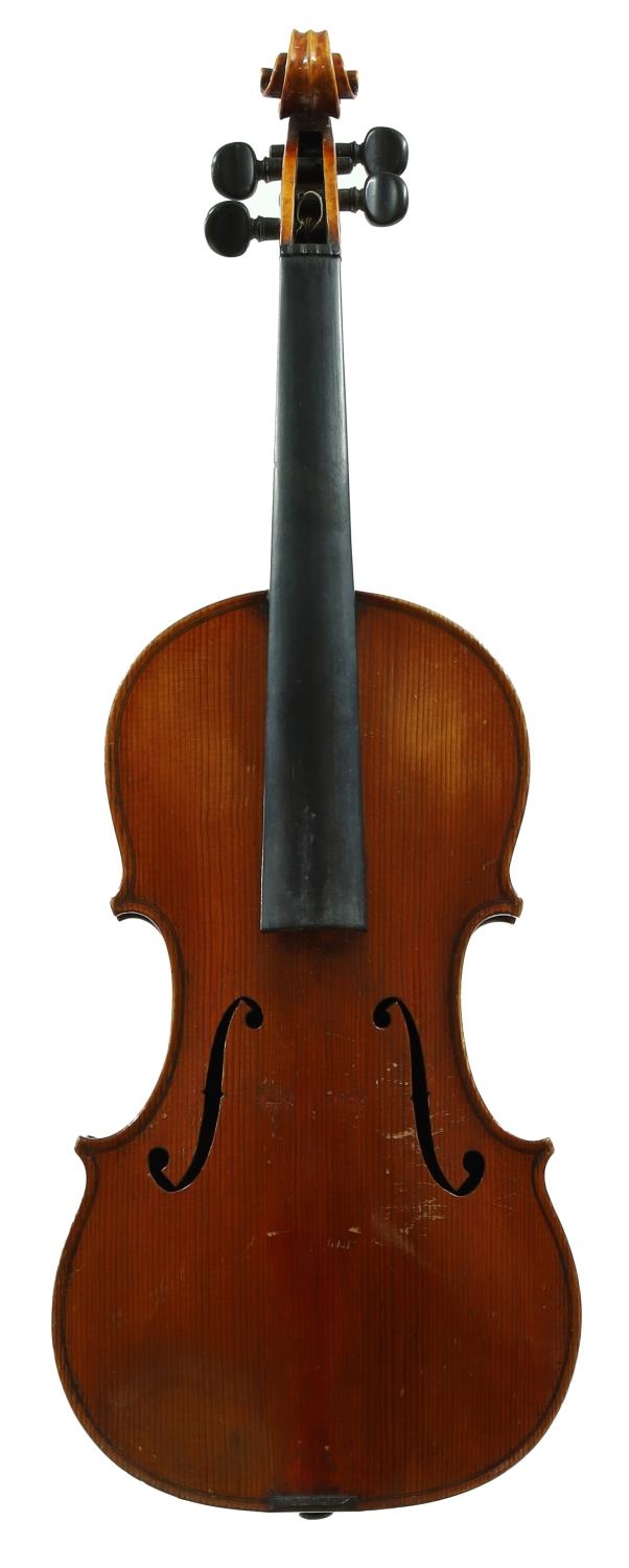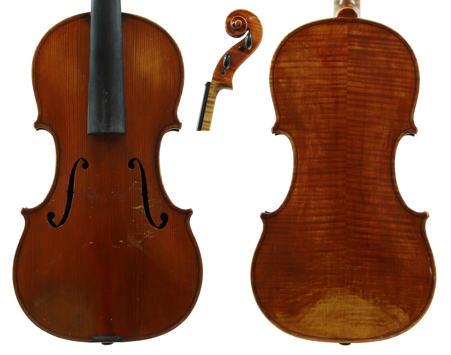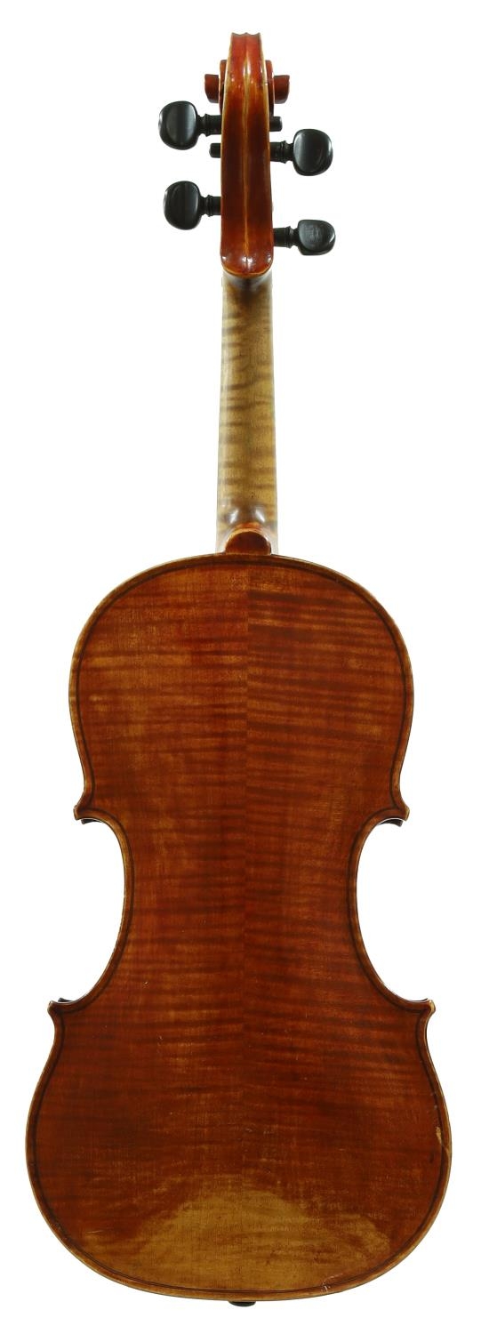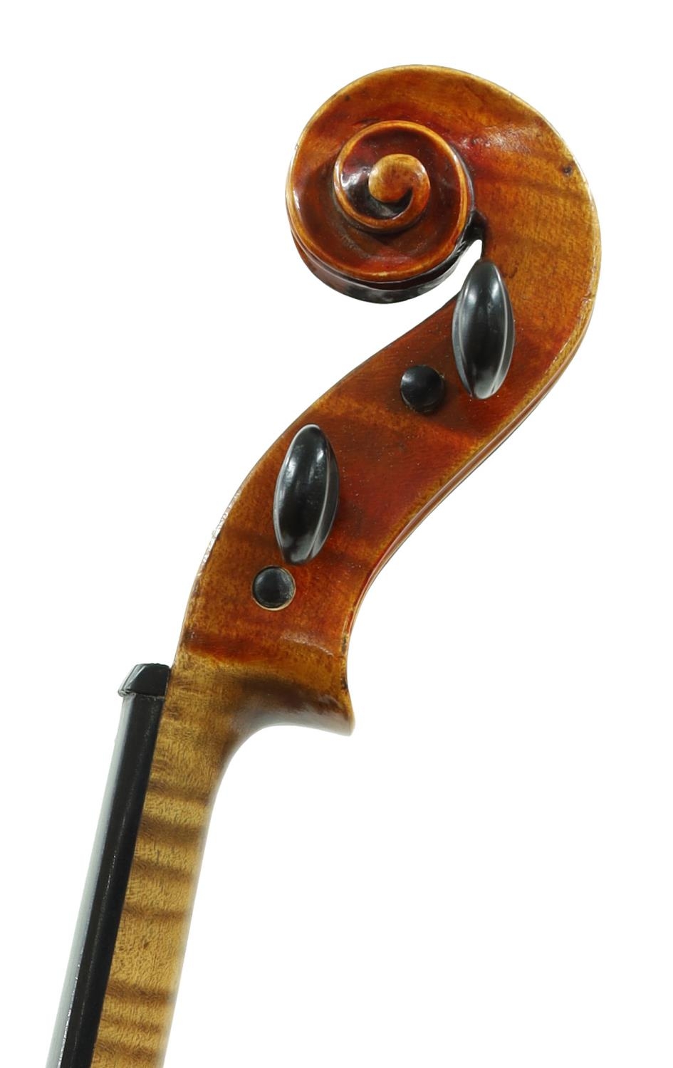 Mid 20th century Guarneri copy violin, unlabelled, the two piece back of faint medium curl with similar wood to the sides and head, the table of a broad width grain and the varnish of a reddish-brown colour on a golden ground, 14 1/16", 35.70cm