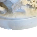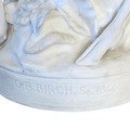 Seated on a rocky outcrop cradling a fawn, a second deer at her side, finely modeled with a matte marble like finish, marked to base ‘G.B. Birch, 1866’.