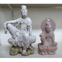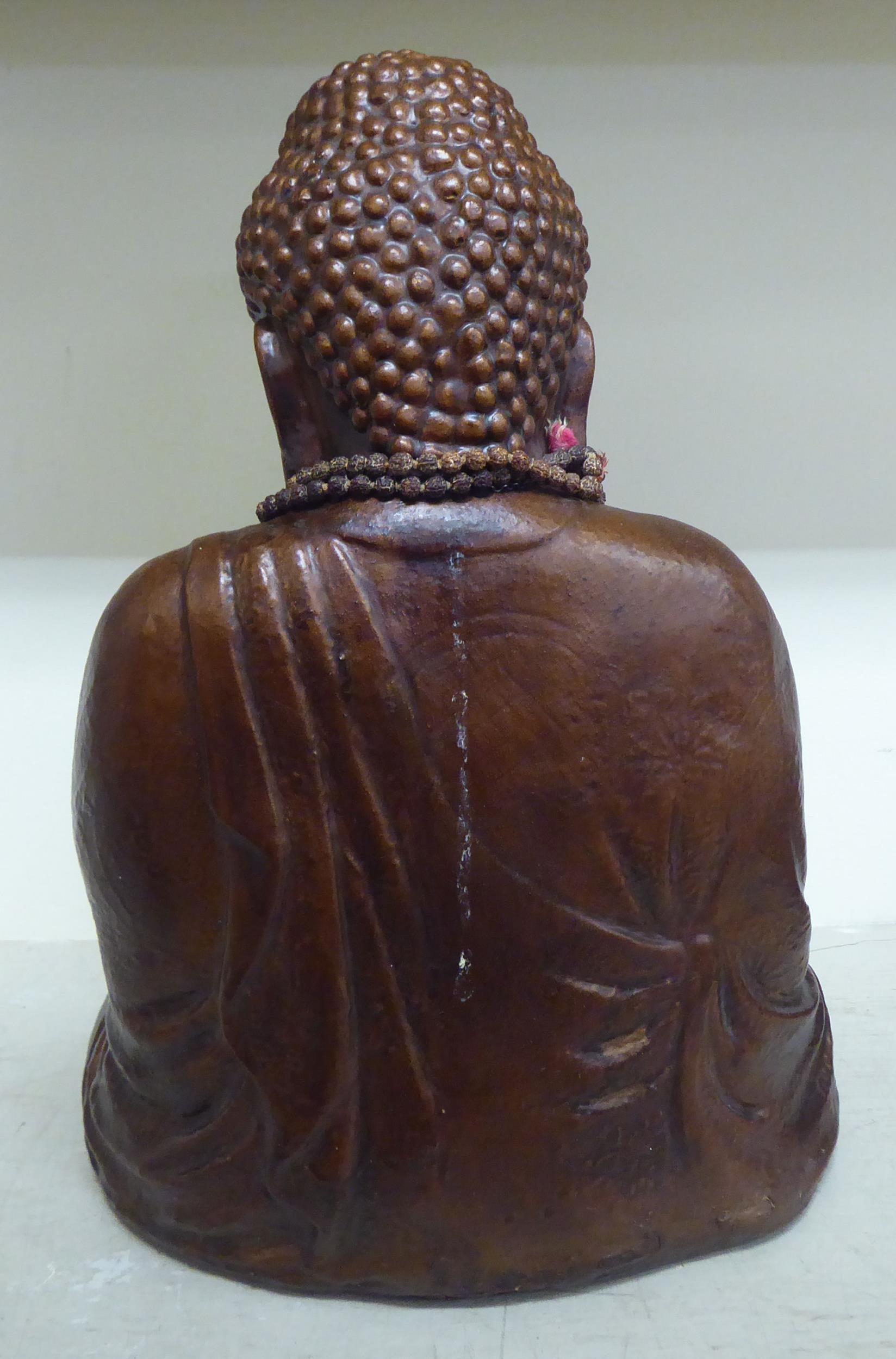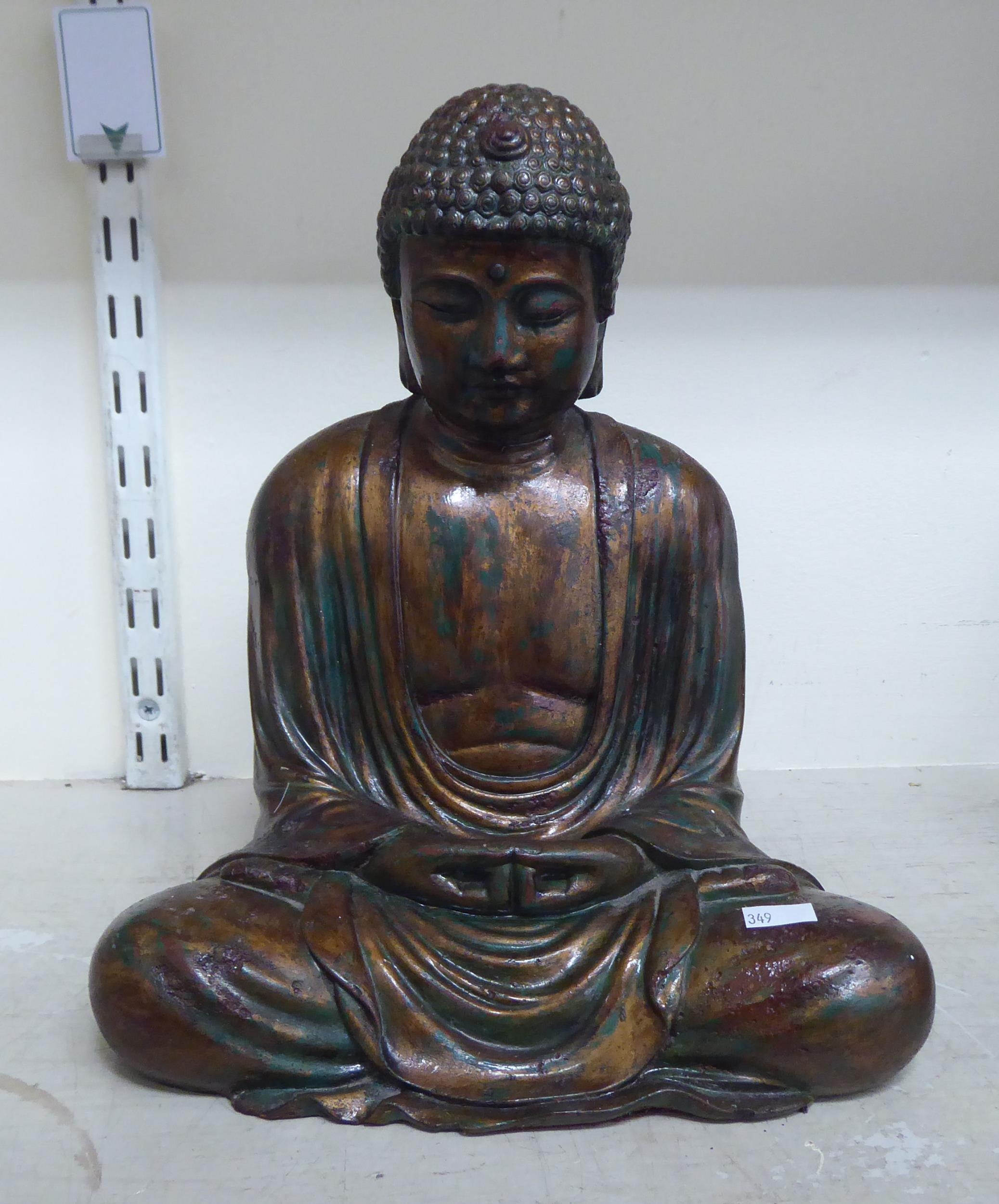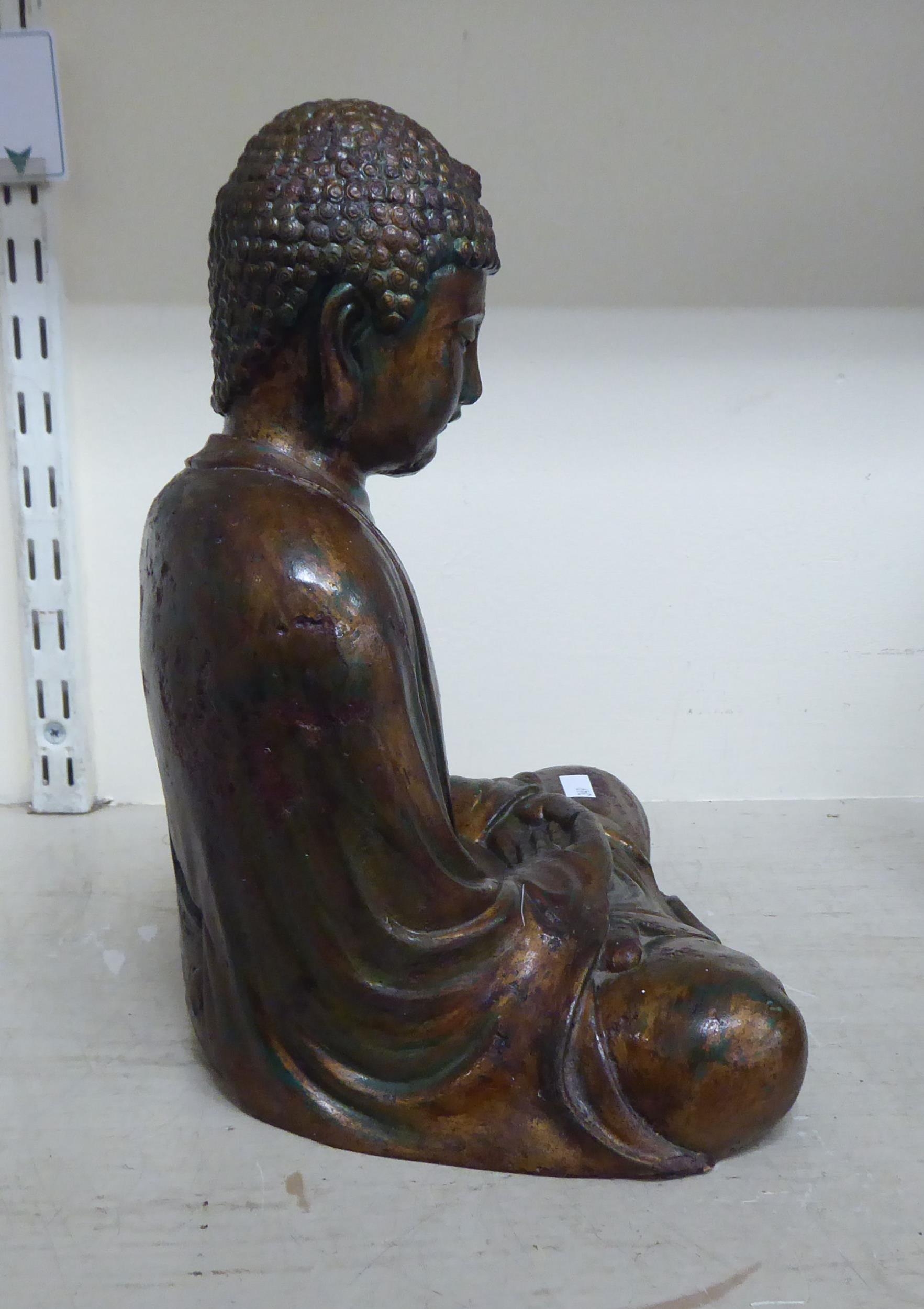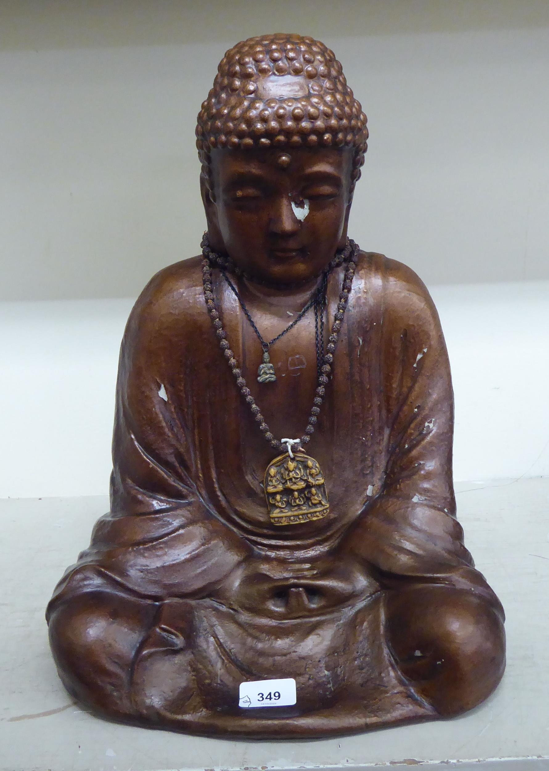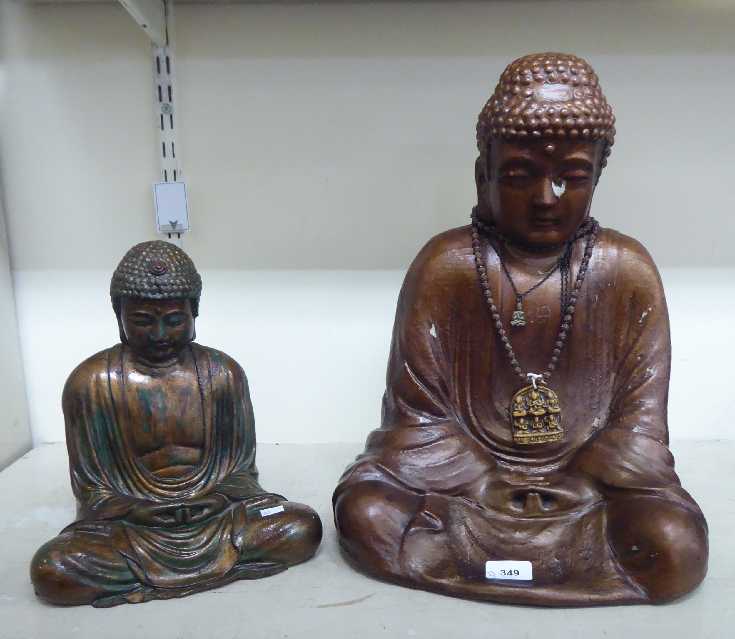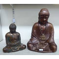 A gilded plaster model, a seated Buddha 19"h; and another composition example 12"h