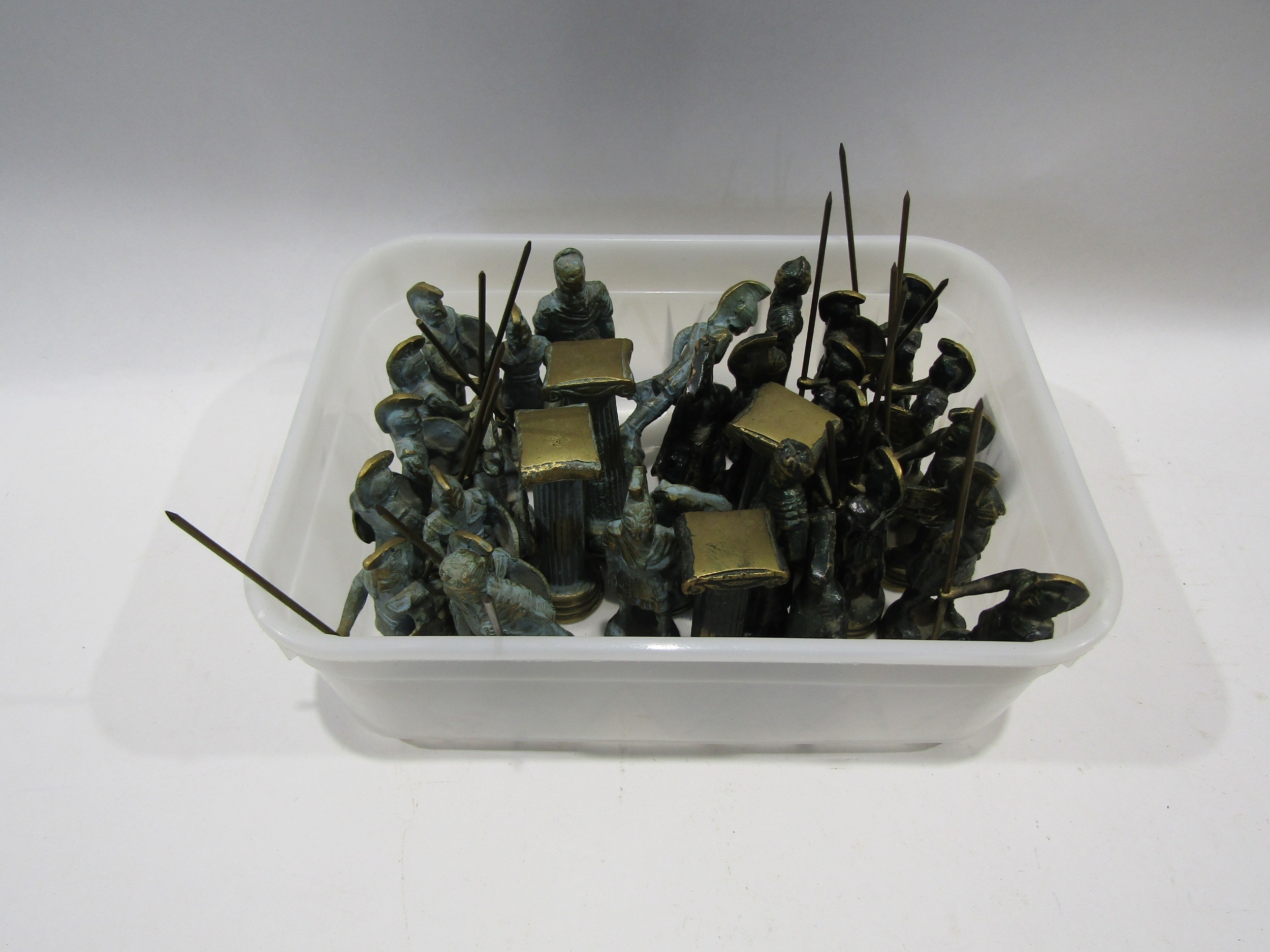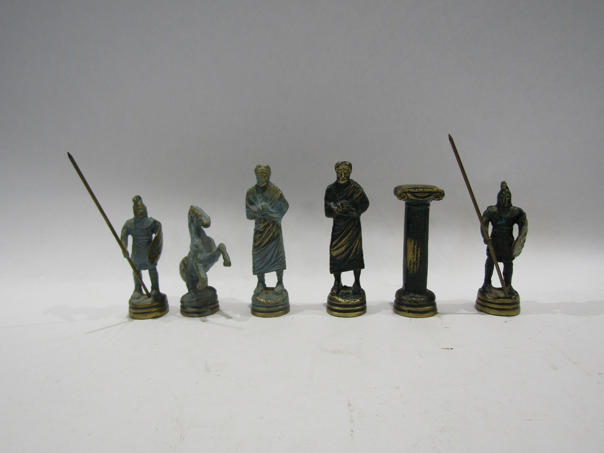 A set of Greek design metal chess pieces