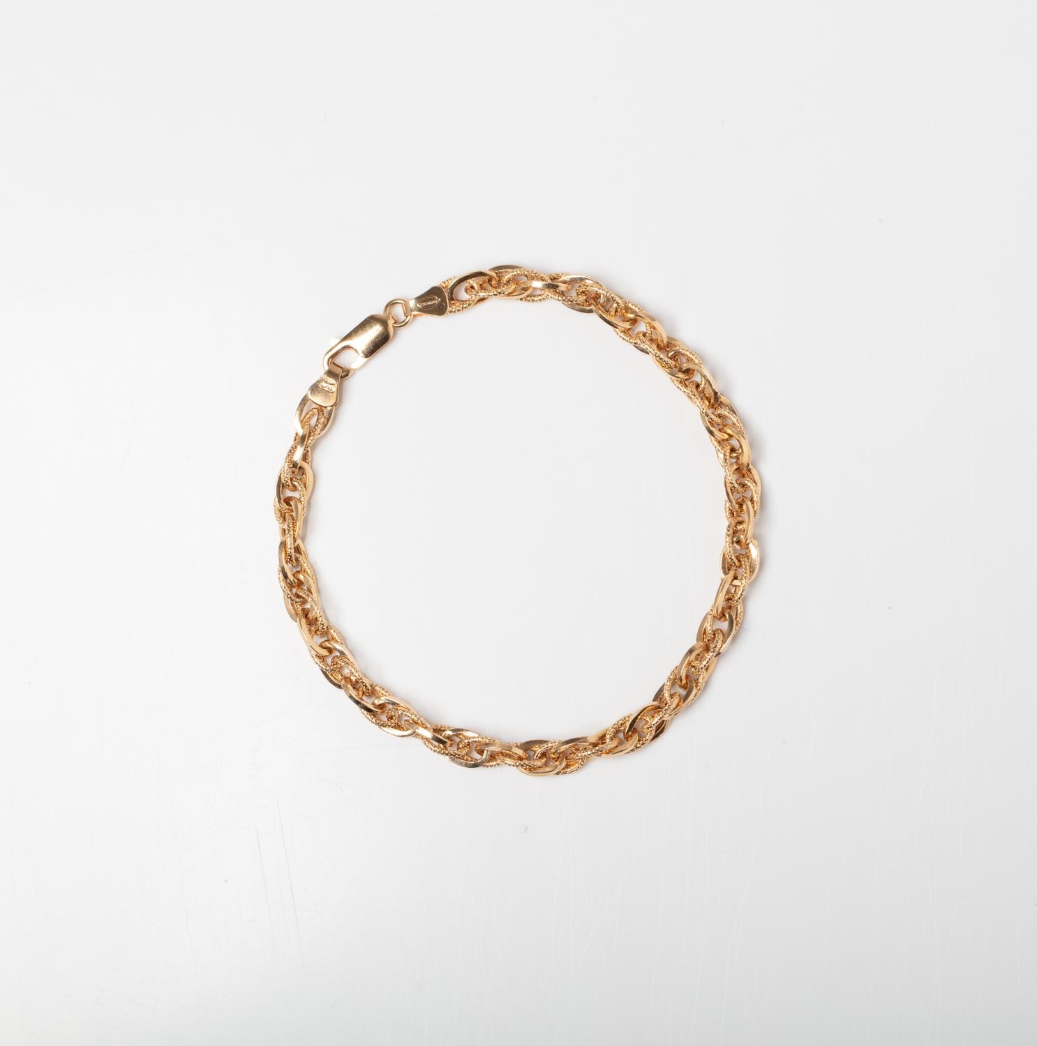 A 9CT GOLD ROPE BRACELET A 19cm long Sparkle Rope bracelet crafted in 9ct yellow gold weighing 3.47 grams