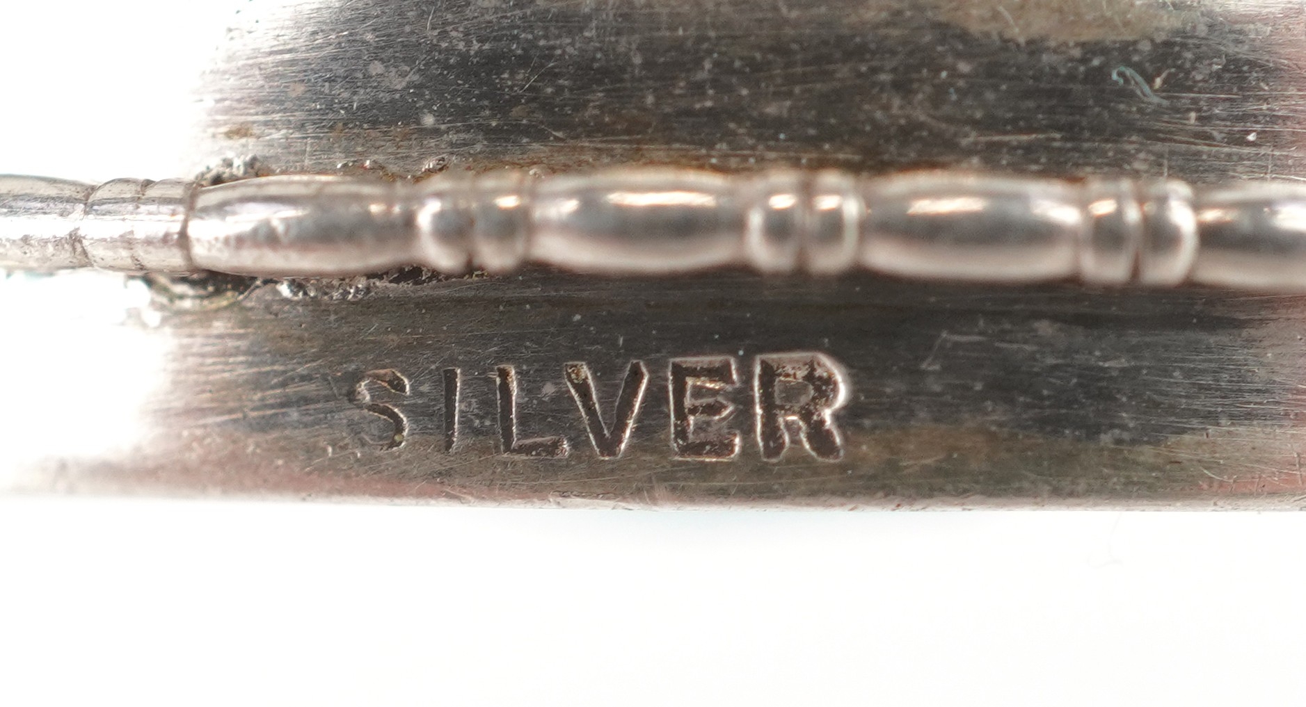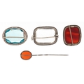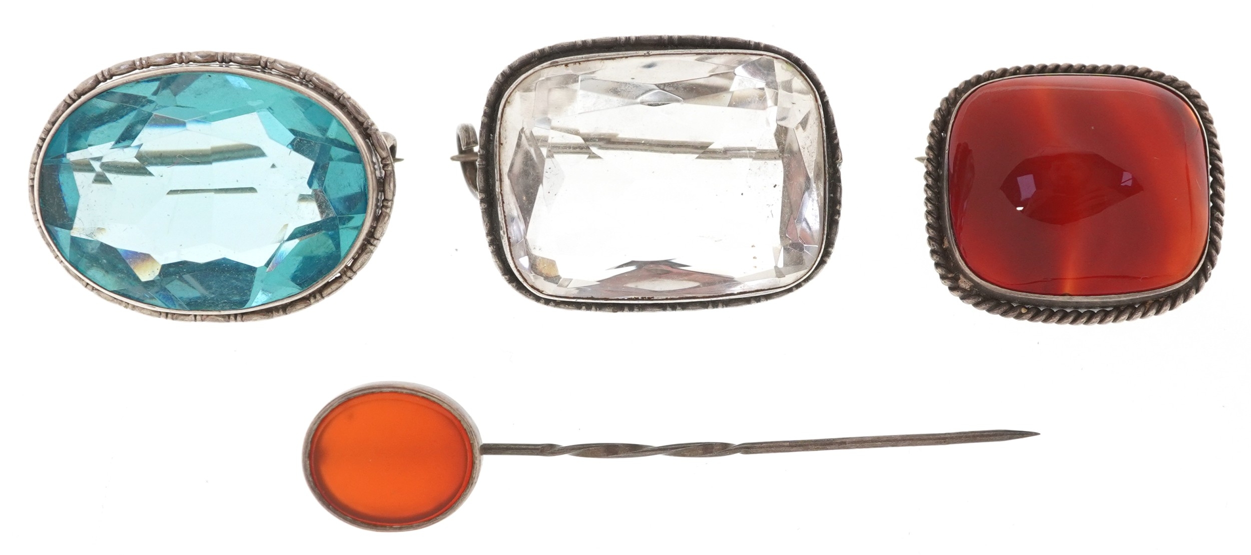 Silver jewellery including an unmarked agate brooch and stickpin, the largest 5.4cm in length, total 25.6g.