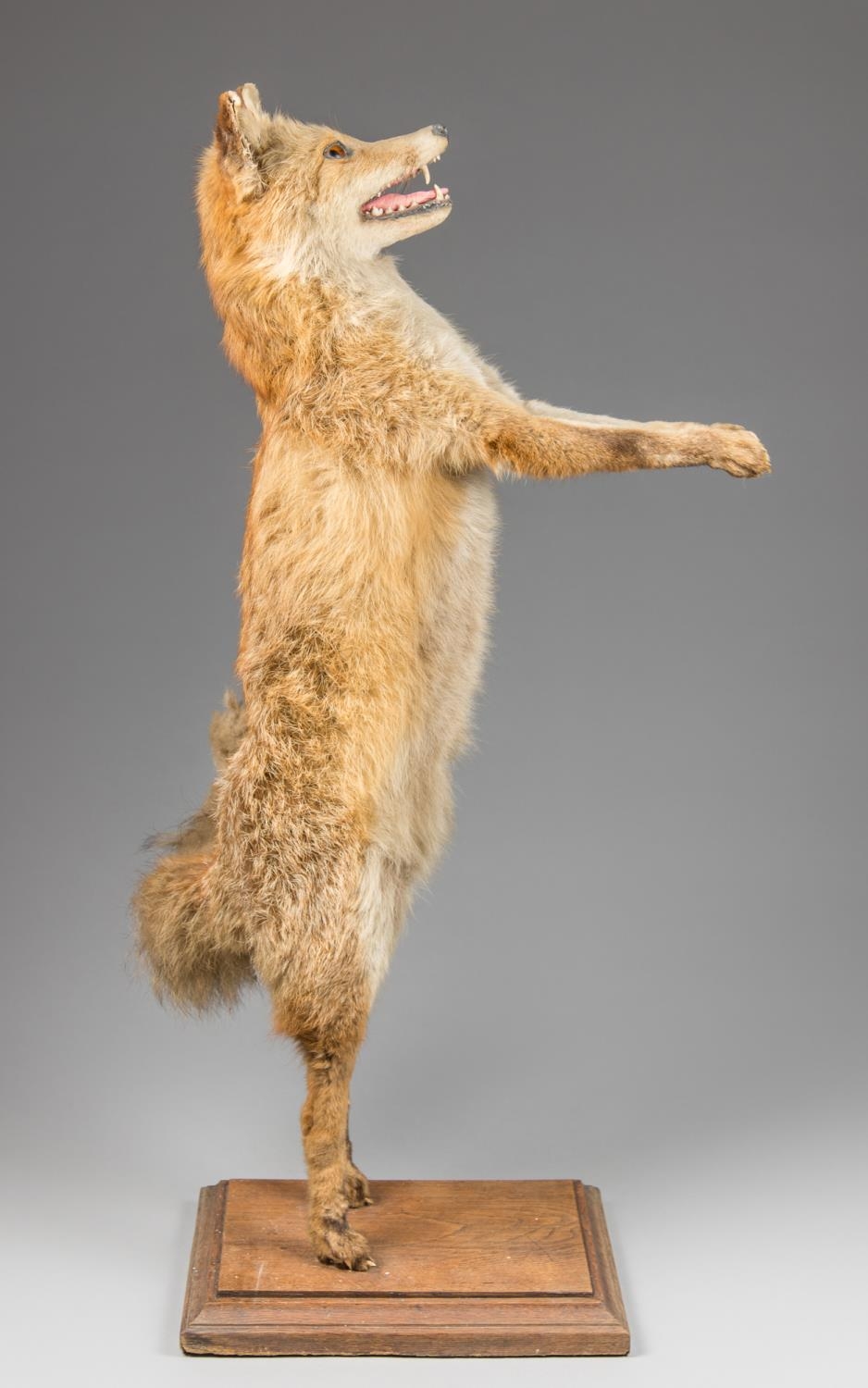A 20TH CENTURY TAXIDERMY FOX DUMBWAITER. (h 101cm x w 44cm x d 22cm)