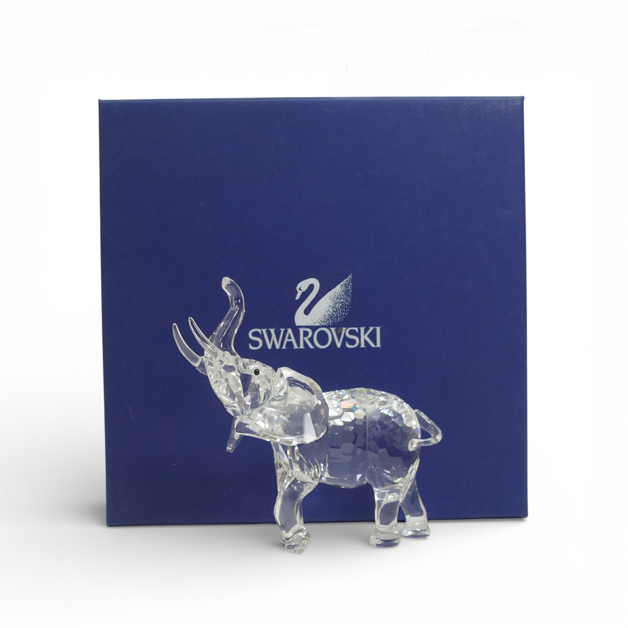 Swarovski Rare Encounters Mother Elephant (678949) retired 2011 designed by Heinz Tabertshofer presented in clear crystal. H:-11cm. Boxed.