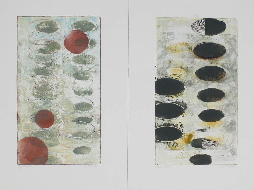two etchings with aquatint in colours on wove,