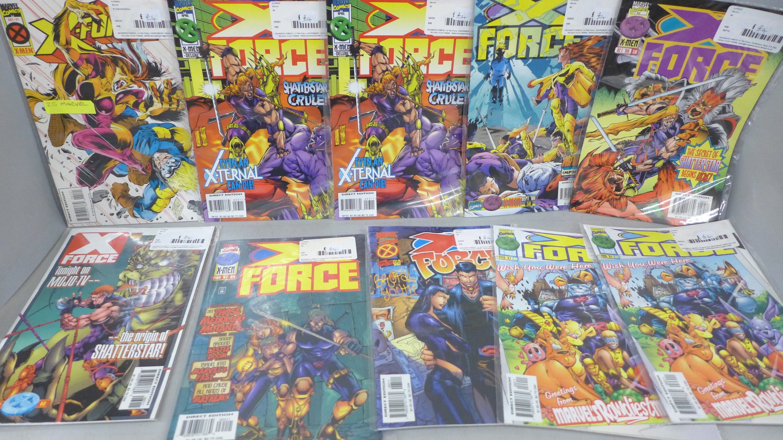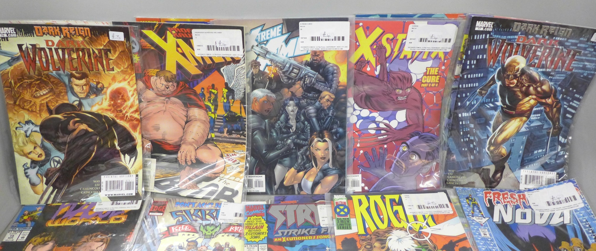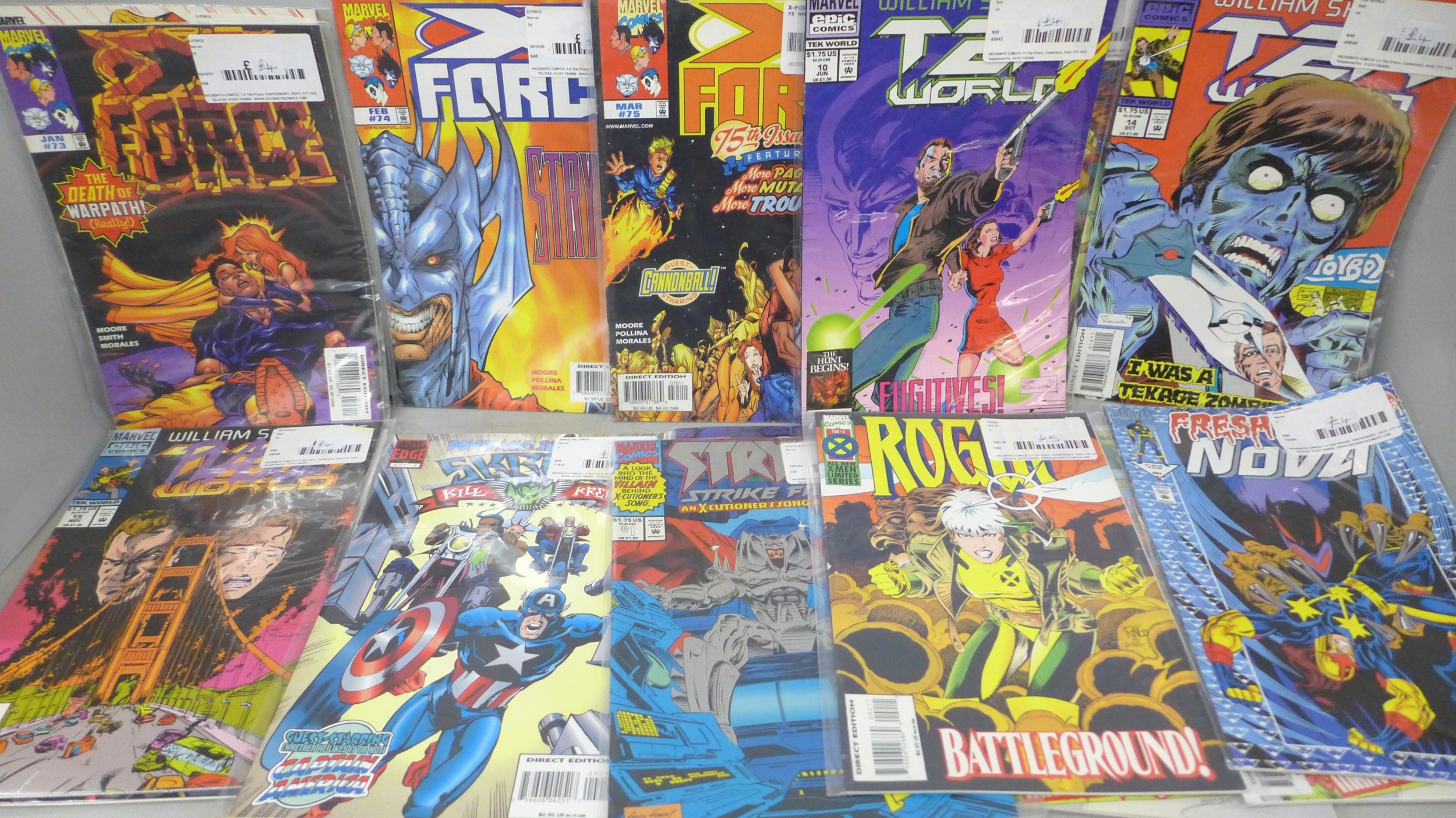 Twenty five Marvel comics, including Ex-force, Tek World, Skrul, Professor Xavier, etc.