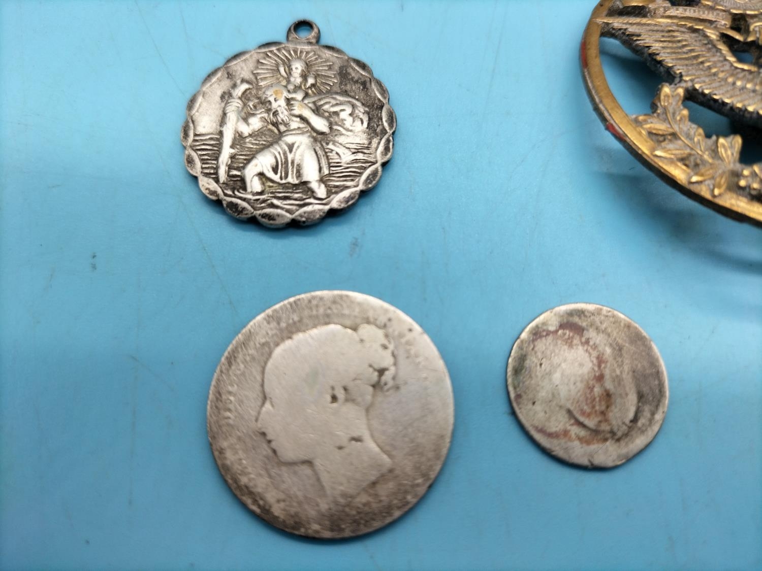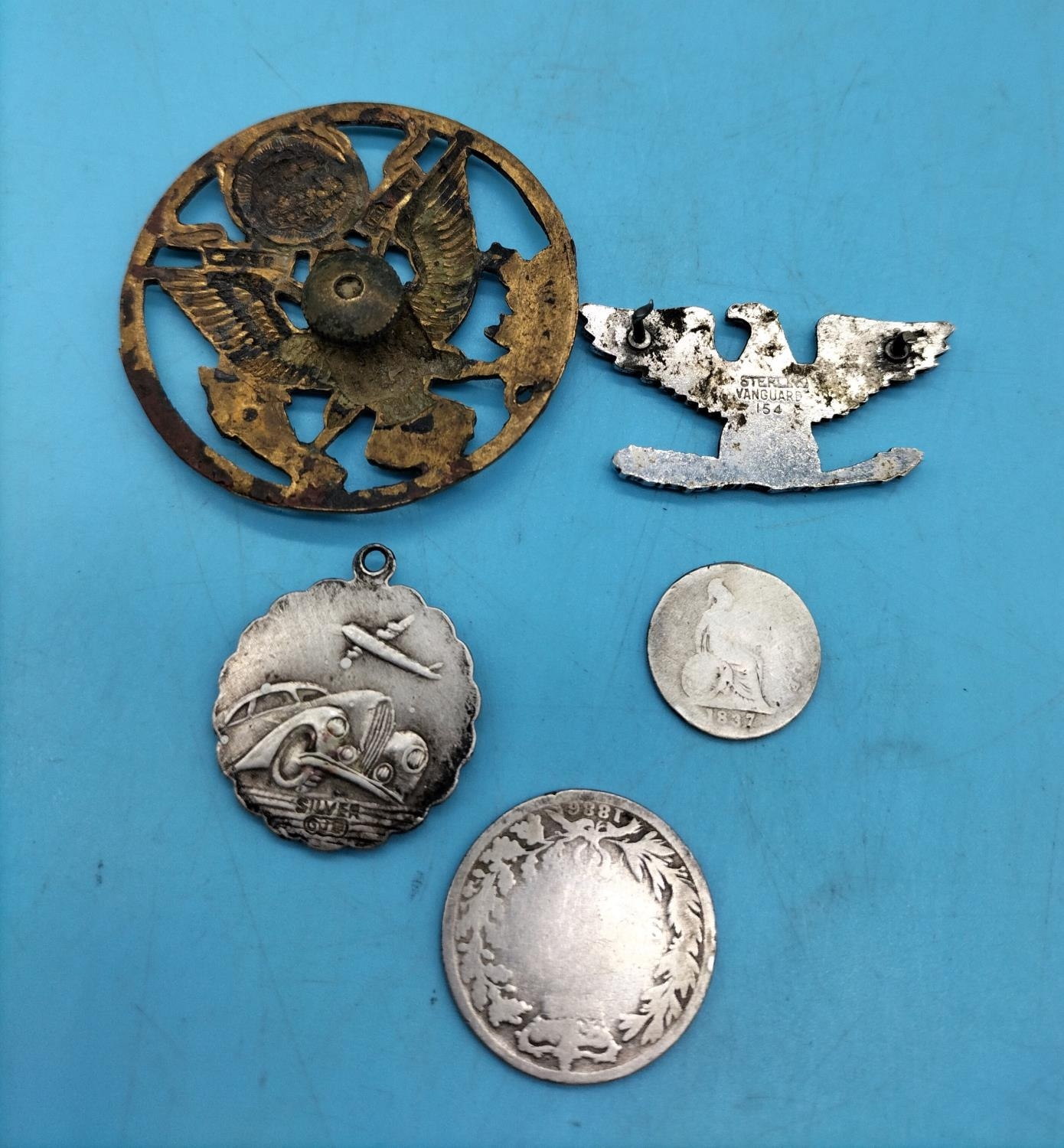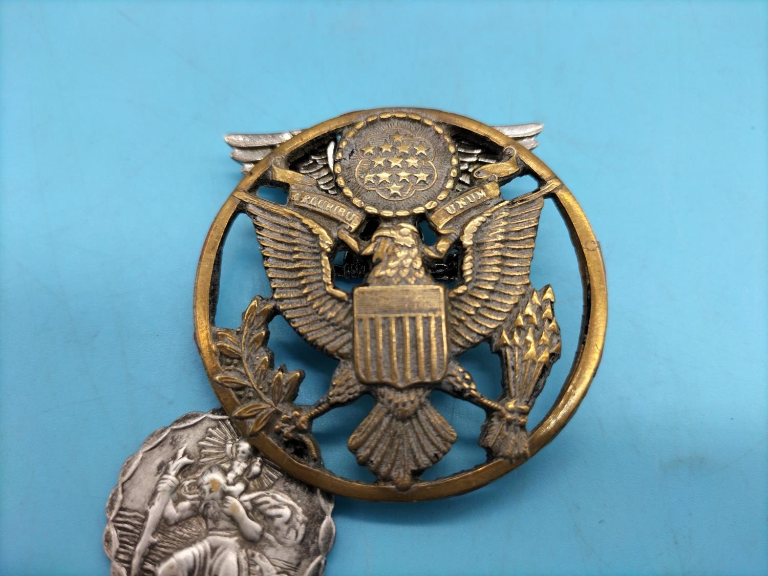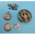 USA Air Force Badge, Sterling Silver Army Eagle Insignia Vanguard 154 plus Silver Coins and St Christopher.