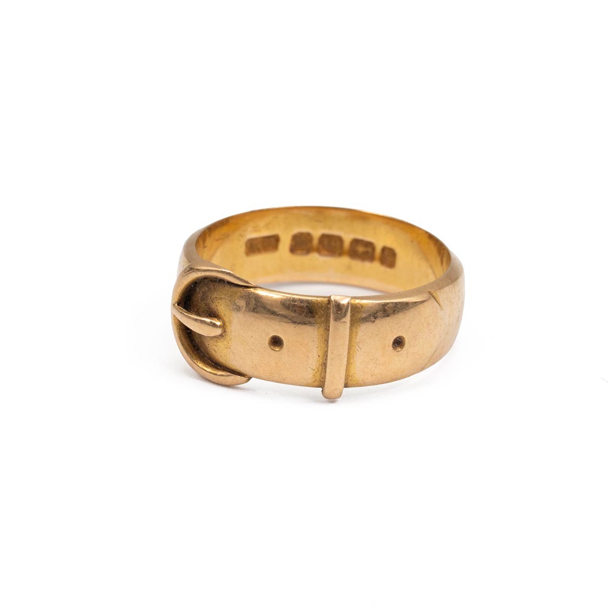 18ct gold ring in the form of a belt and buckle size L, weight 5.2 grams.