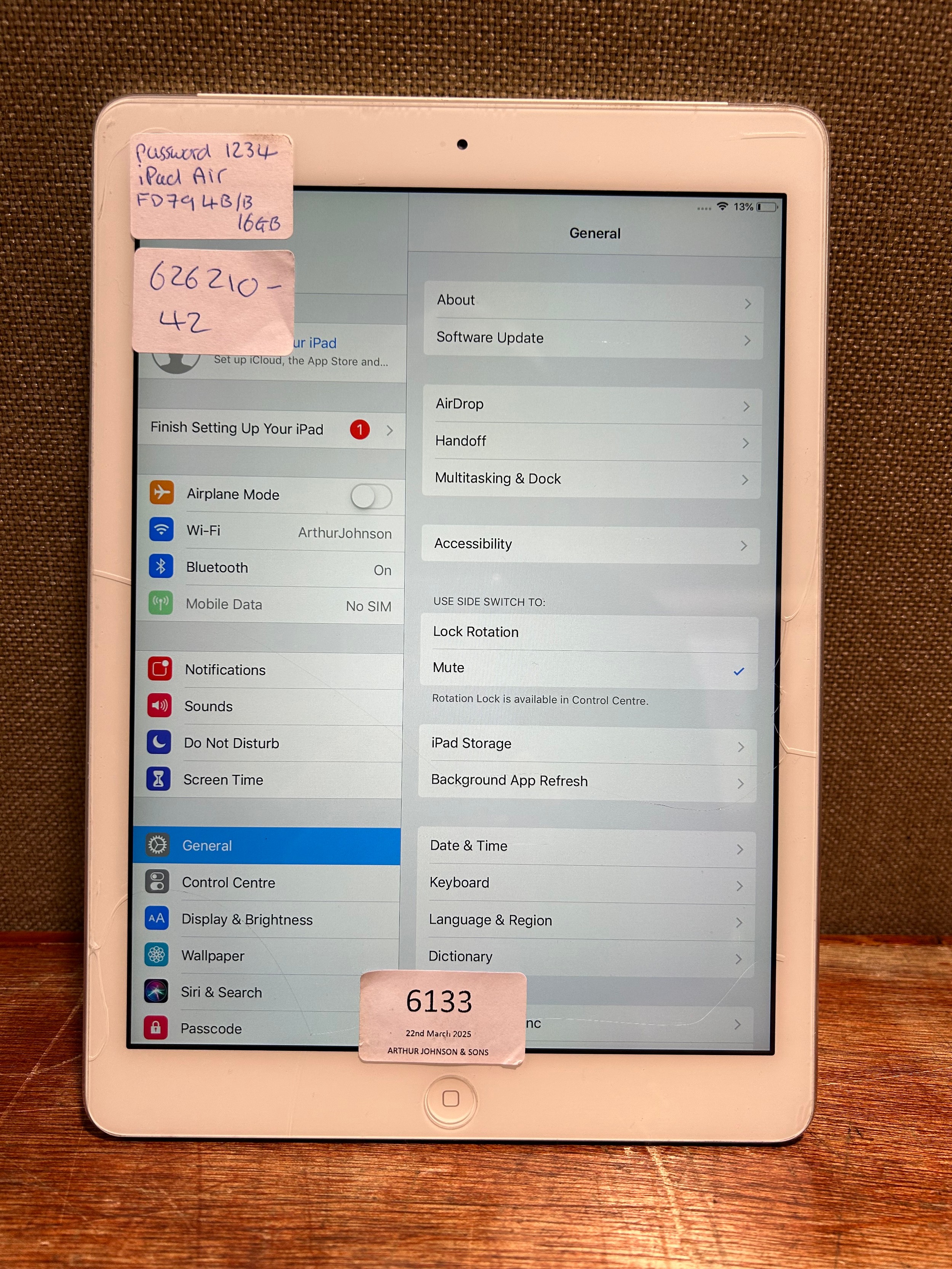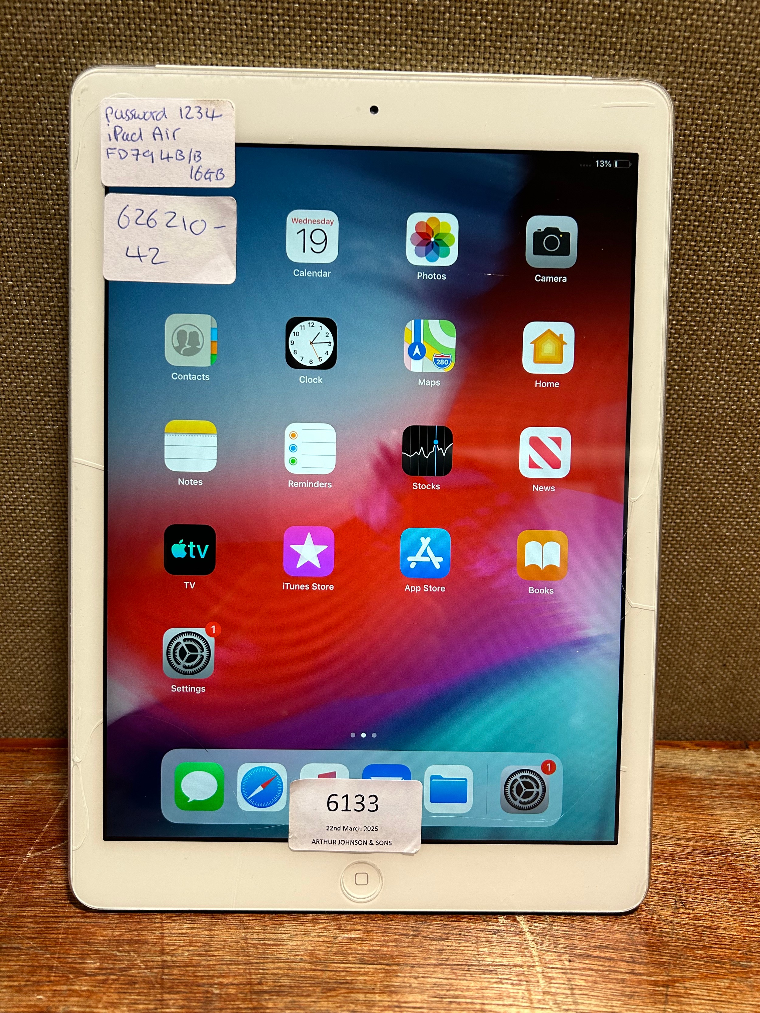 Apple ipad Air 16gb (model:FD794B/B) *This lot is subject t...