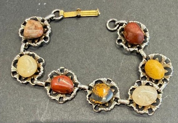 Jewellery : Vintage white metal and stone bracelet