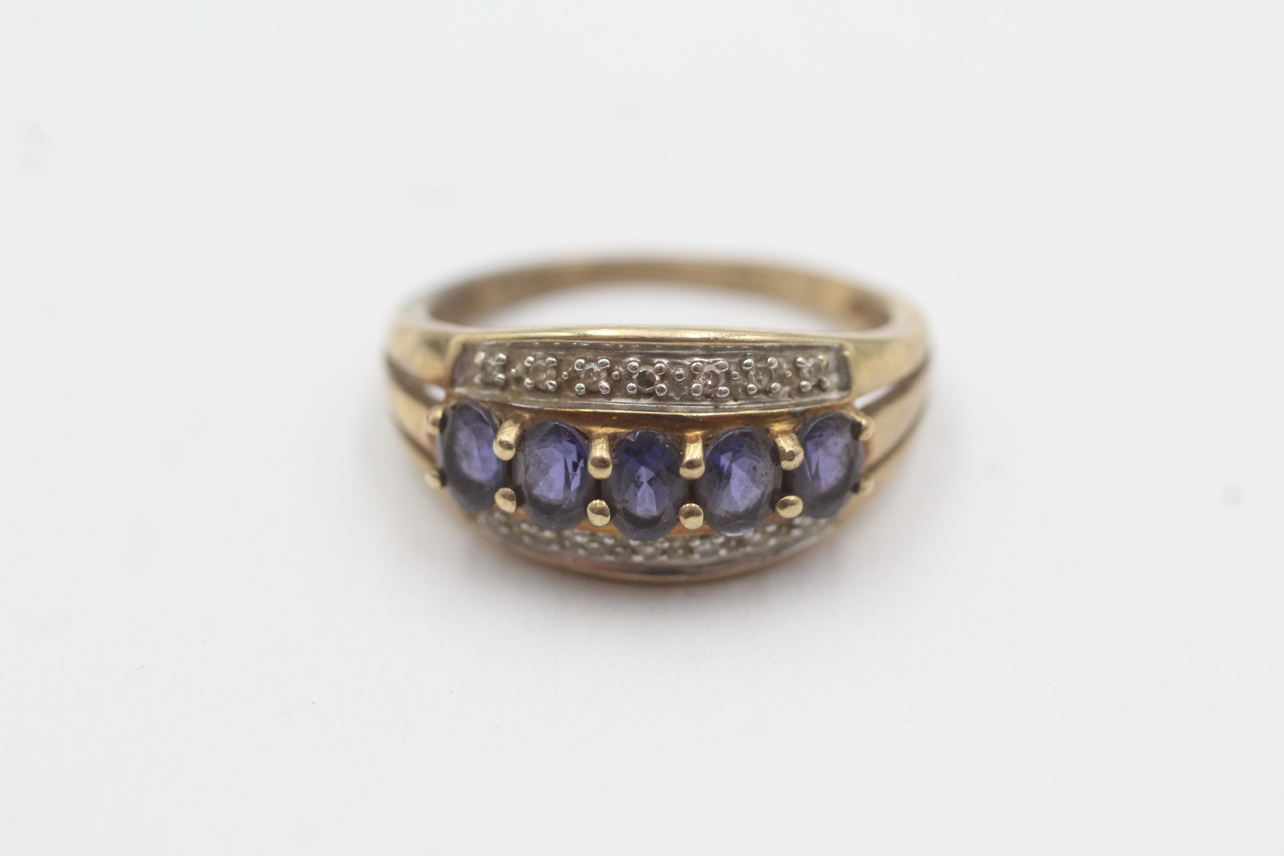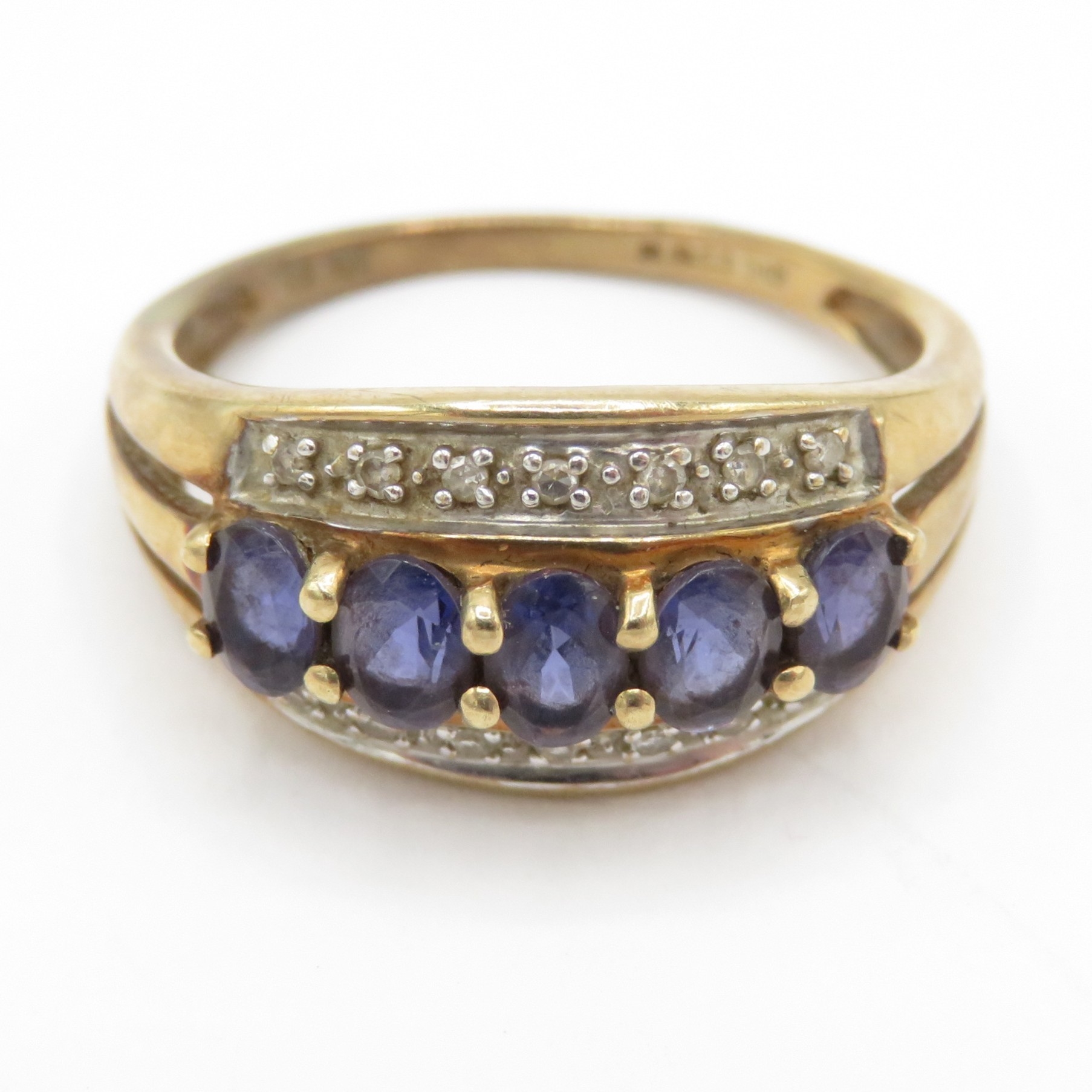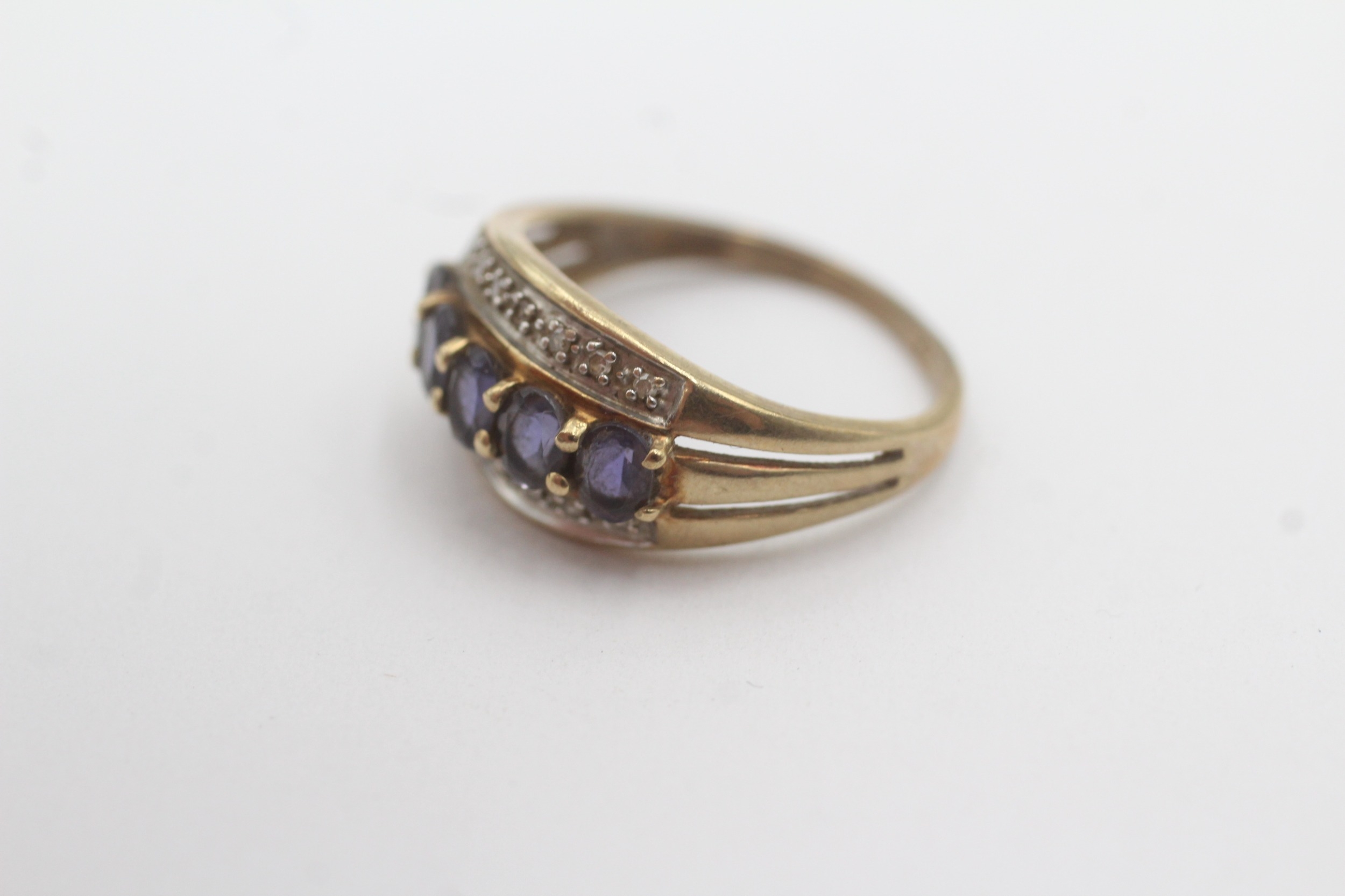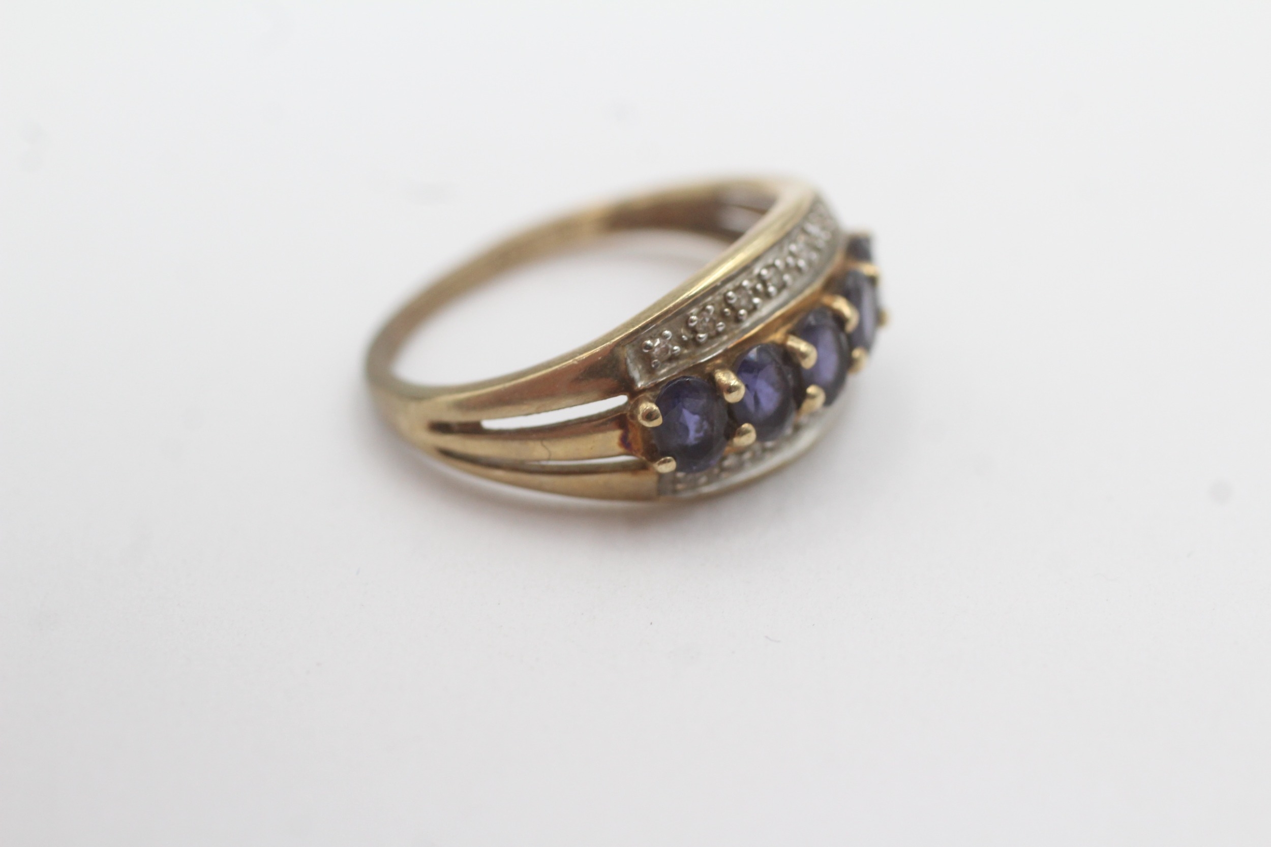 9ct gold iolite diamond ring (2.2g) Size L
