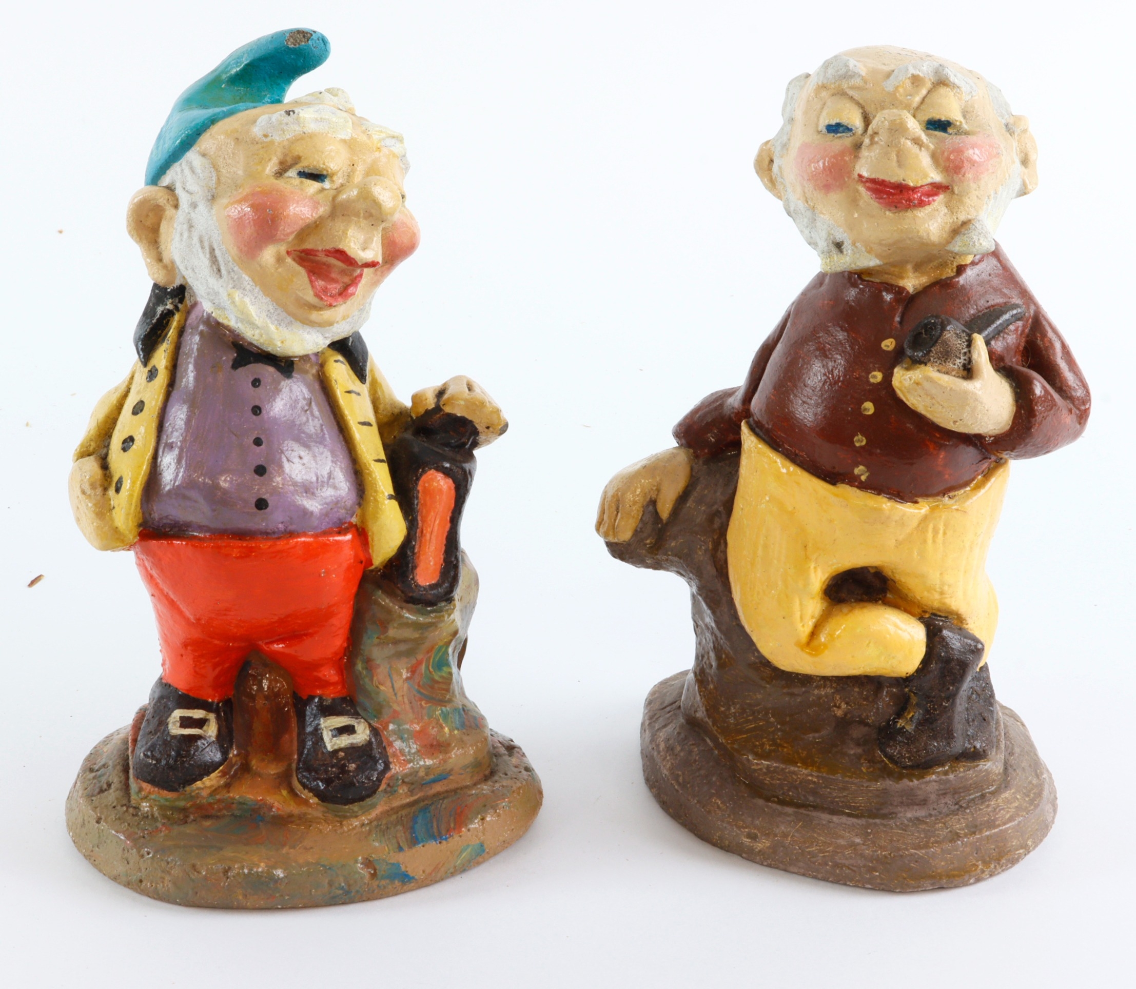 Garden Dwarves (2) made in the Isle of Man Pottery c1970, very well modelled, missing a little paint on one's hat but otherwise in a good overall condition