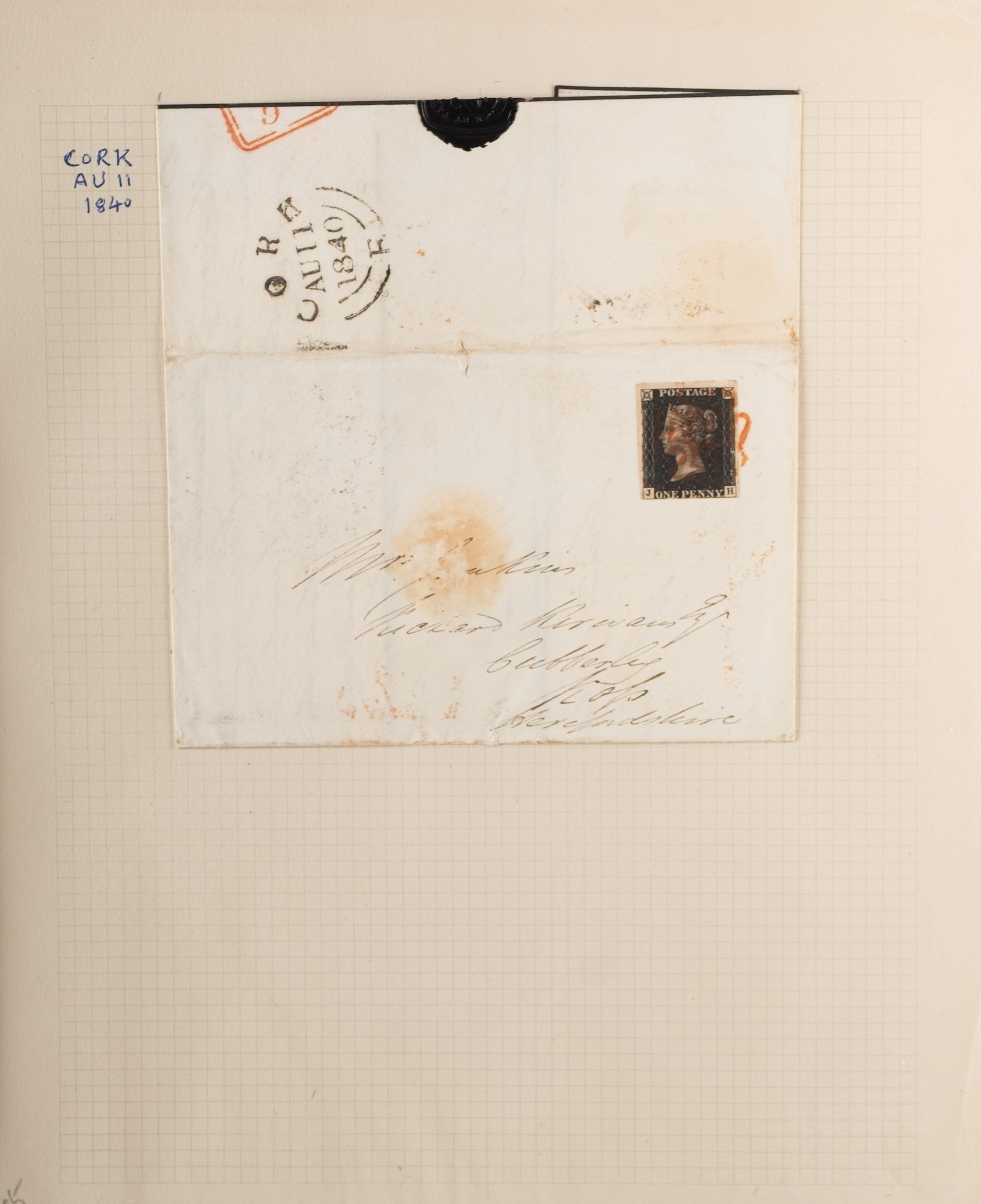 Great Britain. 1840 1d Black on cover, Cork AU 11 1840.