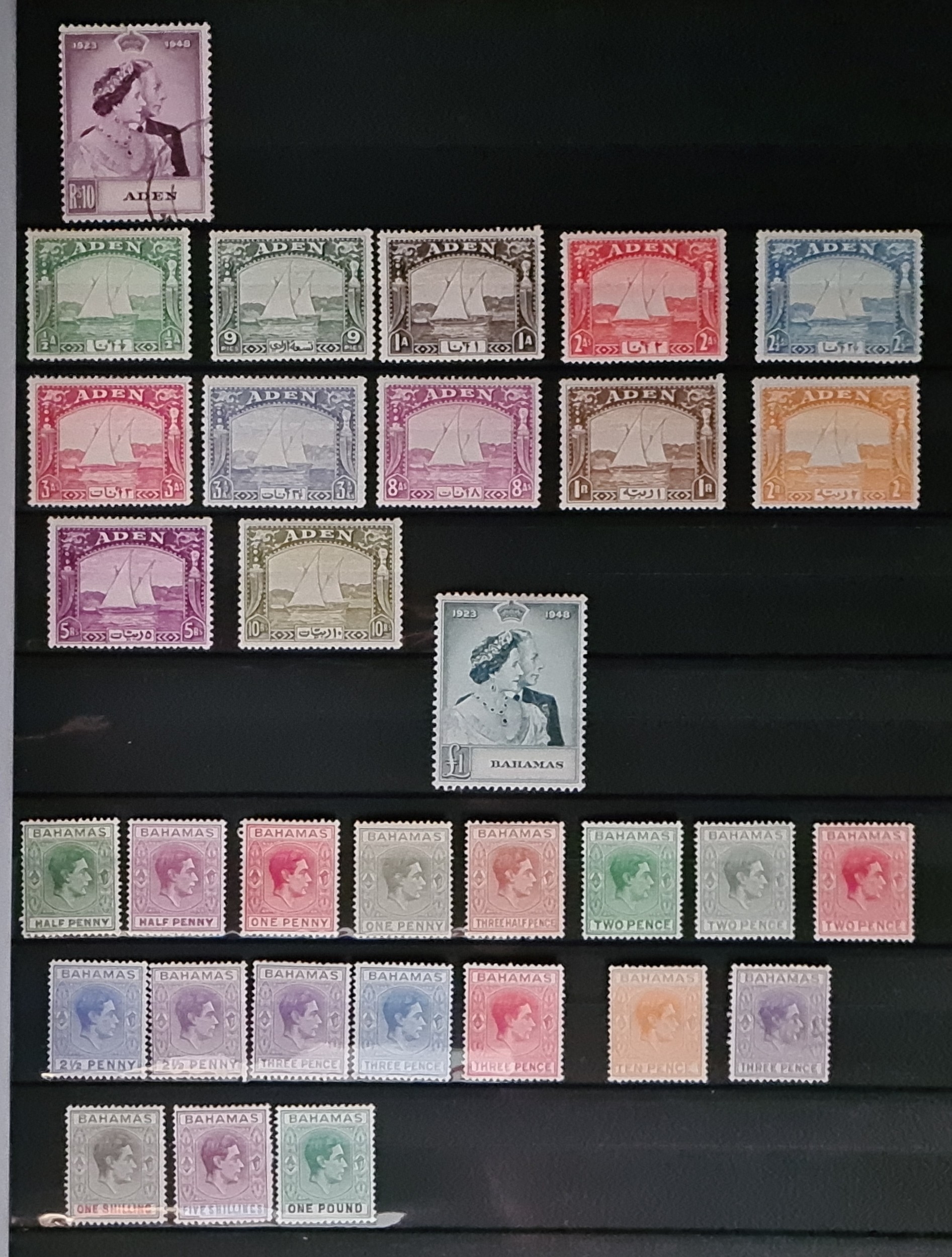 1937-52 KGVI MINT COLLECTION in a stock book with many better sets & 1948 RSW issues. inc. complete sets of 1937 Aden 'Dhows', 1938 sets of Bahamas, Basutoland, Bermuda (ex later 2d & 3d), British Honduras, Cyprus, Falklands, Gibraltar, KUT, Montserrat, Newfoundland, Nyasaland & Somaliland plus 1948 RSW high values from most of the afore mentioned countries plus Ascension, Bechuanaland Prot, Malta, Seychelles, Sierra Leone, Trinidad & Tobago, Turks & Caicos & Virgin Islands; with Aden, Cyprus, Hong Kong & Somaliland being used. Also inc. several Postage Due sets inc. the Southern Rhodesia 1951 set with the 4d grey green being fu. but has forged overprint plus 1950s definitive sets from the period. Fine lot catalogued in excess of £6,250. (100s)
