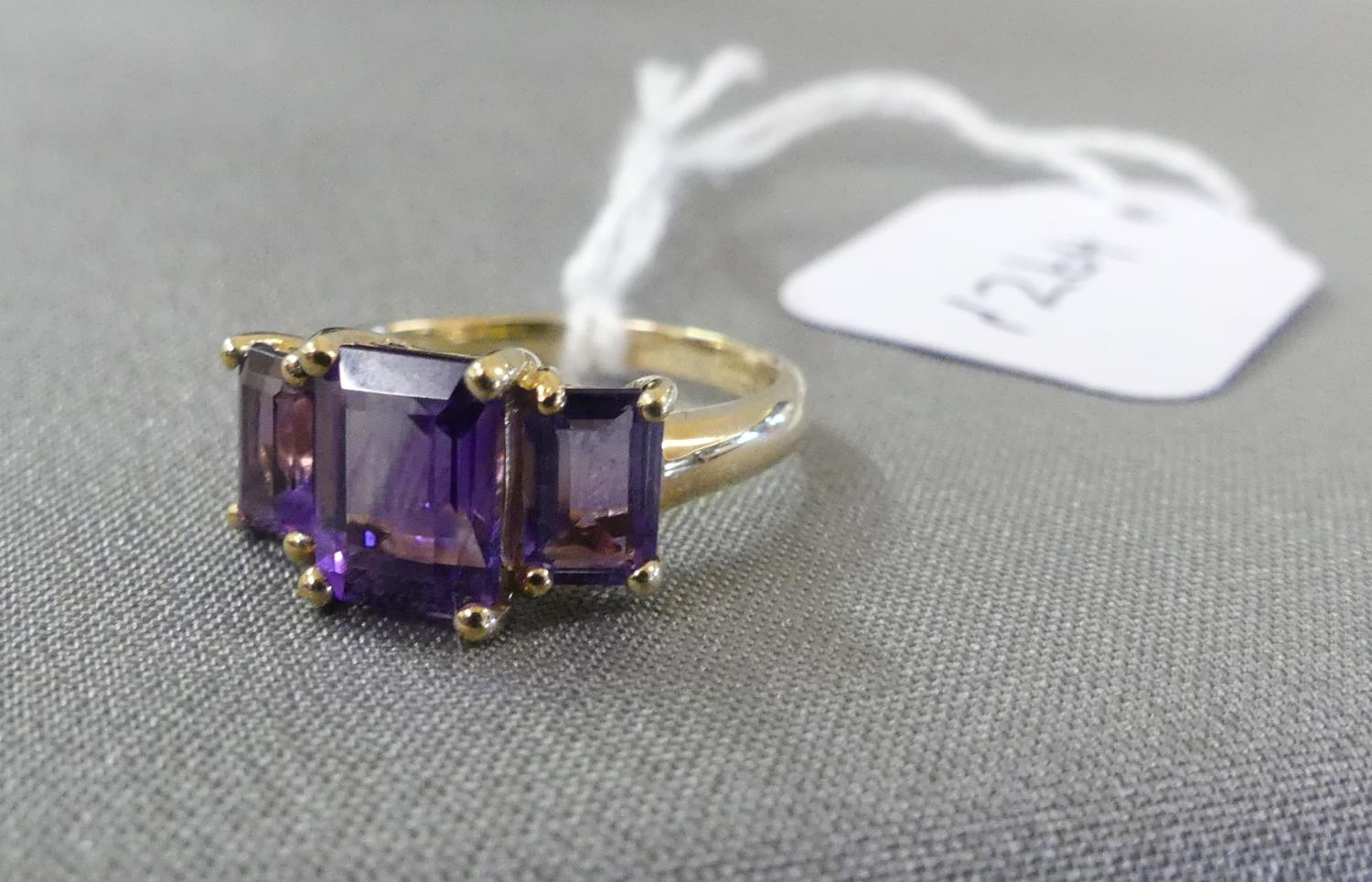 9ct Gold Ring with 3 Amethysts