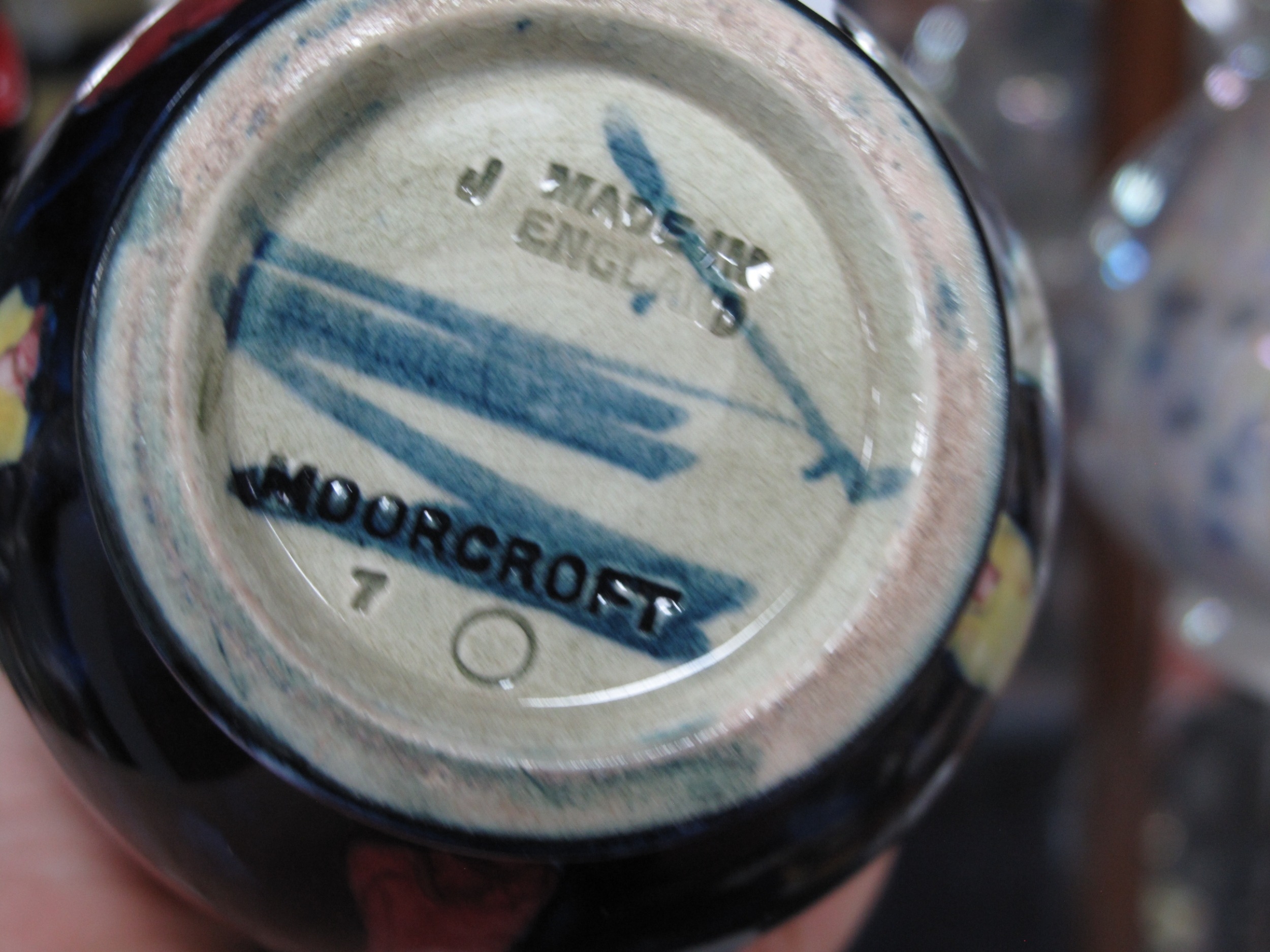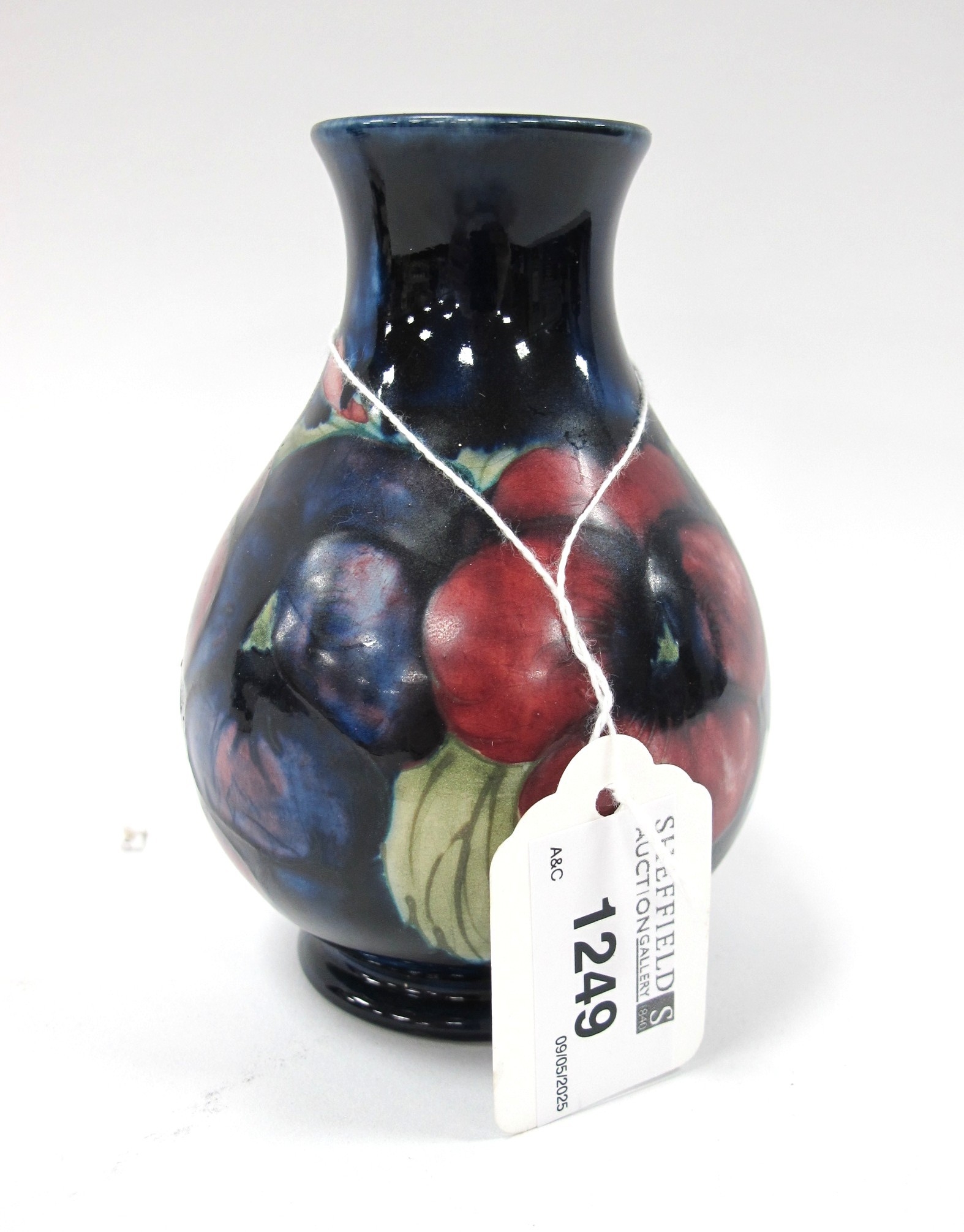 Moorcroft vase decorated in the Pansy pattern with impressed marks to base, approx 12cm high