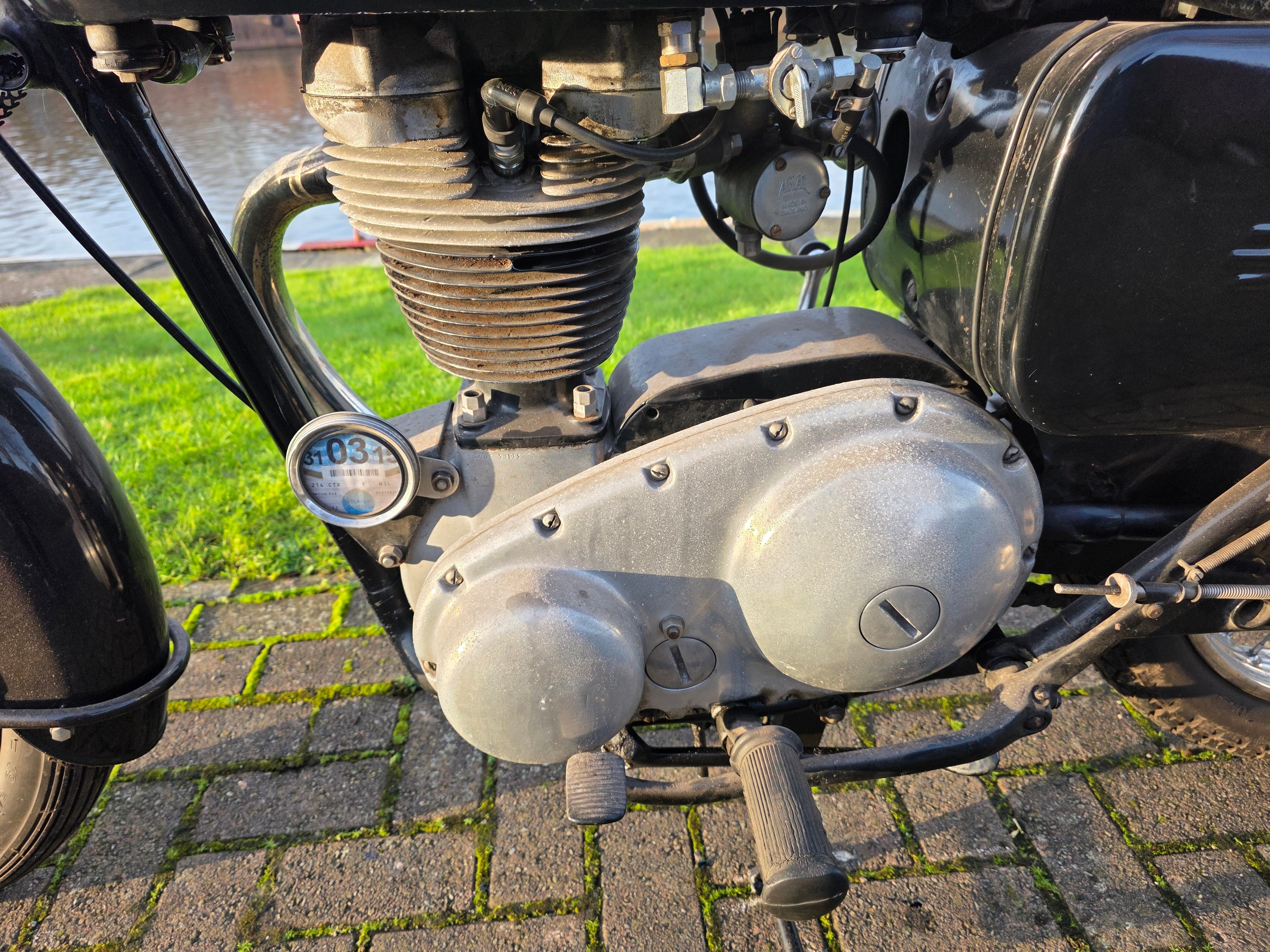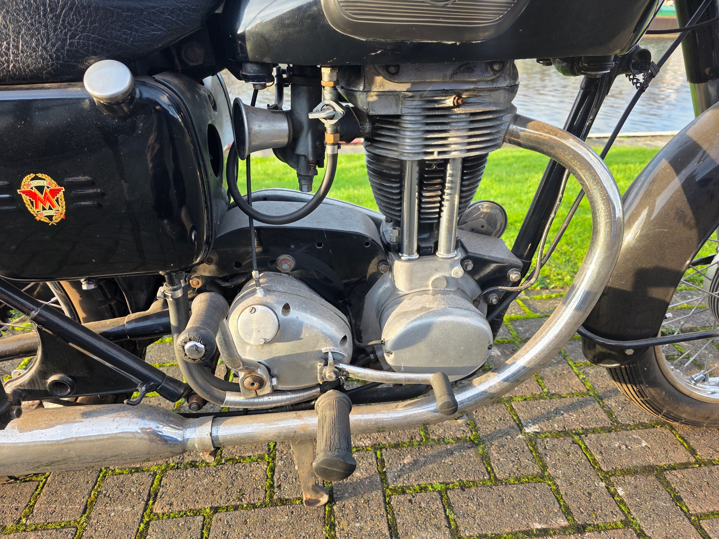 The rigid framed Matchless G3/AJS Model 16M 350 cc single was developed in 1945 from the military World War II motorcycle. The company also produced an almost identical motorcycle under the AJS name as the G3L with the only difference between the two was that the Matchless carried a magneto at the rear of the cylinder barrel, whereas the AJS magneto was at the front.