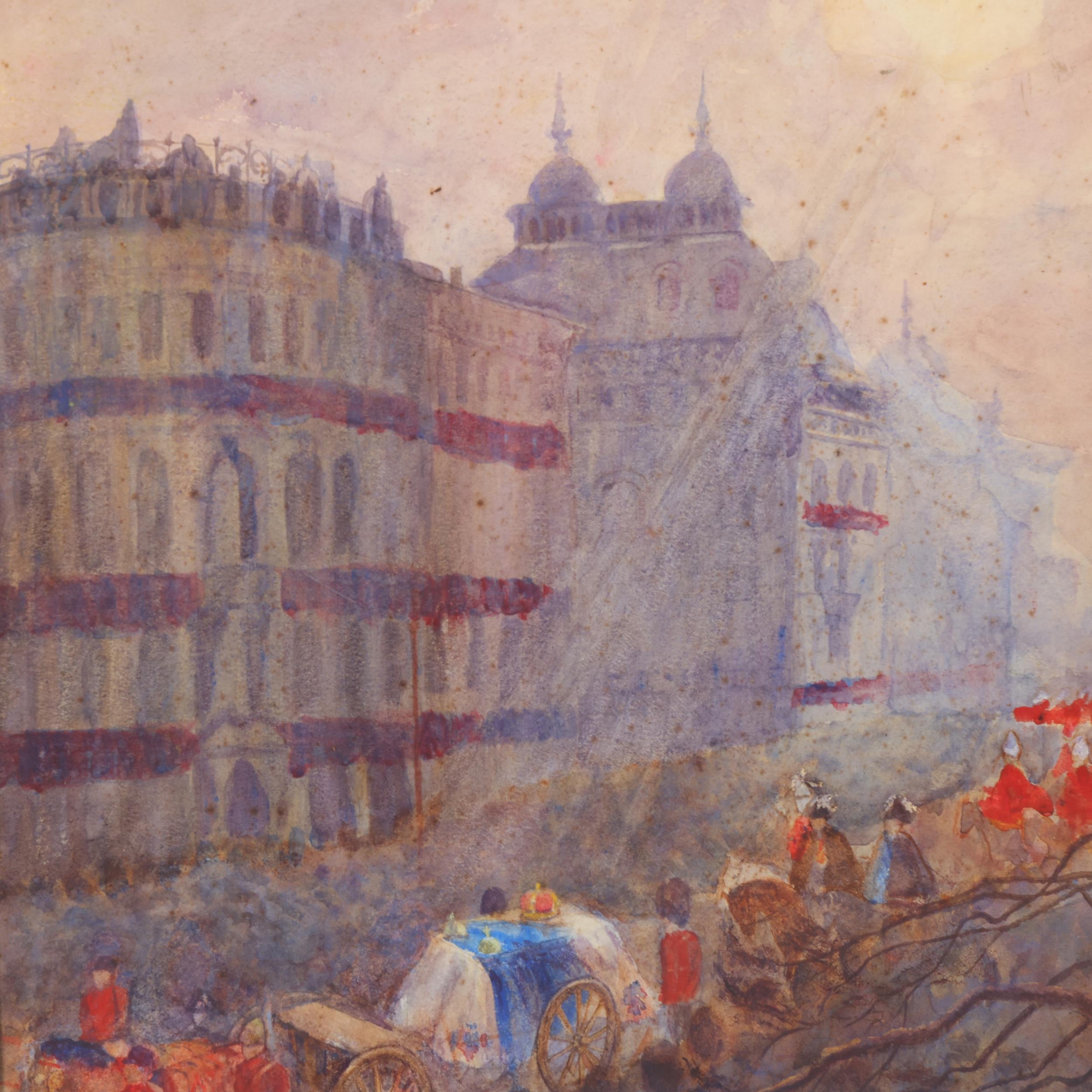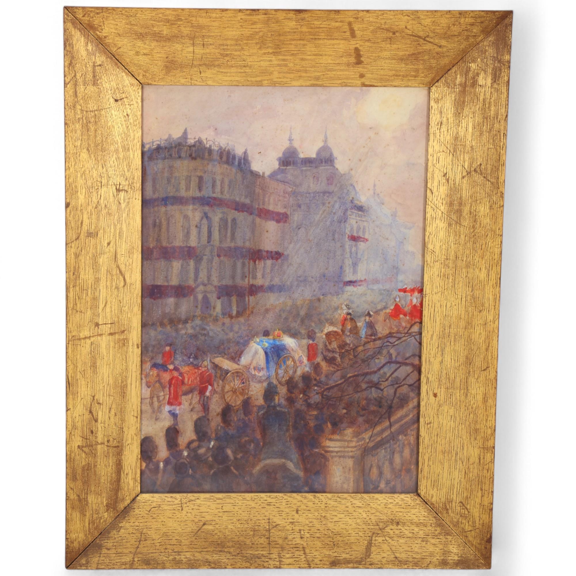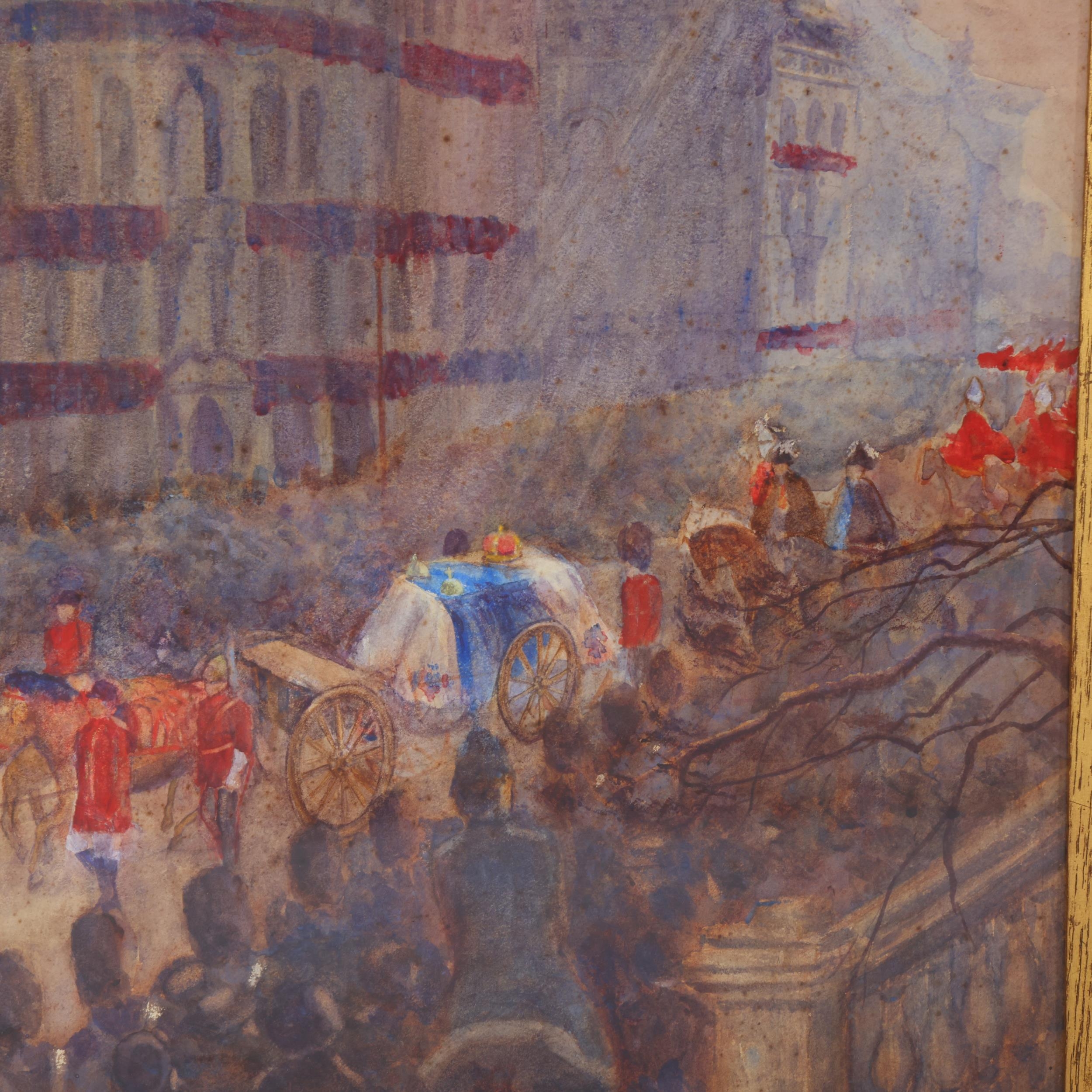 Hebe Alexander, The Passing Of The Queen (Queen Victoria's Funeral Procession), 19th century watercolour, original gilt frame, overall frame dimensions 71cm x 54cm