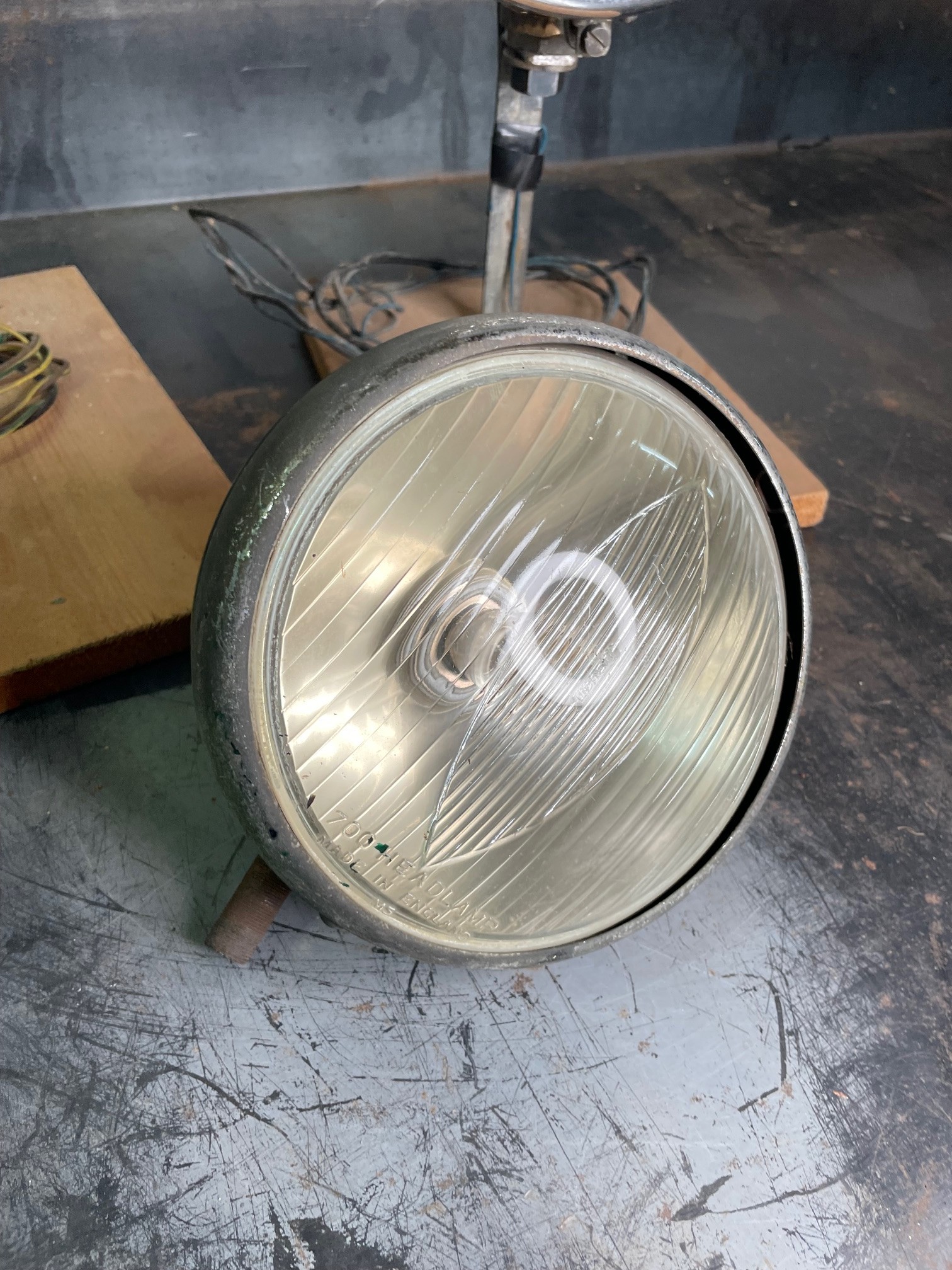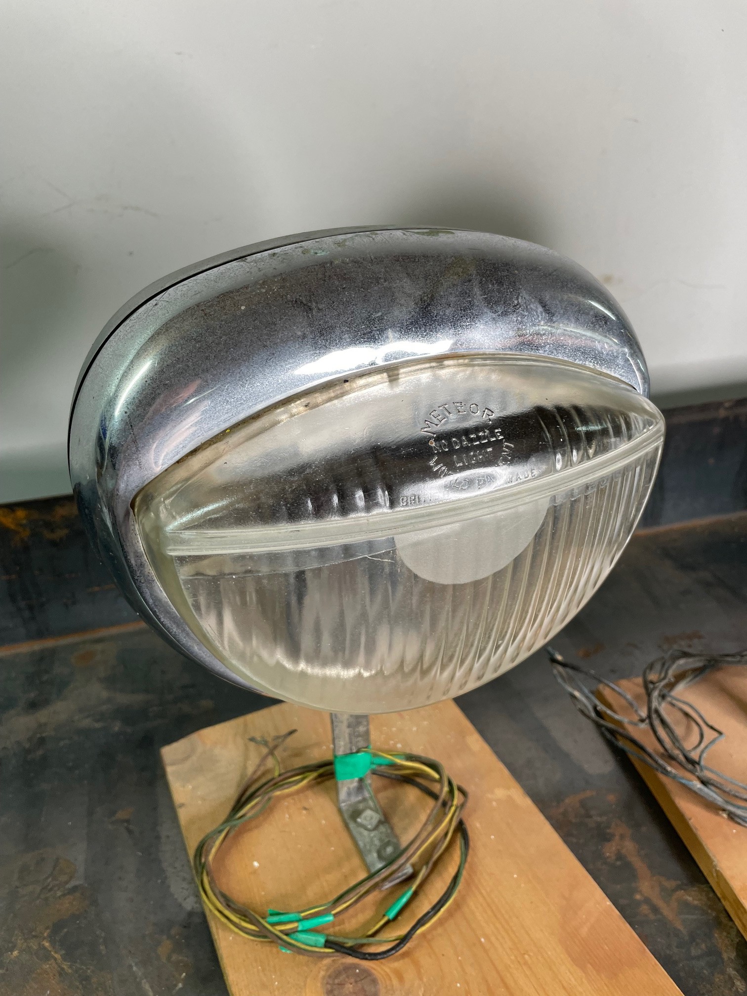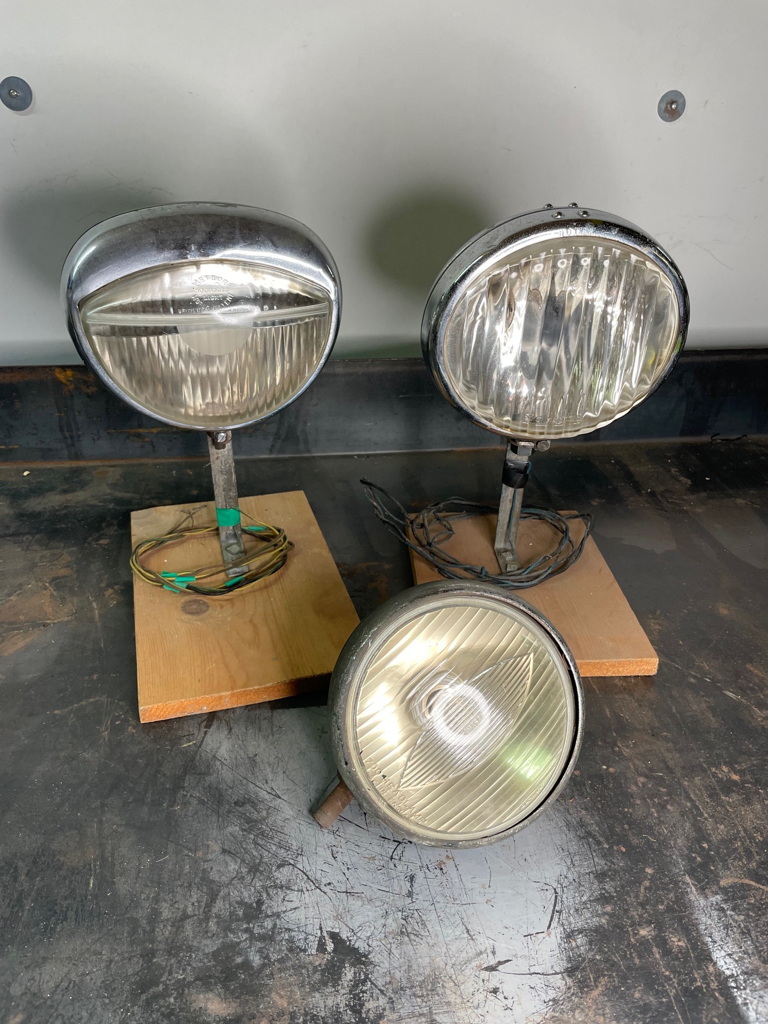 Three Vintage Car Headlamps, Lucas 700, NOTFK Fogmaster, Meteor No Dazzle