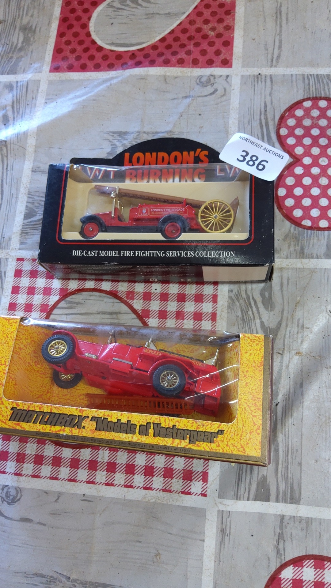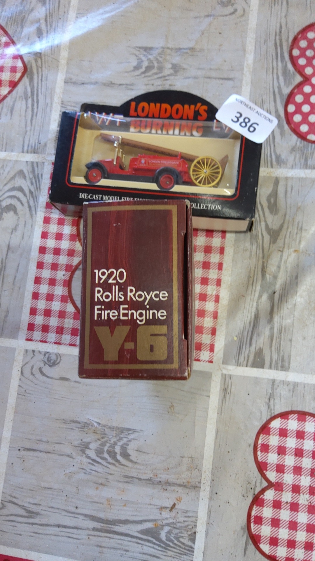 A group of boxed die-cast fire engines, including a "London’s Burning" Fire Fighting Services Collection example, together with a Matchbox "Models of Yesteryear" 1920 Rolls Royce Fire Engine, model Y-6.