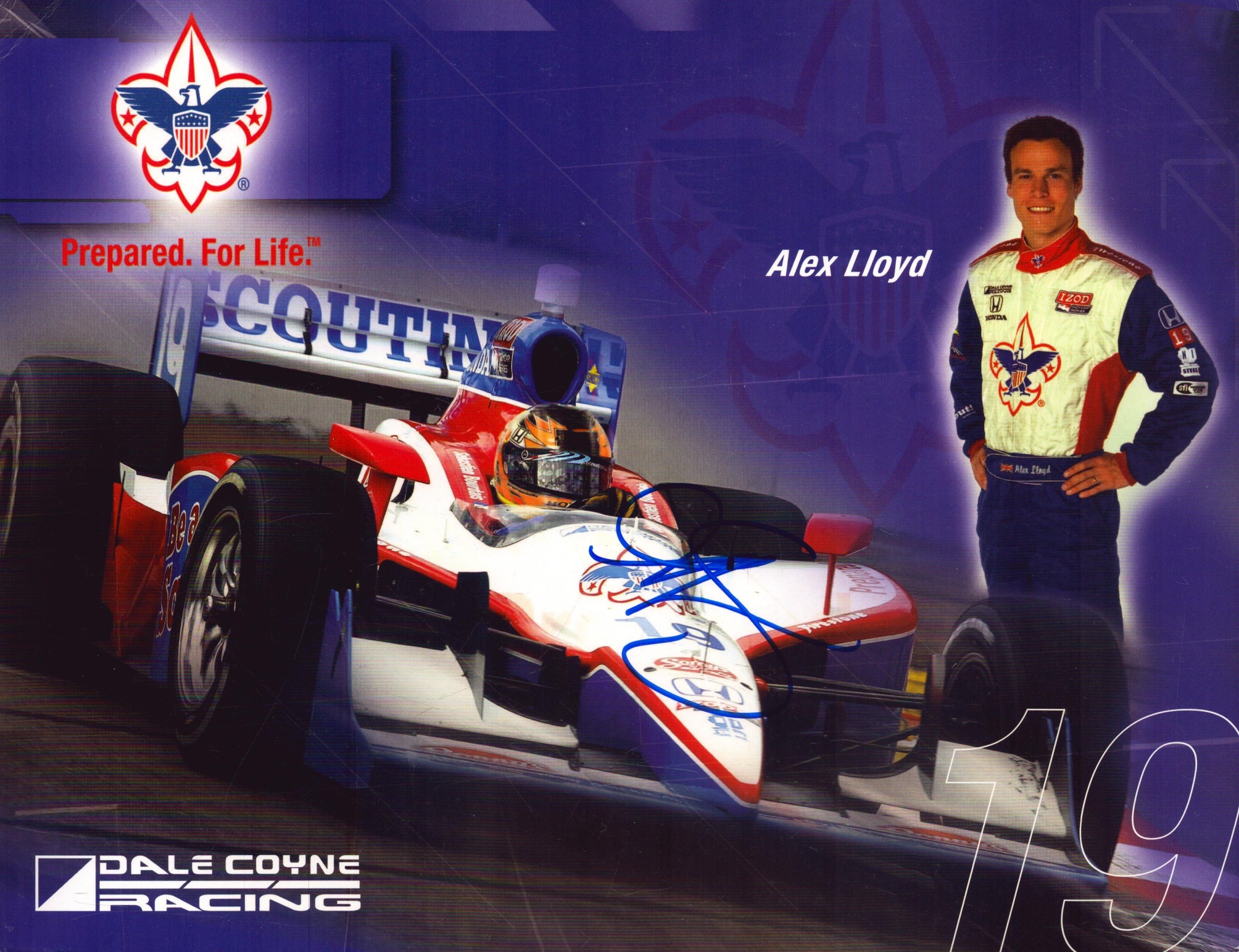 Alex Lloyd signed Dale Coyne Racing promo card, 10x8inch.