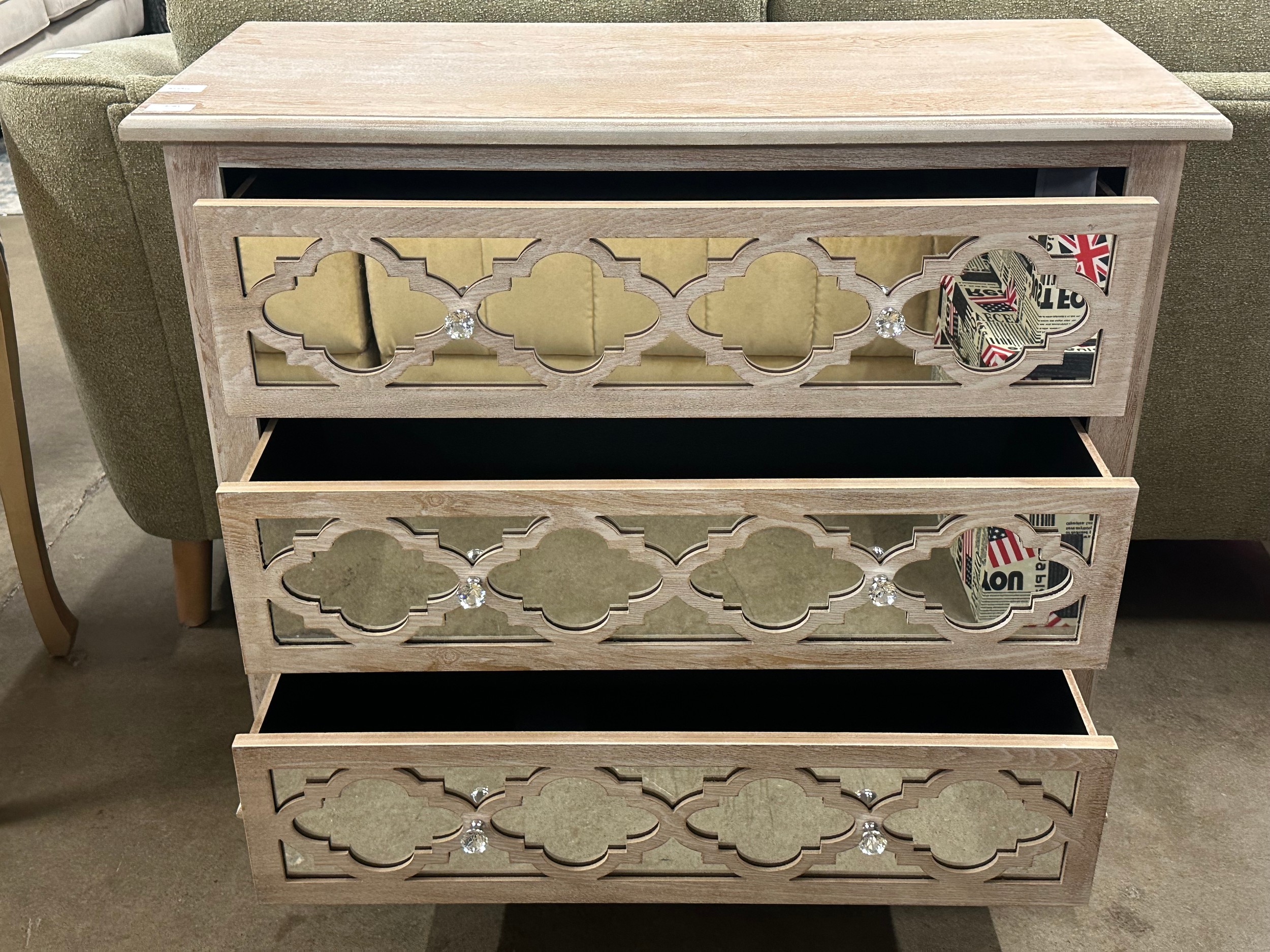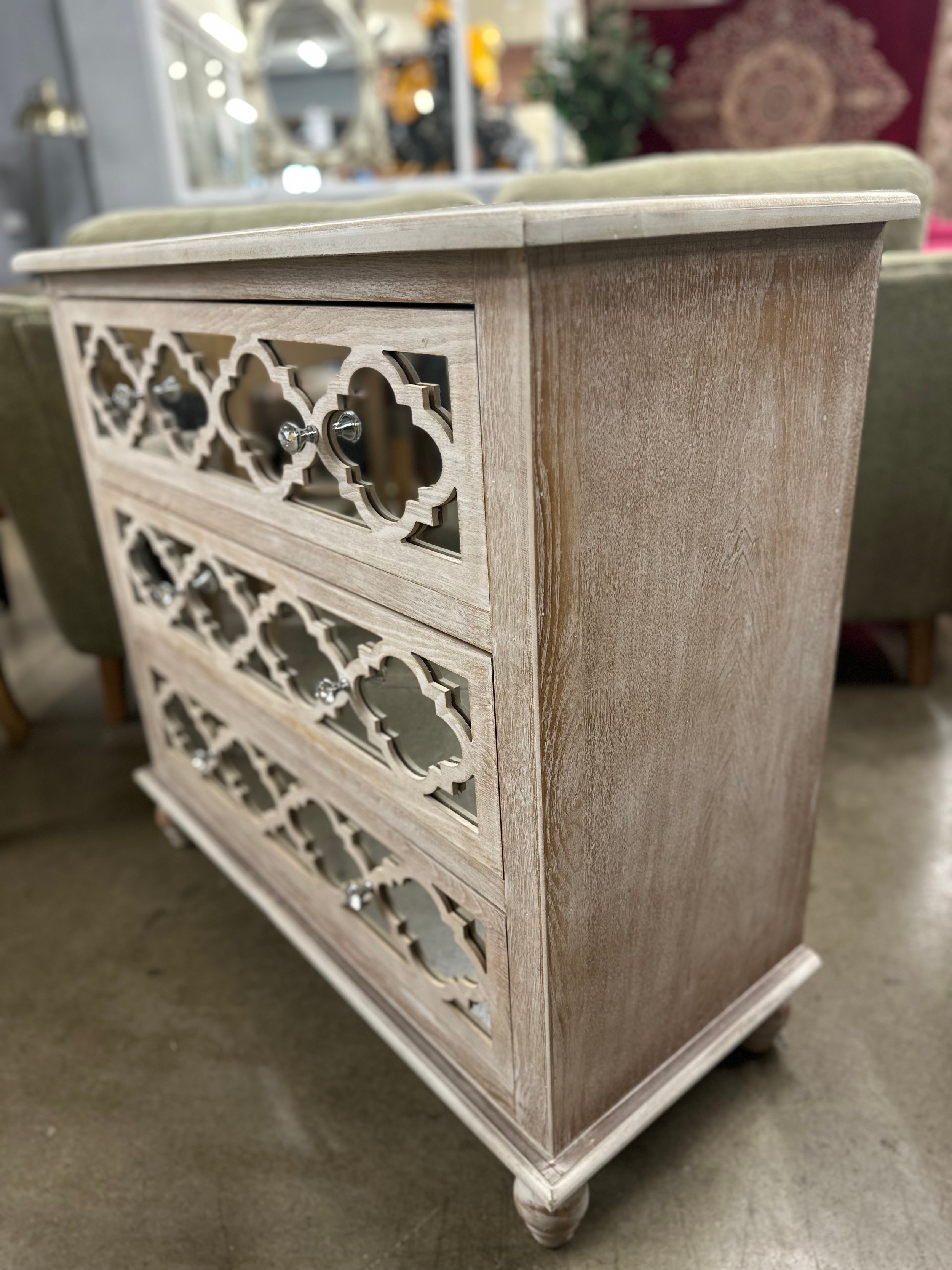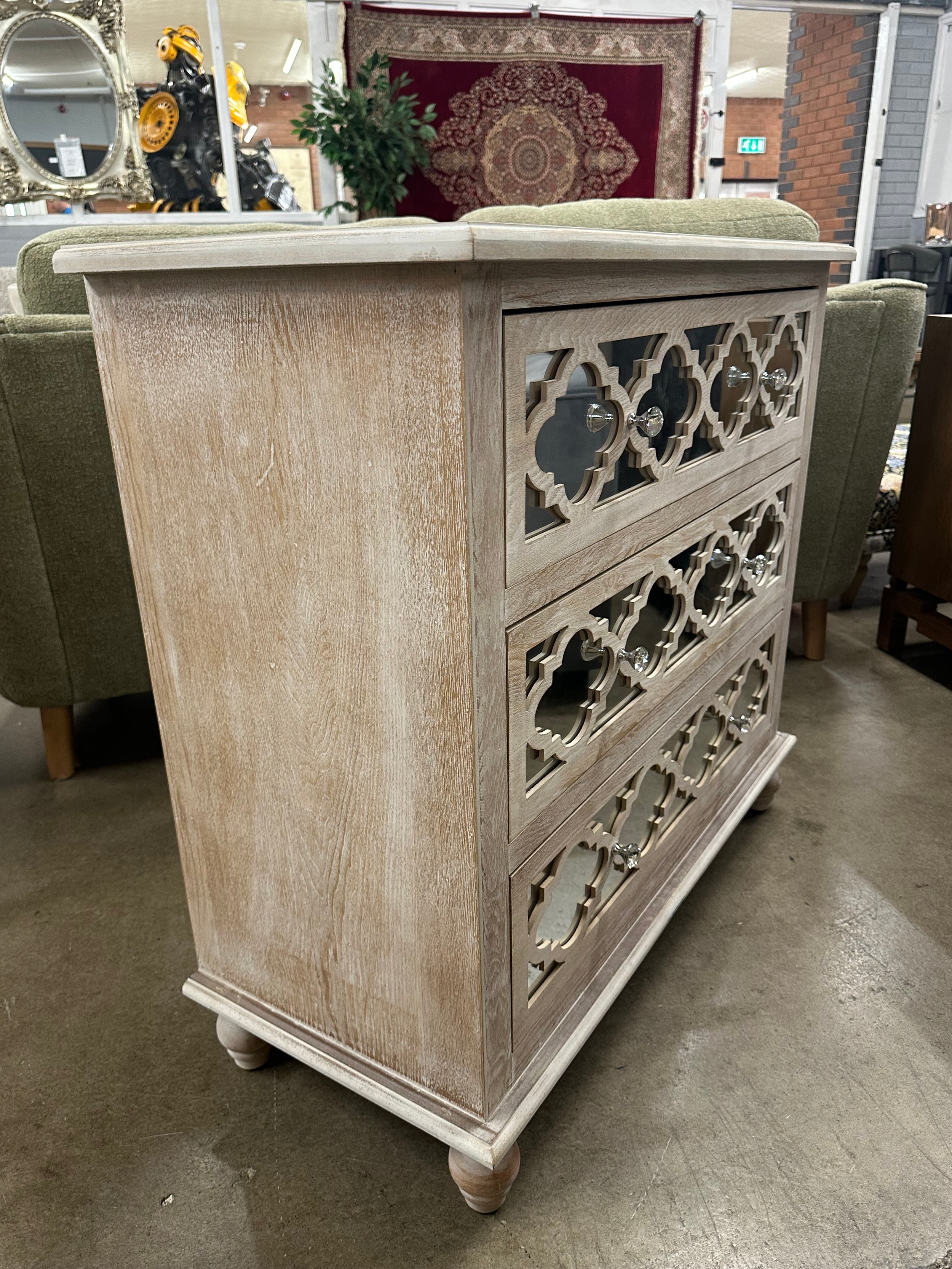 A Moorish style lattice mirrored chest of 3 drawers