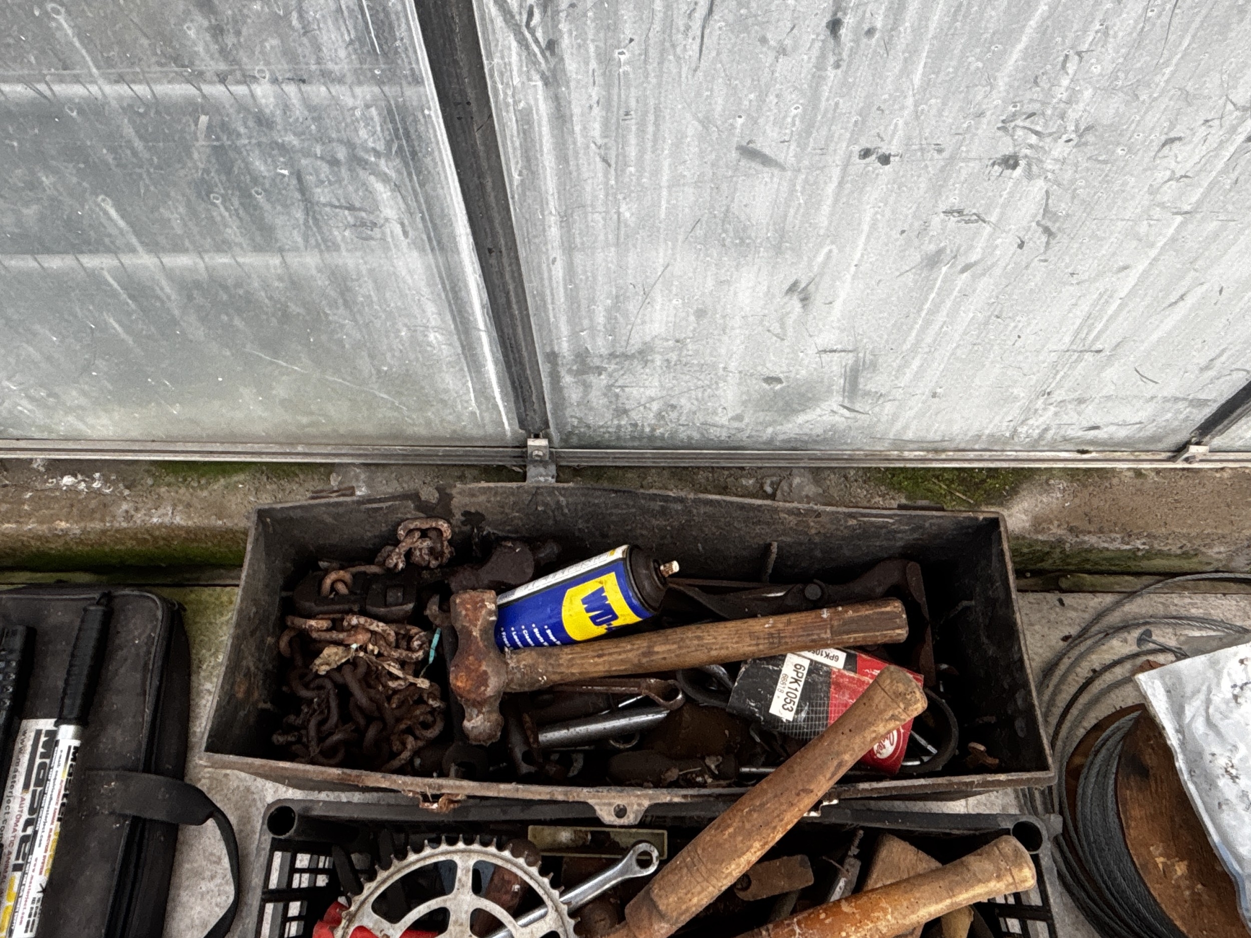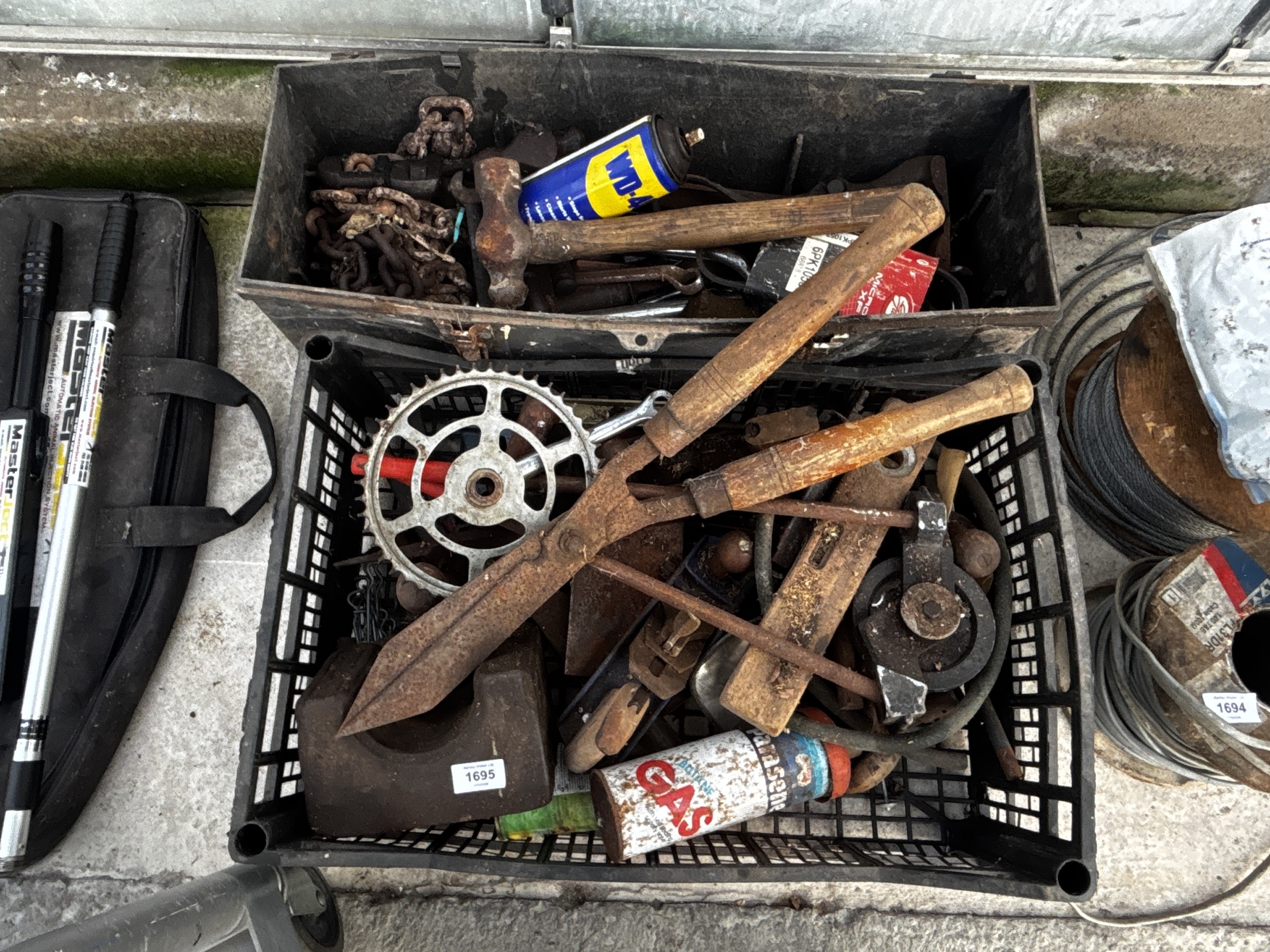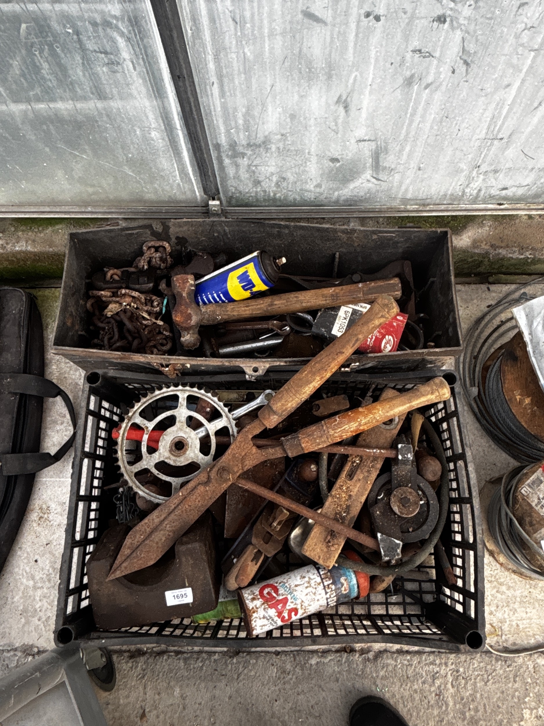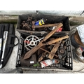 A LARGE ASSORTMENT OF VARIOUS ITEMS TO INCLUDE HAMMERS, A WOOD PLANE AND A WEIGHT ETC