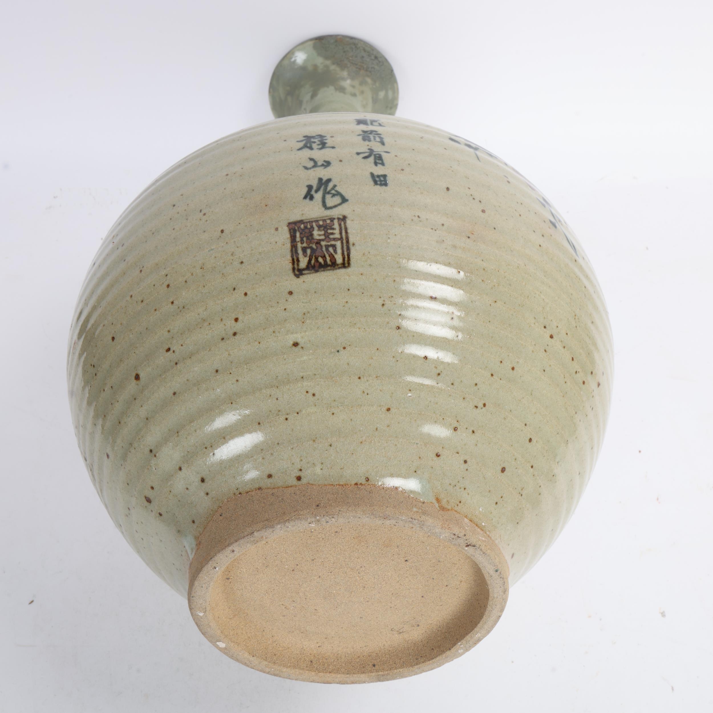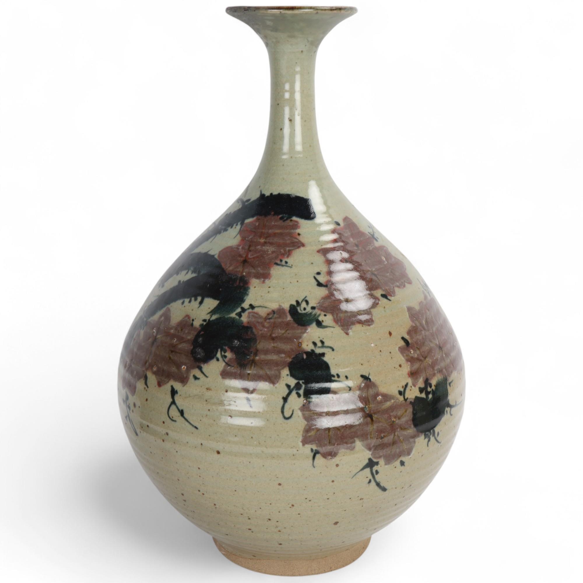 A large Japanese glazed pottery narrow-necked vase, with splash painted decoration, height 42cm
