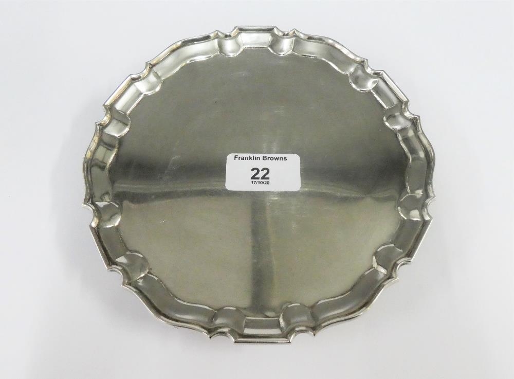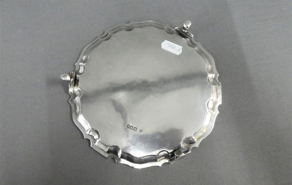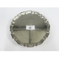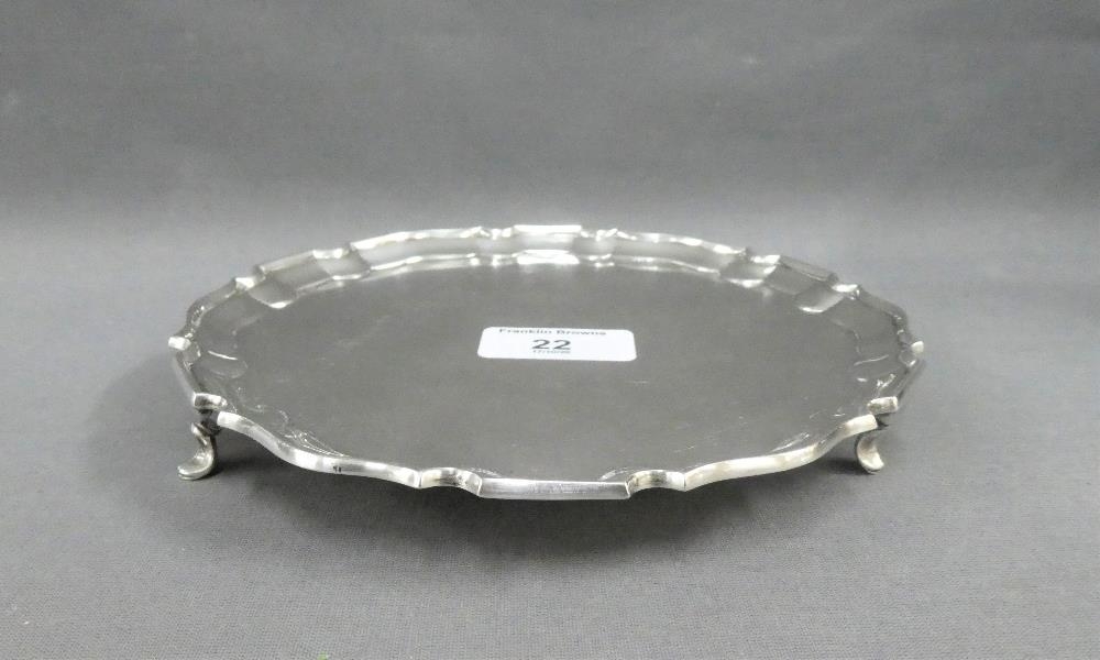 An Edwardian silver salver, Daniel & John Wellby, London 1901, with Chippendale border and three hoof feet, 18cm diameter