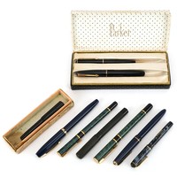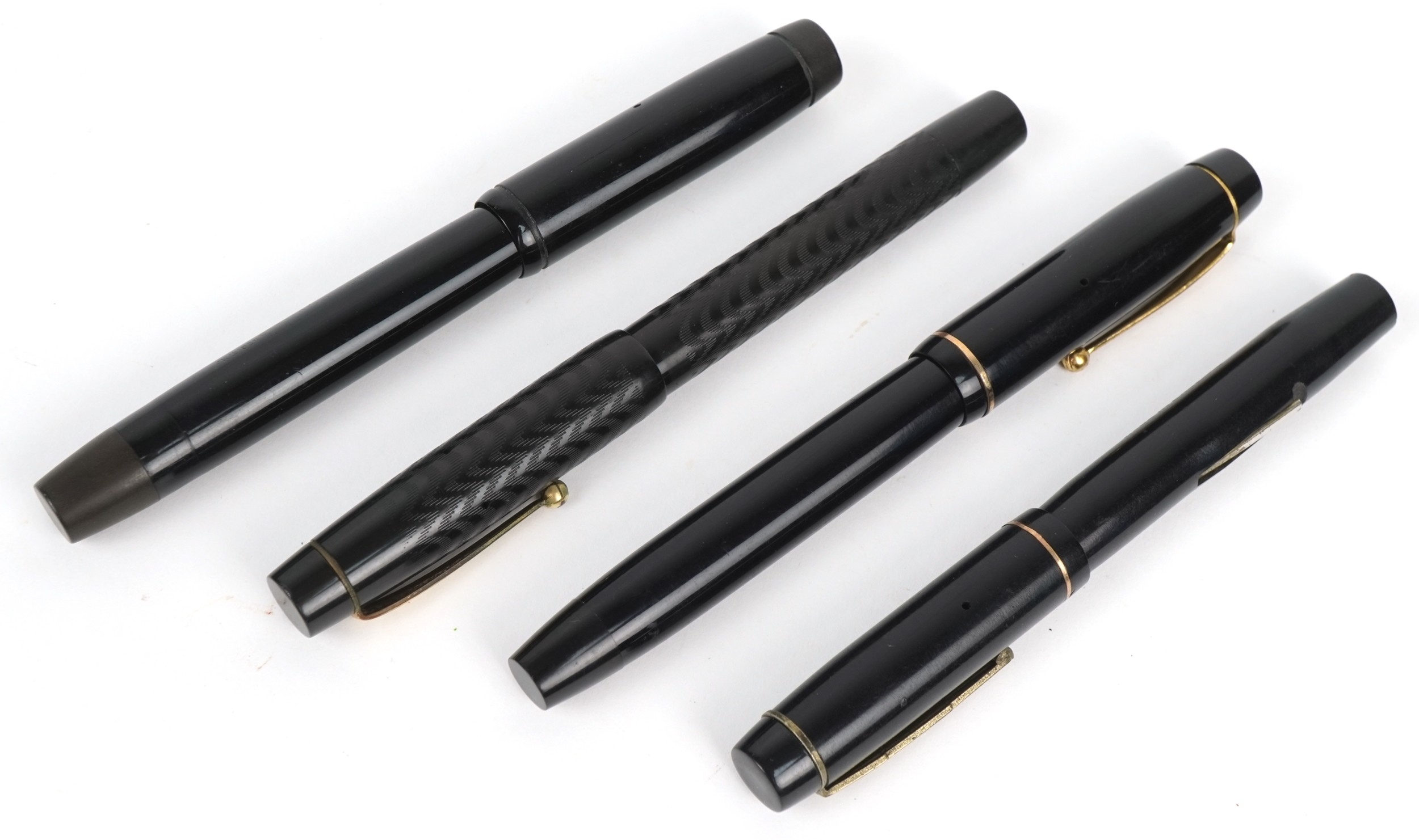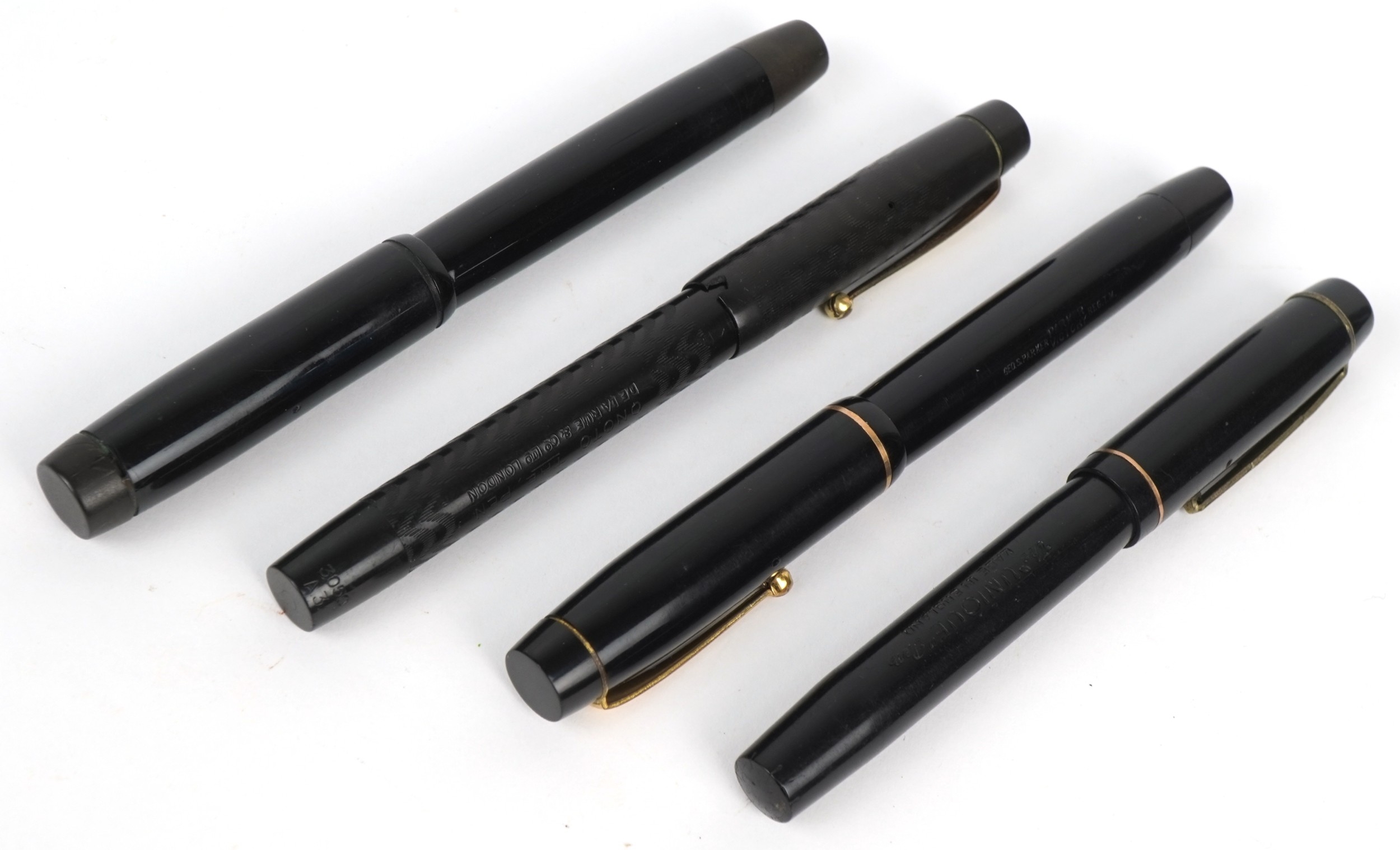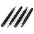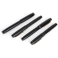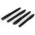 Four vintage fountain pens with 14ct gold nibs including Parker Victory and The Unique Pen, the largest 13cm in length.
