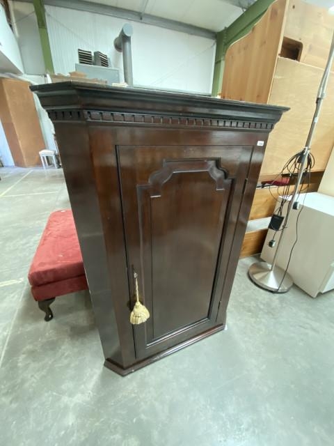 19th Century mahogany corner cabinet (102H 73W 43D cm) with 1 key