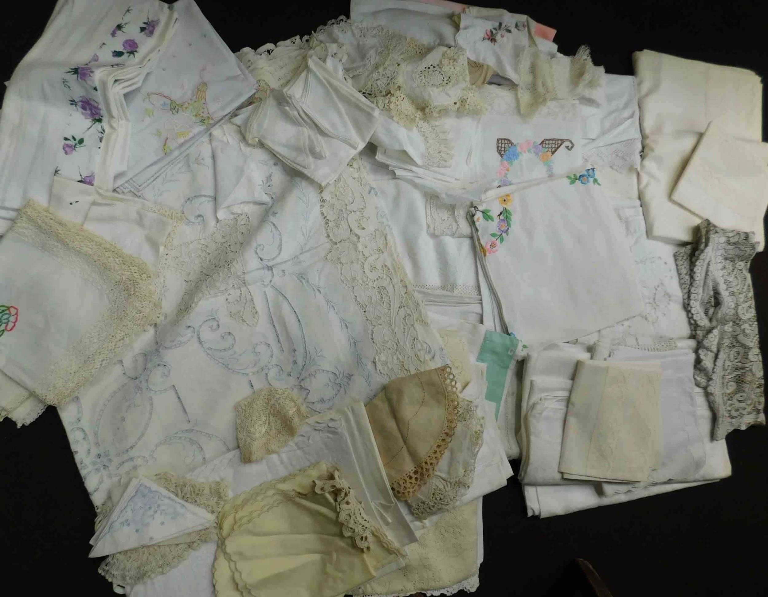 Large collection of linens, tablecloths and crochet