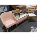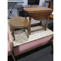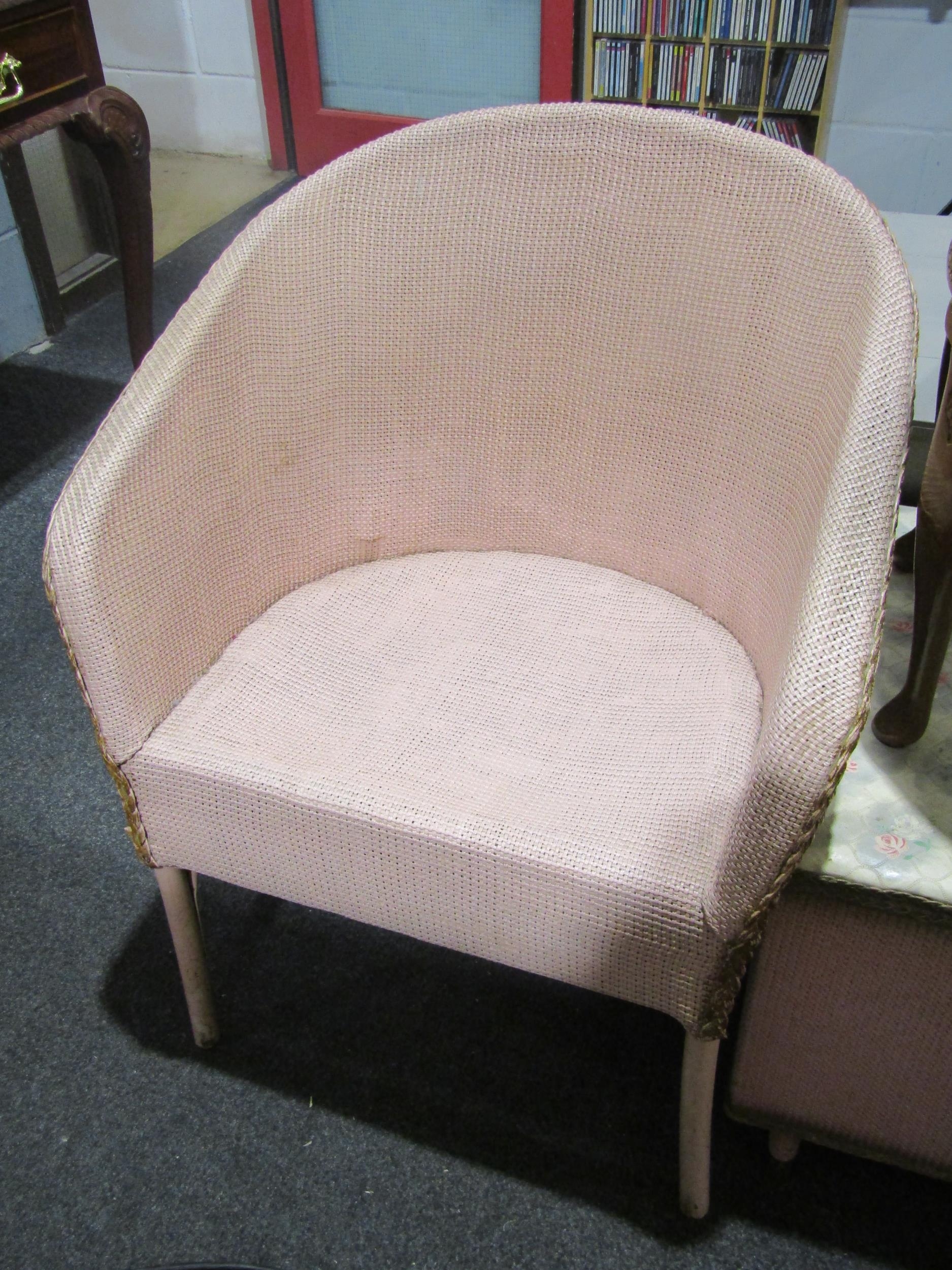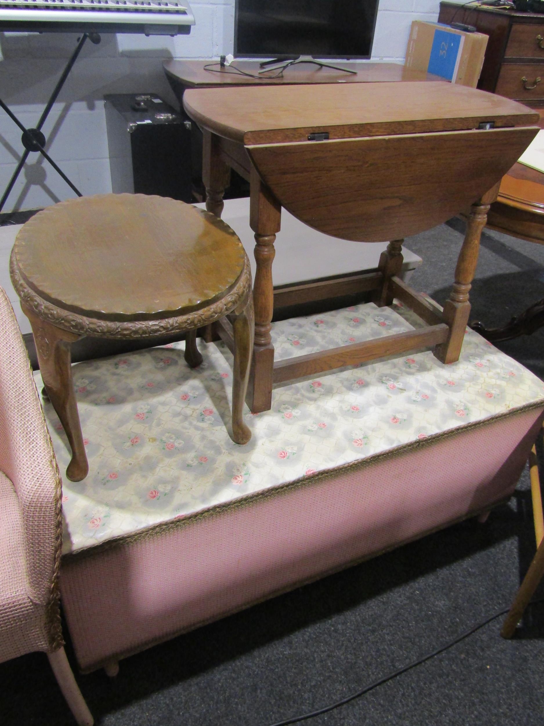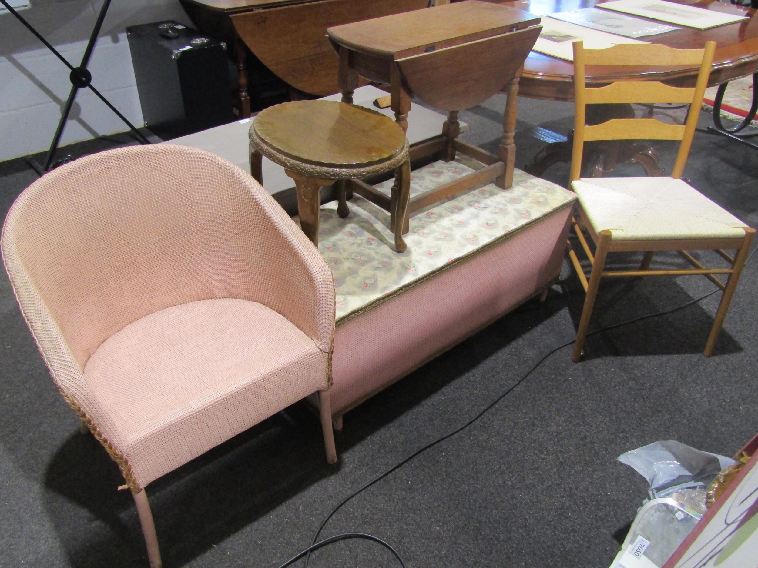 An oak drop-flap occasional table, a seagrass seat chair, oval table, ottoman and Lloyd Loom style chair (5)