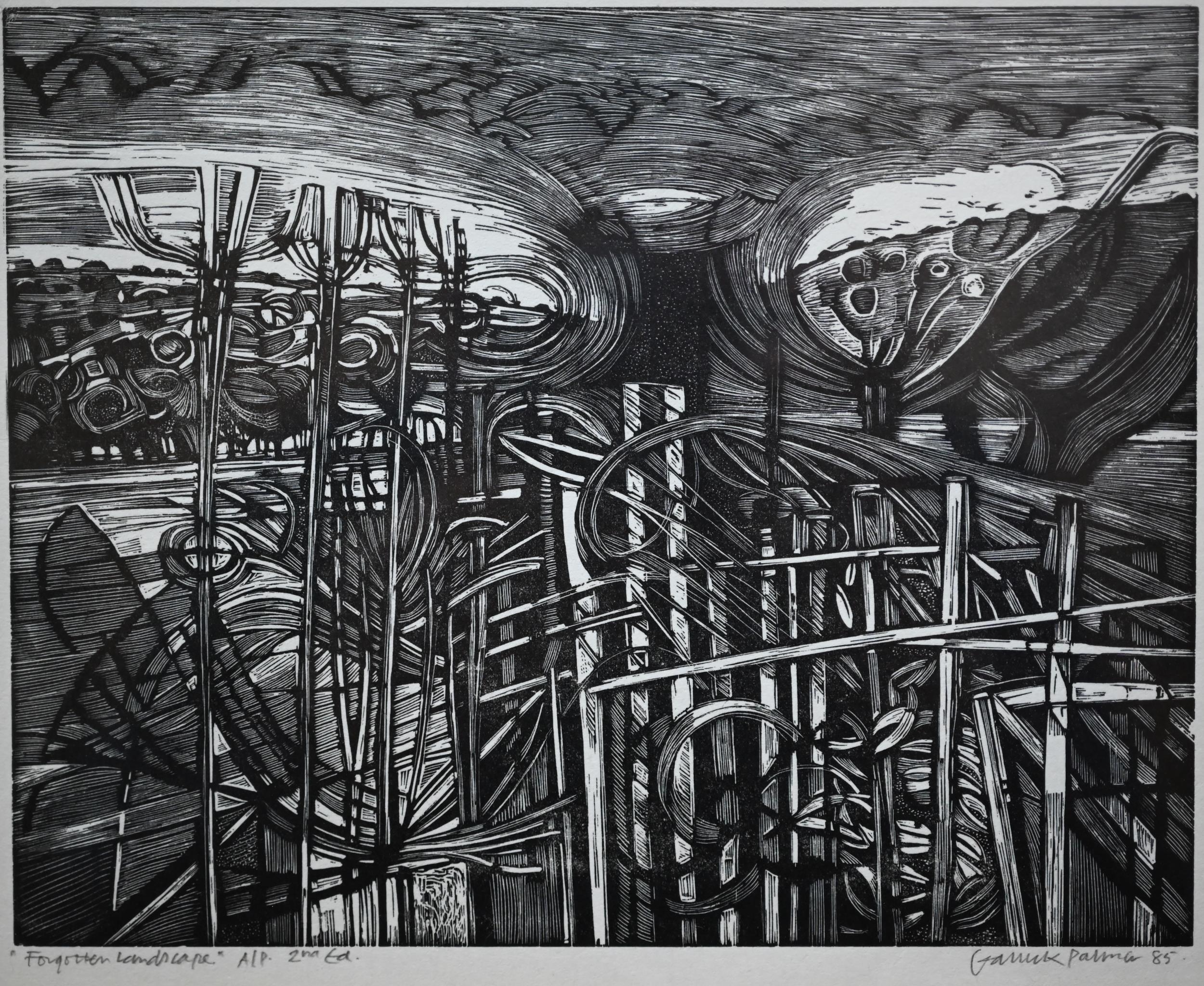 Garrick Palmer (b 1933) - 'Forgotten Landscape', wood engraving print, artist proof 2nd ed, signed and dated 85 lower right, 19 x 24 cm