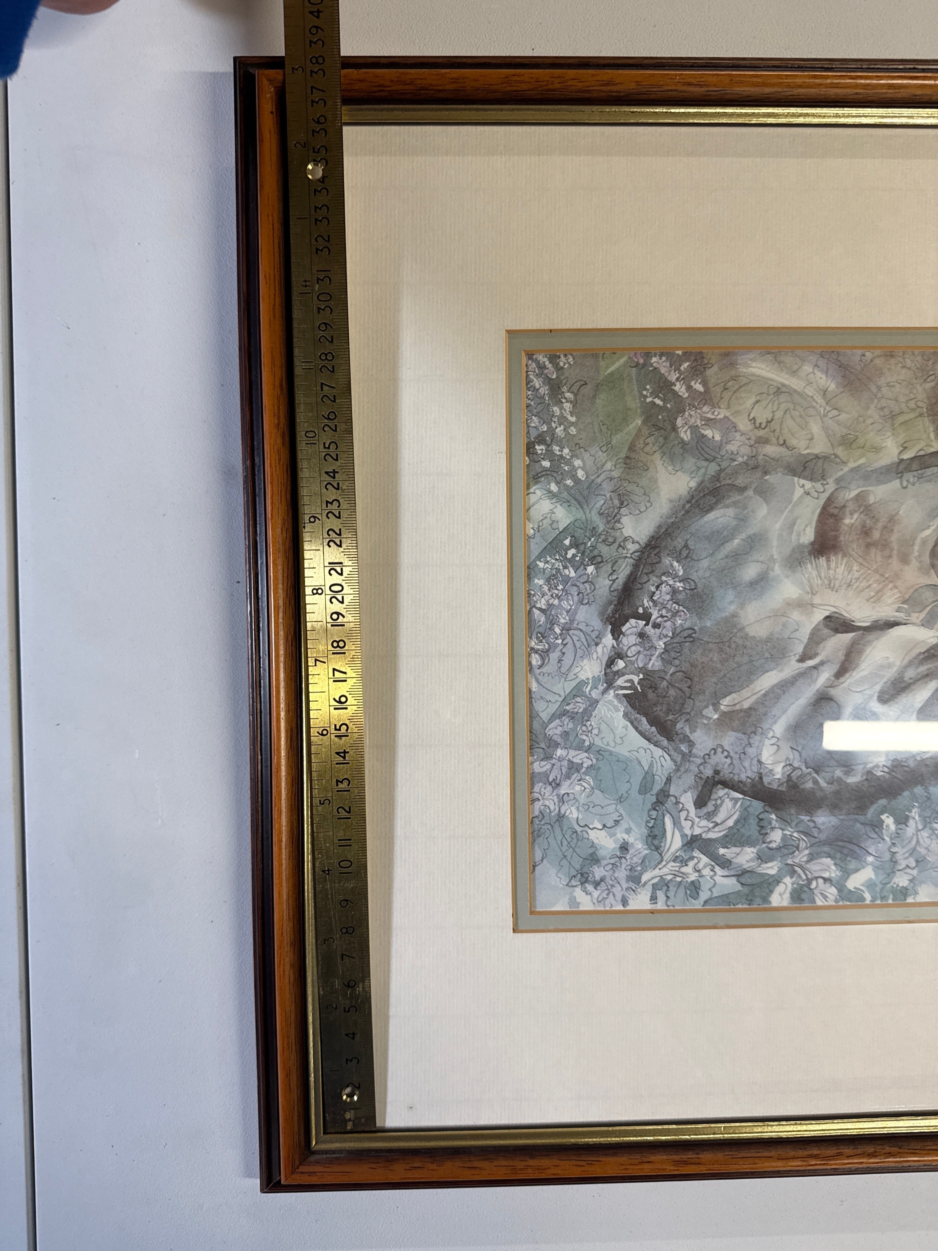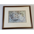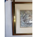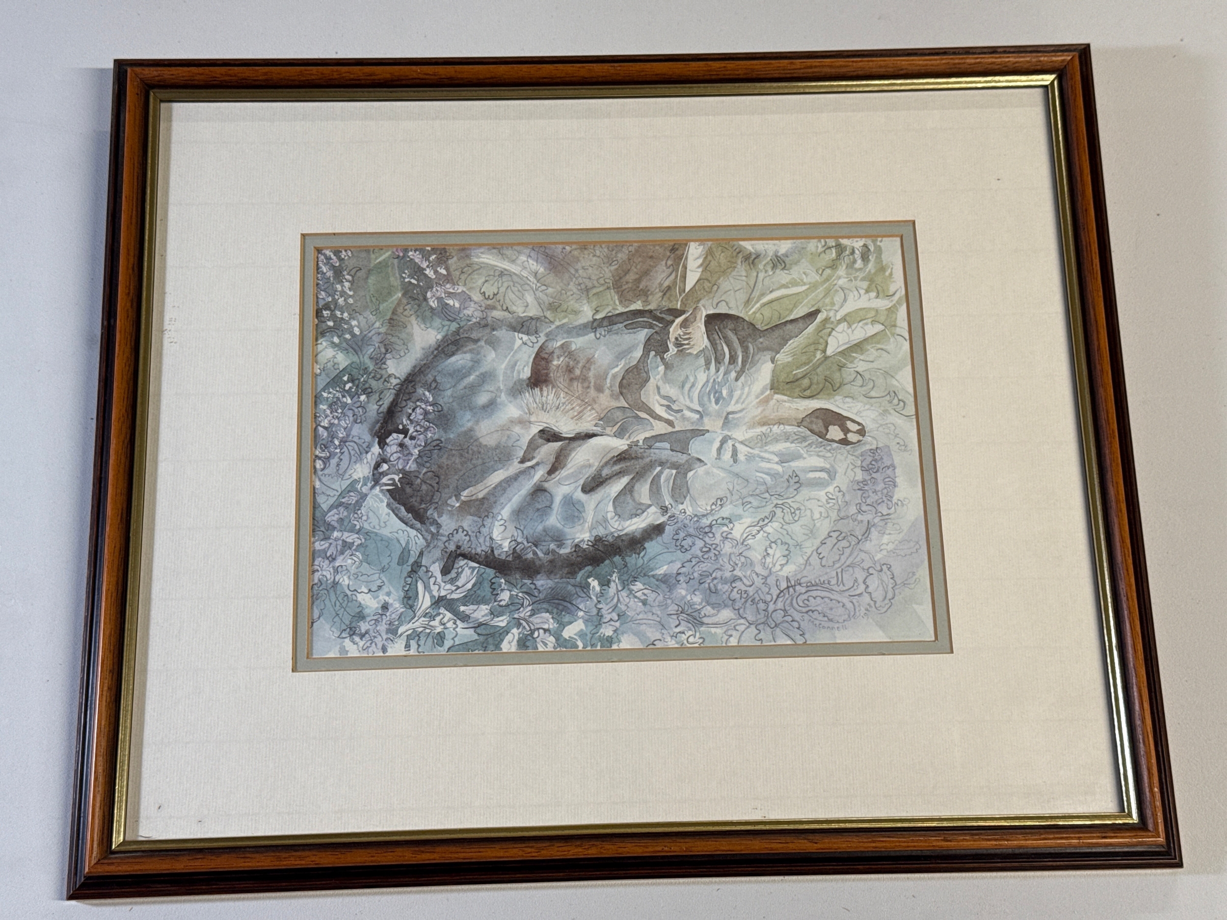 Framed Artwork of a Curled Cat, Signed 'Hap K.'