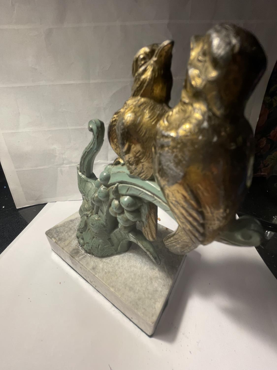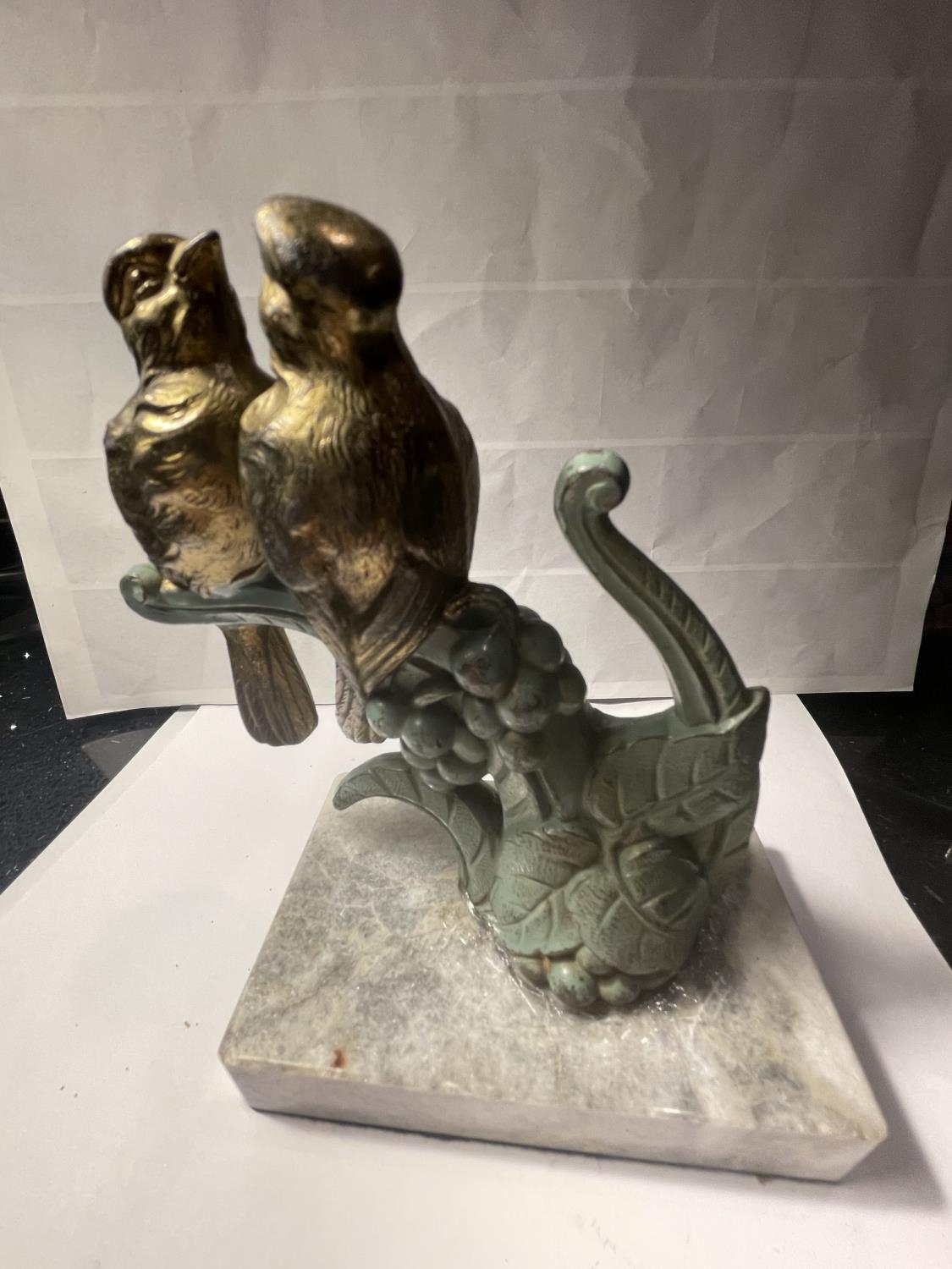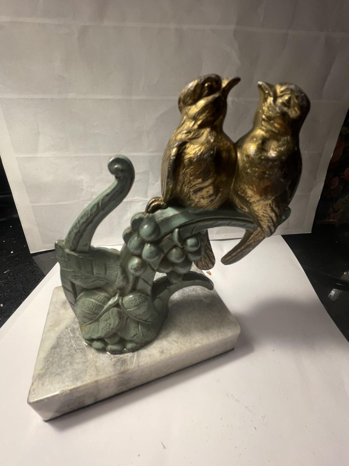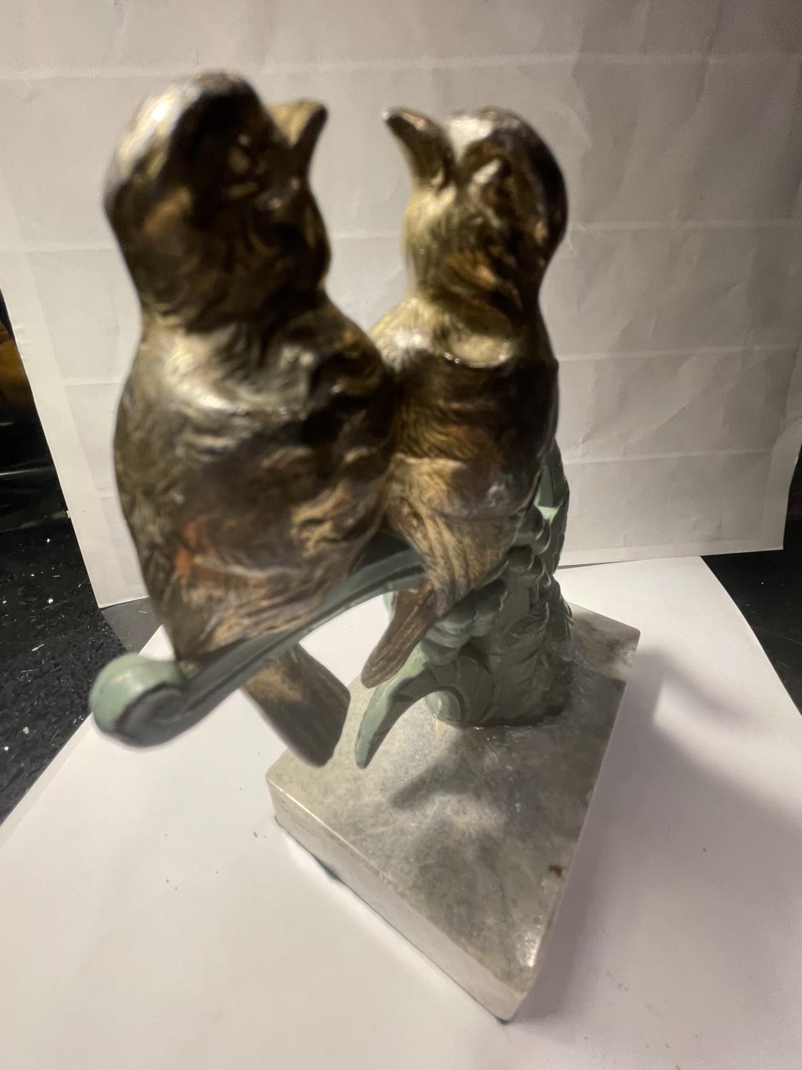 TWO BRONZED BIRDS ON A MARBLE BASE