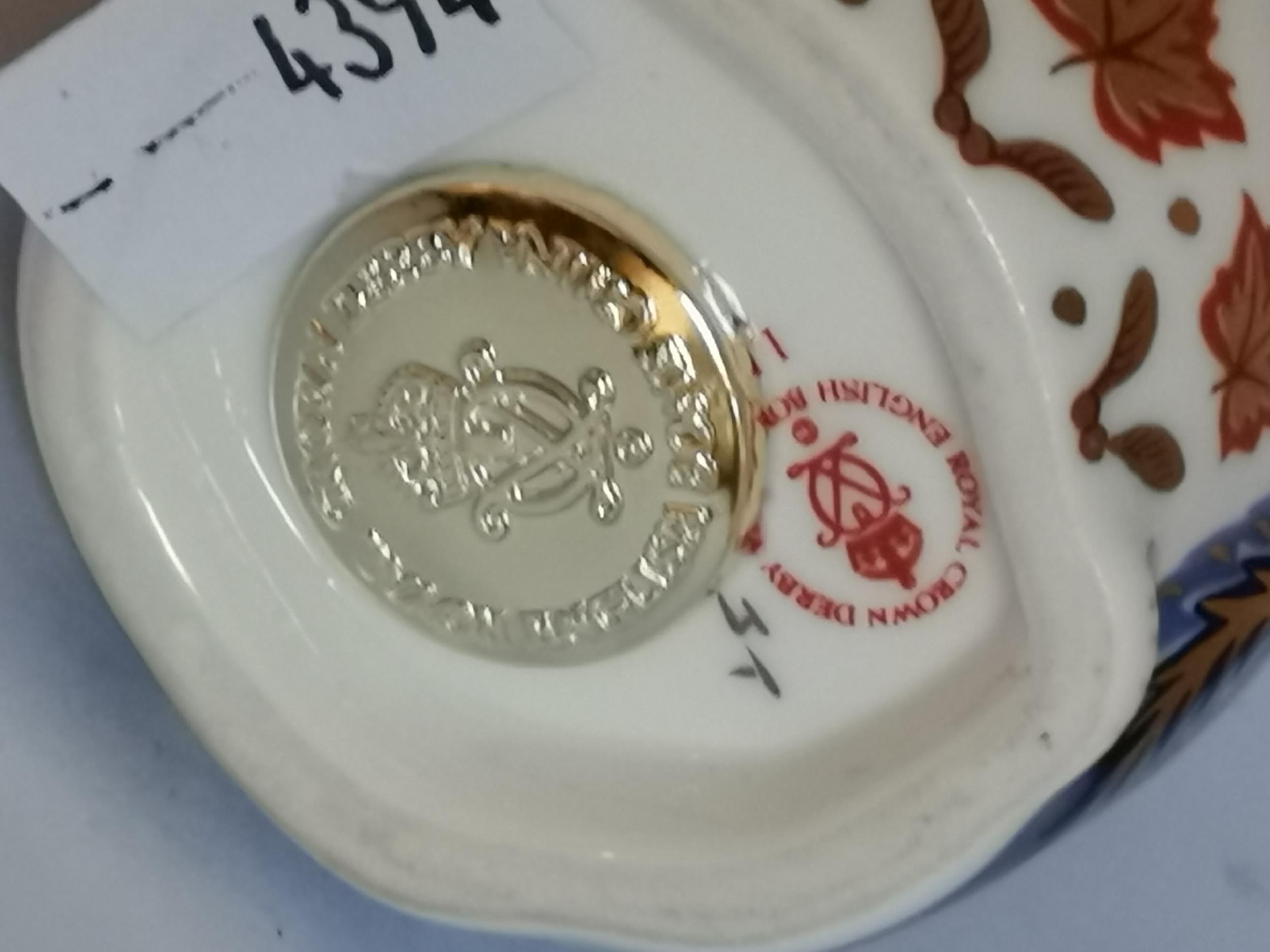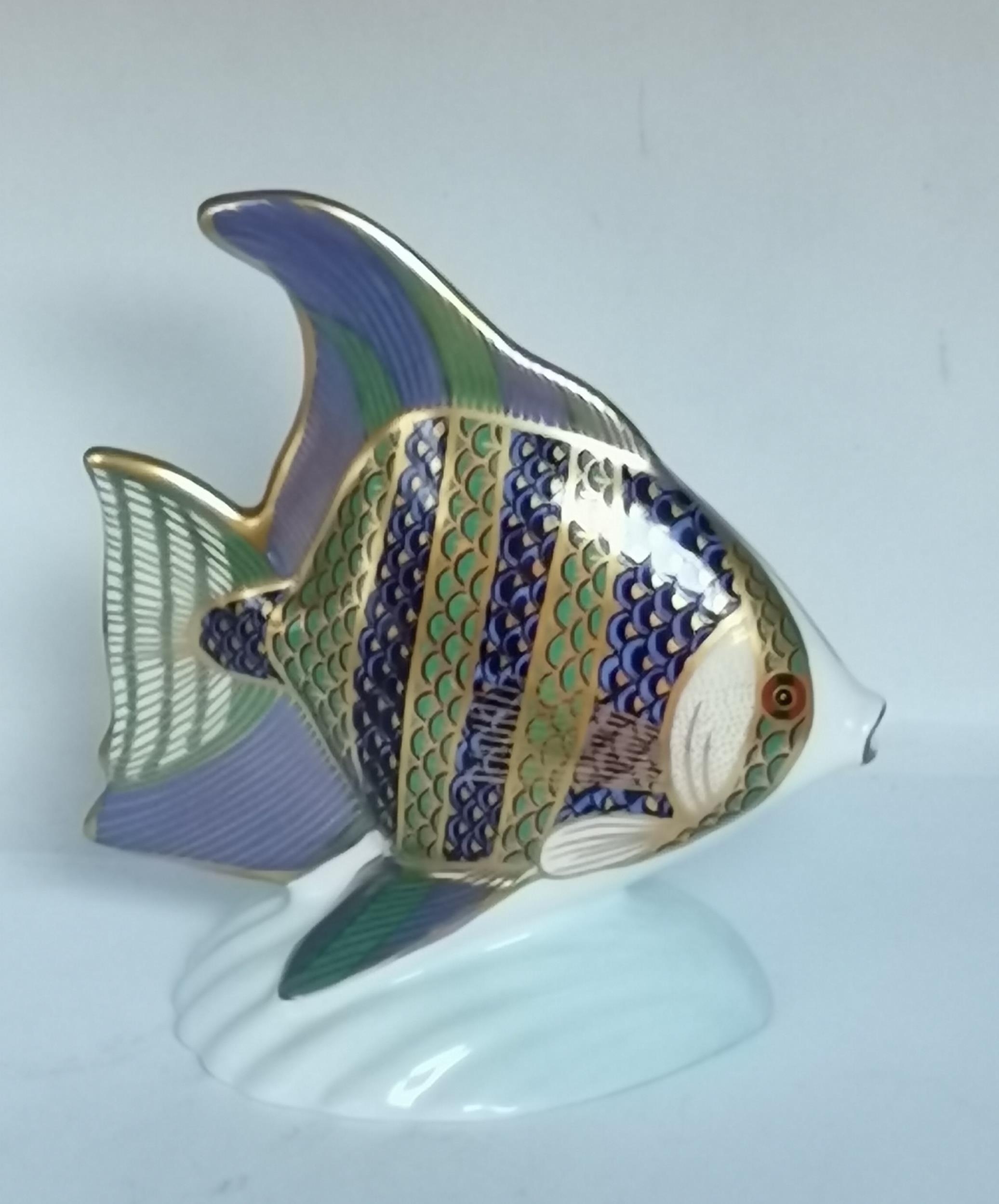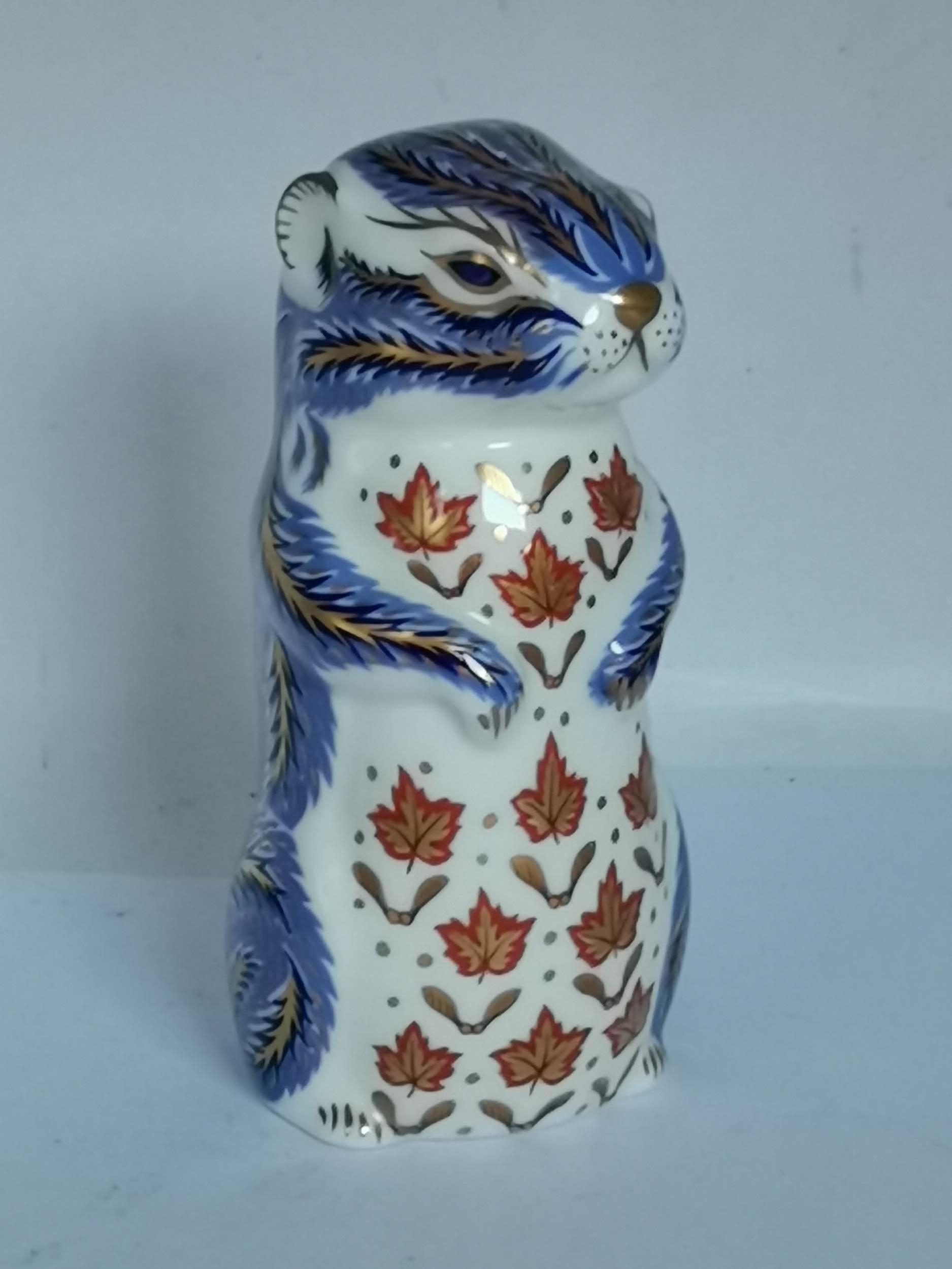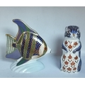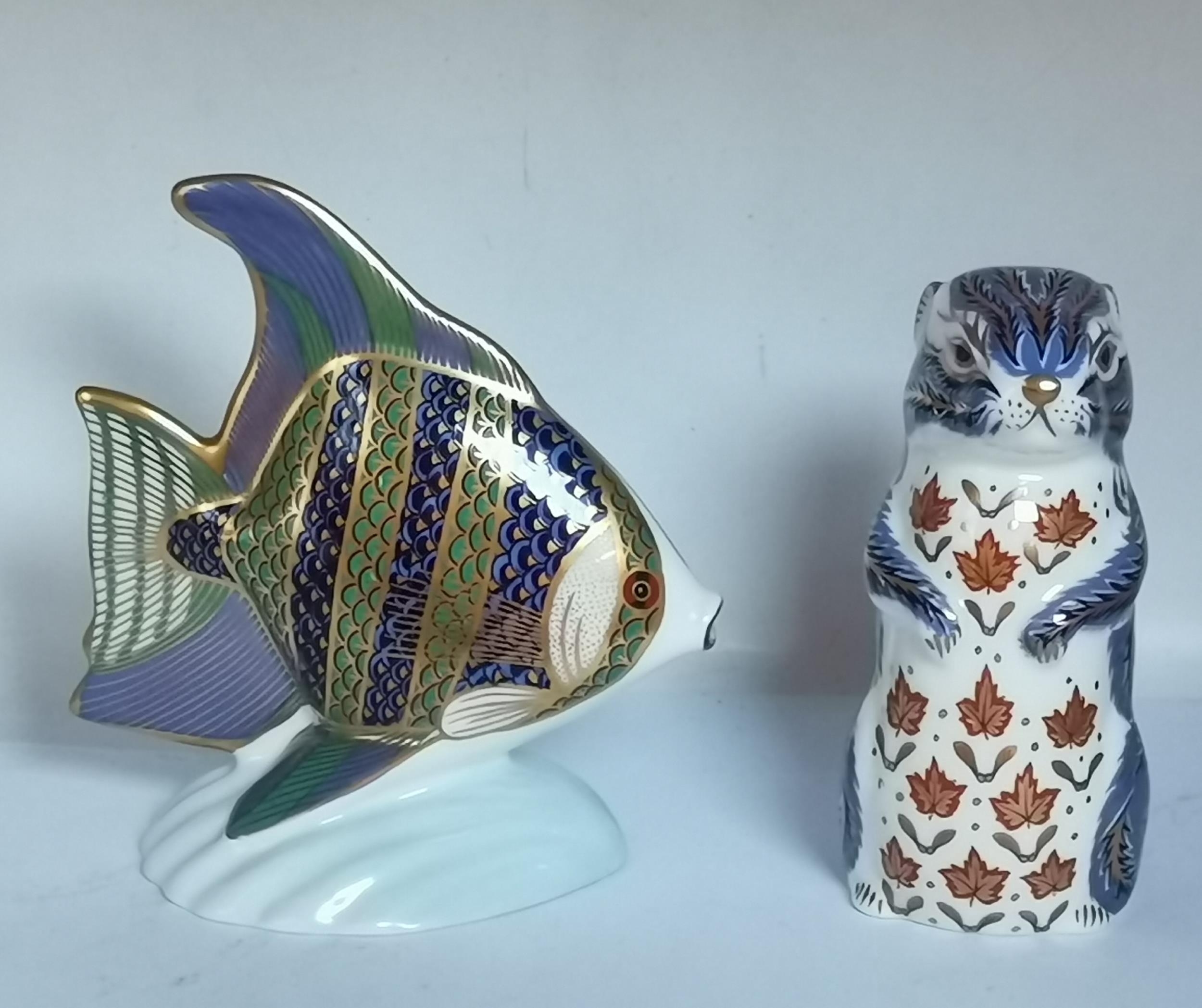 Crown Derby Tropical Fish and Chipmunk paperweights with gold stoppers (2)