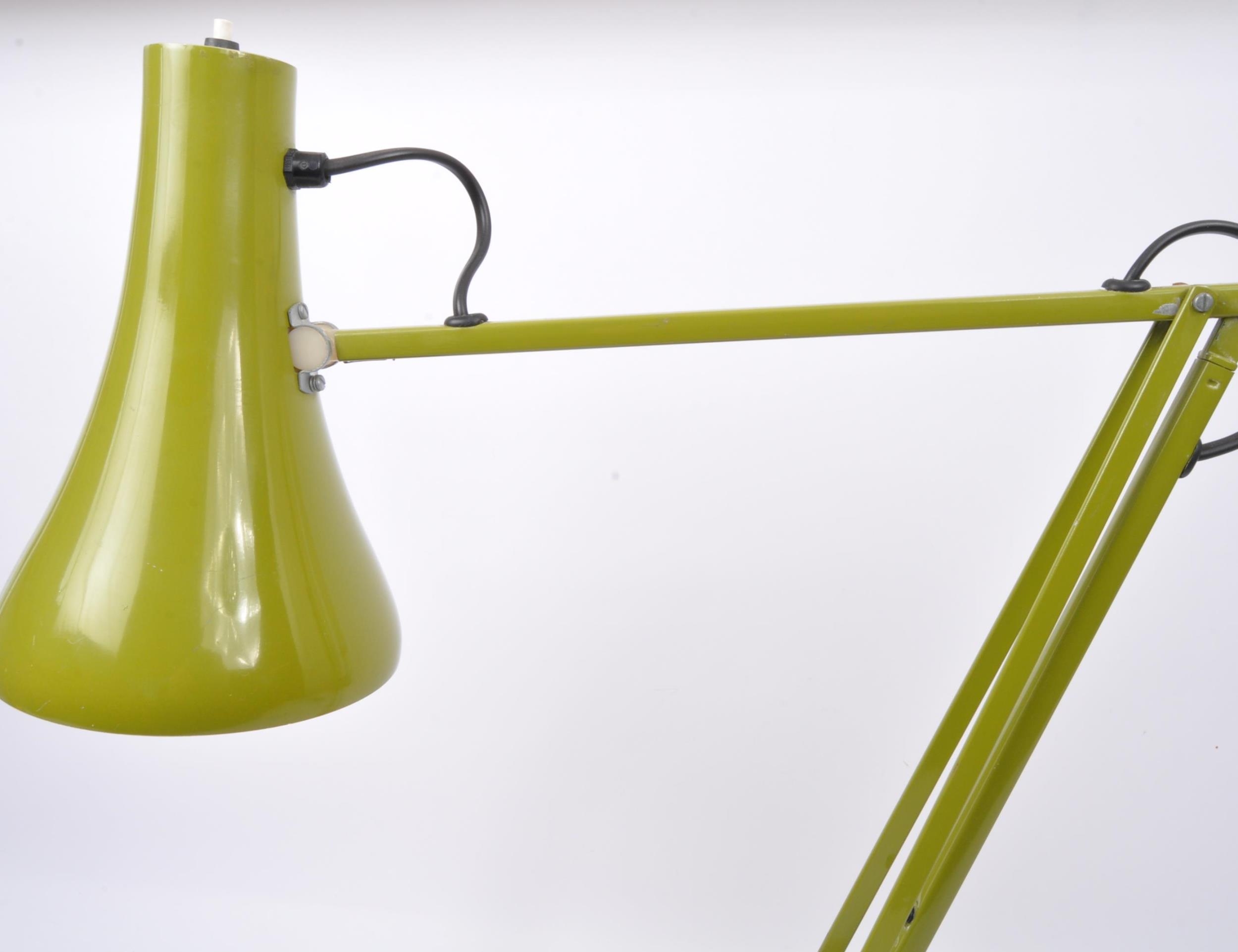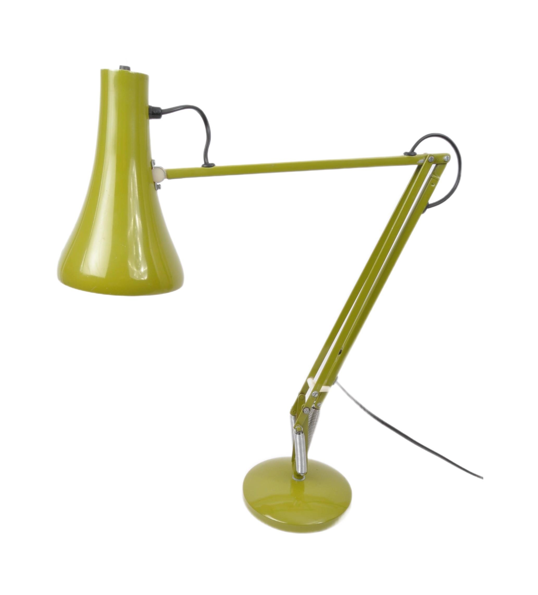 Herbert Terry & Sons - Model 90 - Al retro vintage mid 20th Century anglepoise industrial work factory desk table lamp light having in a sage green colourway with enamel pendant shade with adjustable arm. All raised on circular weighted base. Sold as untested.