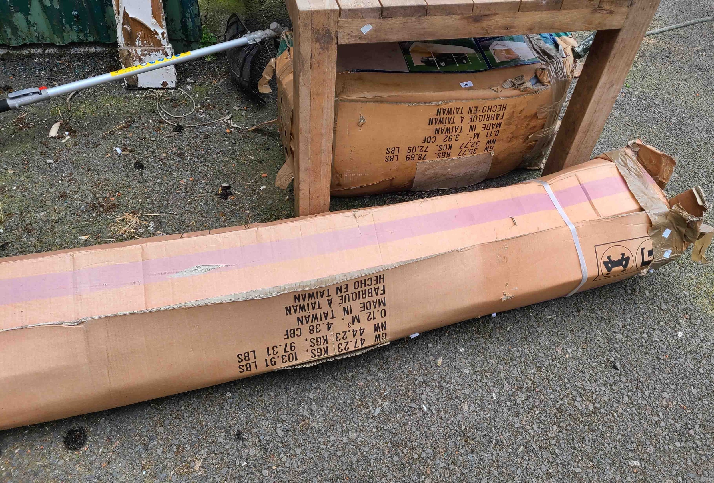 A steel framed portable/collapsible car port with cover, contained with in two boxes - 10' X 20'